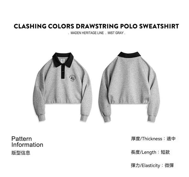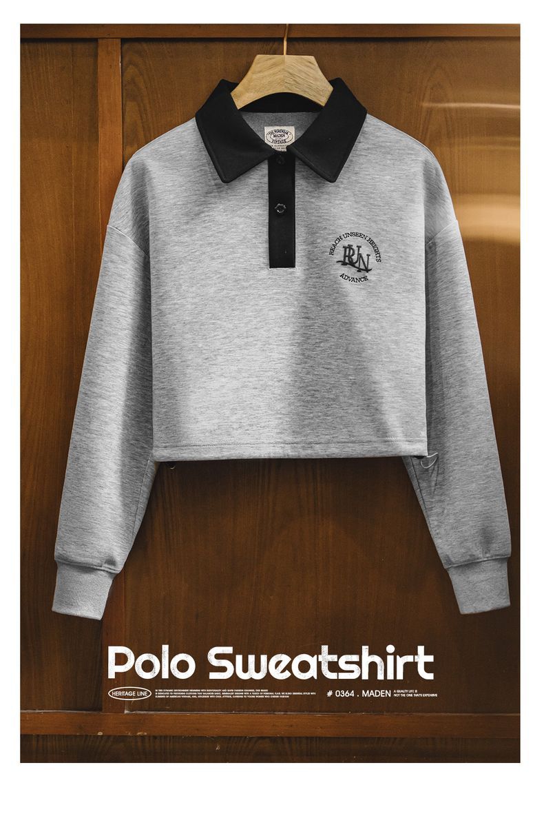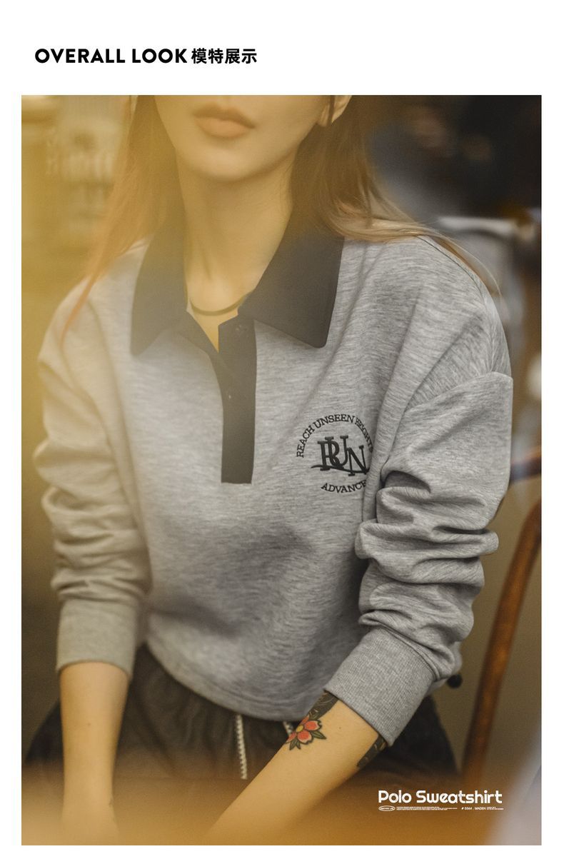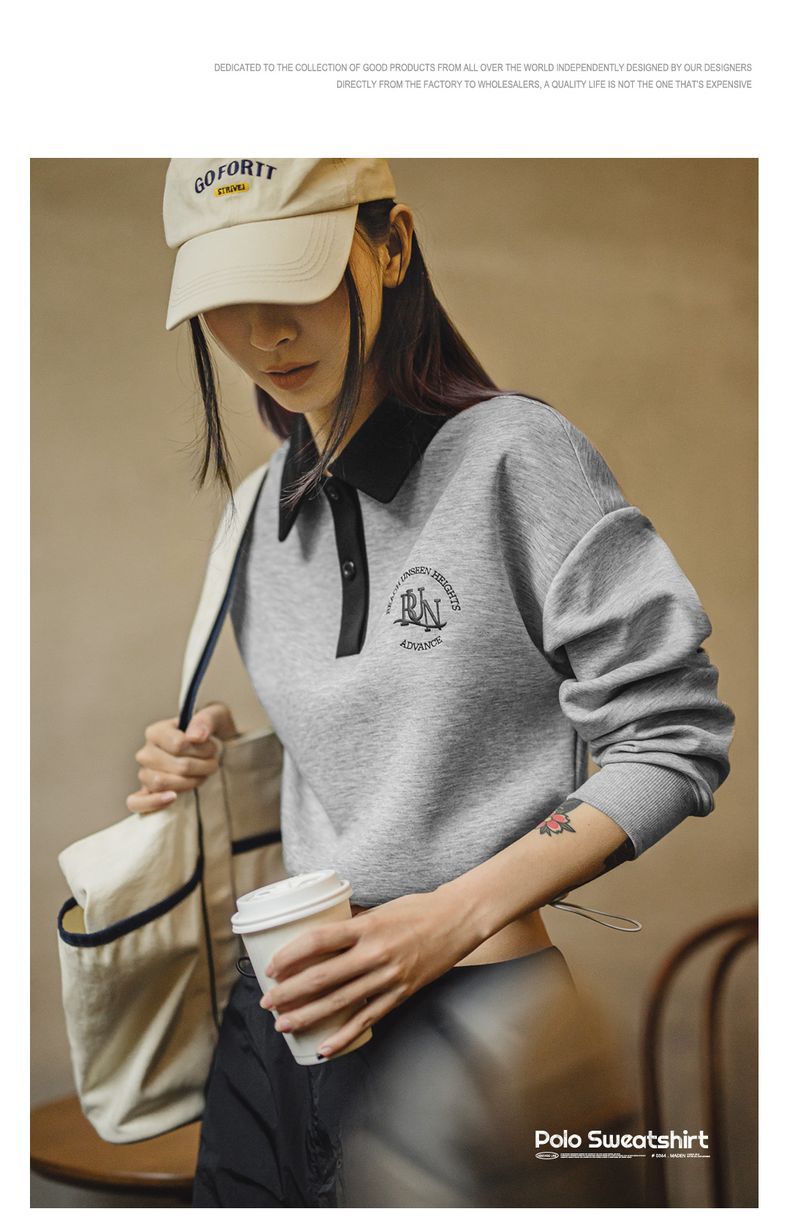 馬登女裝 復古格雷系空氣層運動Polo領衛衣健身長袖春季上衣