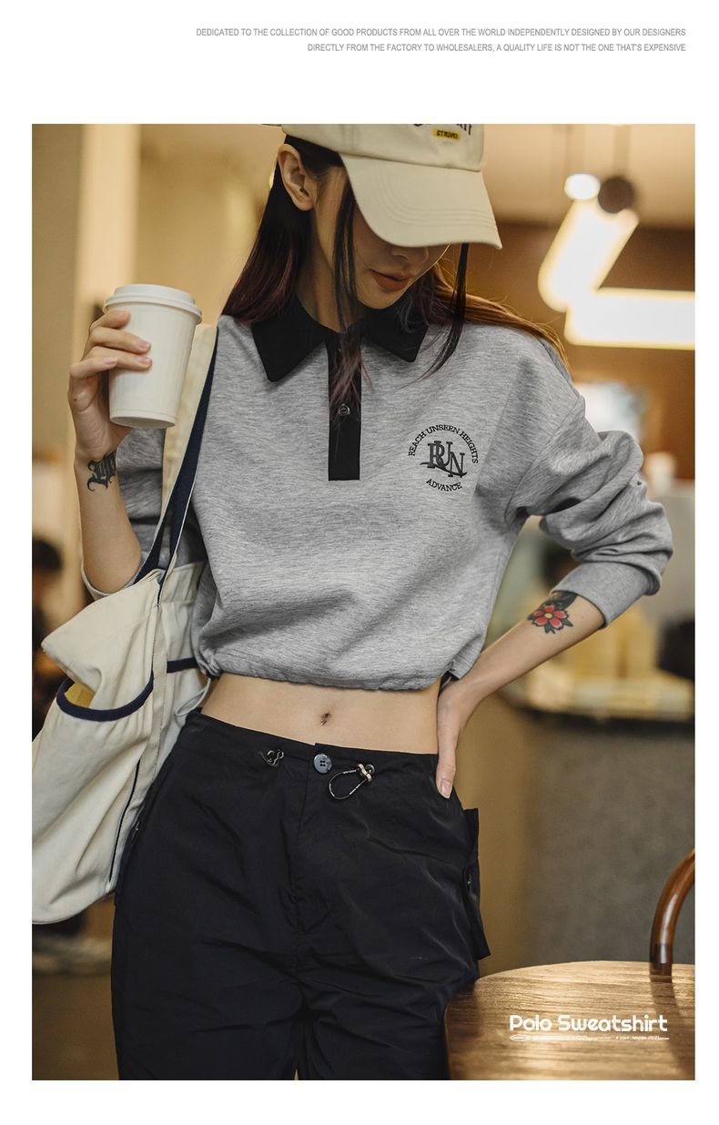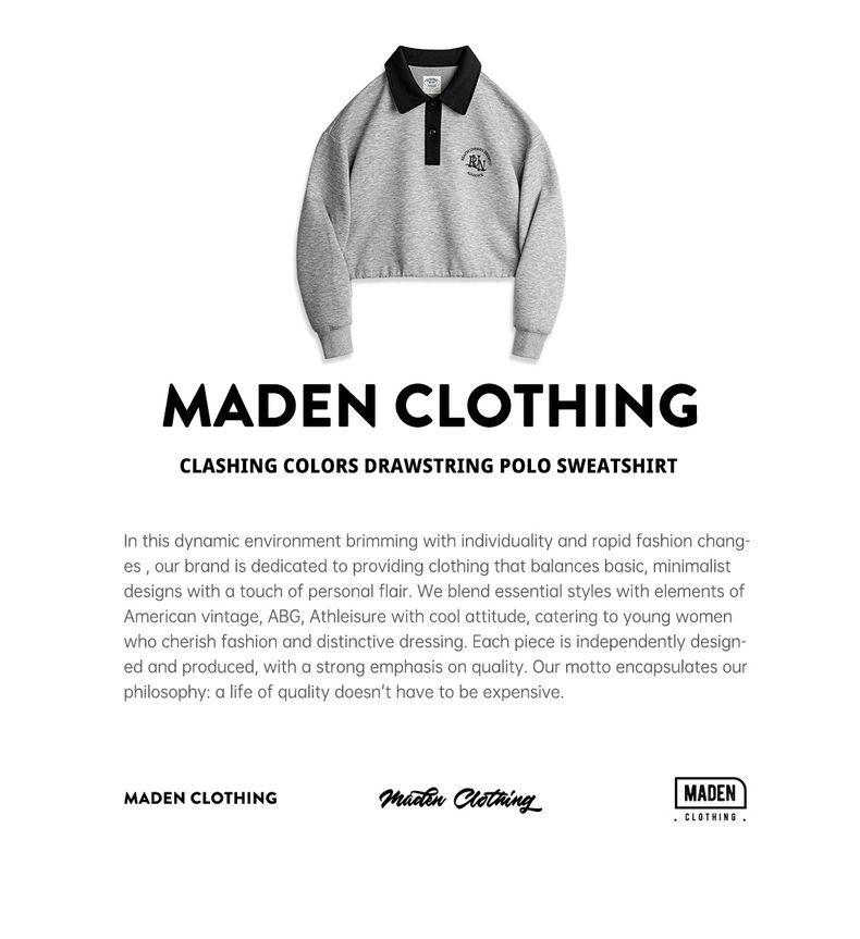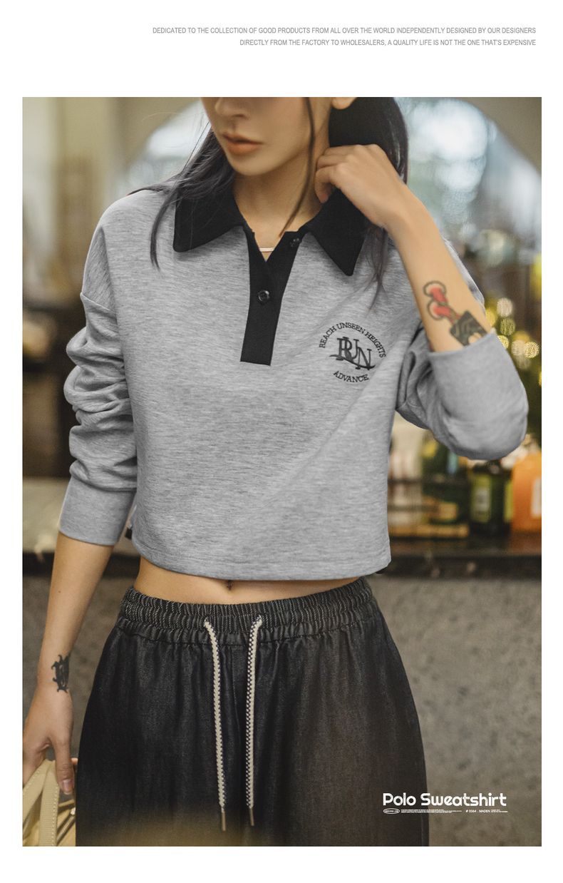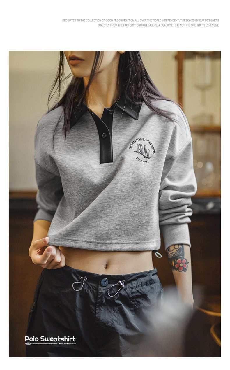 馬登女裝 復古格雷系空氣層運動Polo領衛衣健身長袖春季上衣