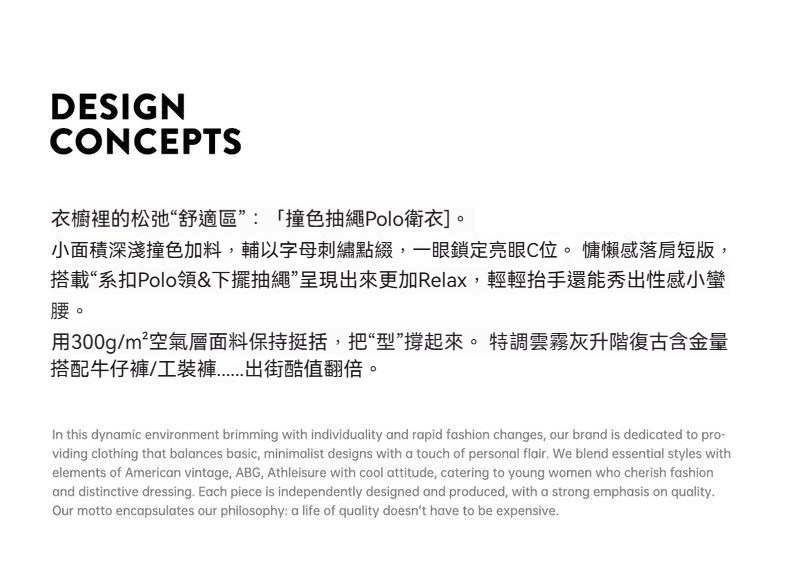 元素: 拼色, 字母刺繡, 下擺抽繩