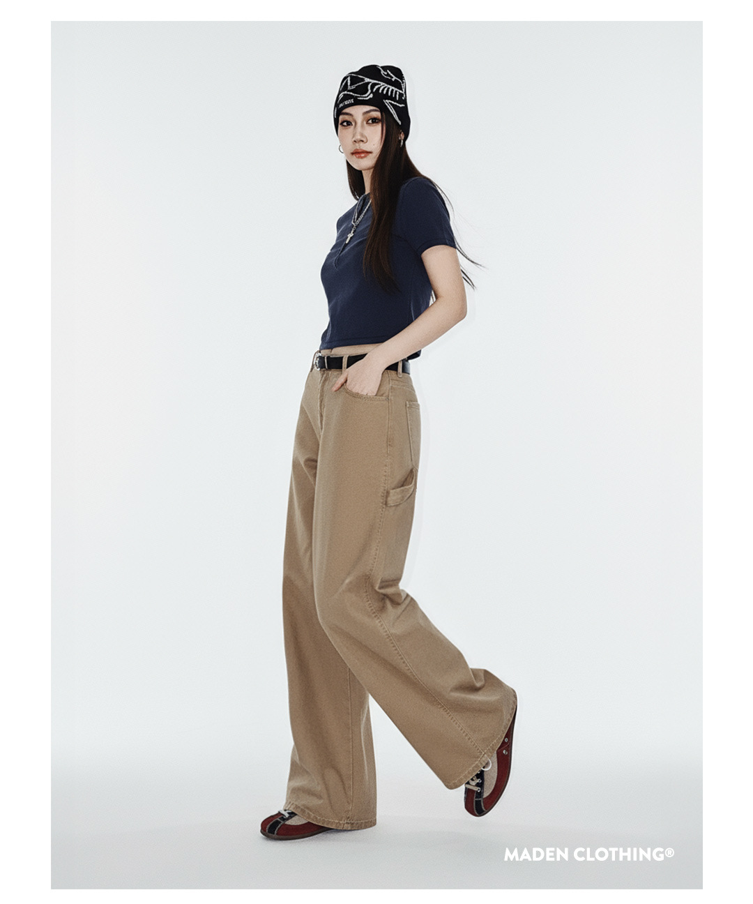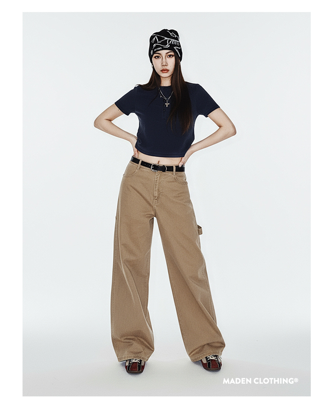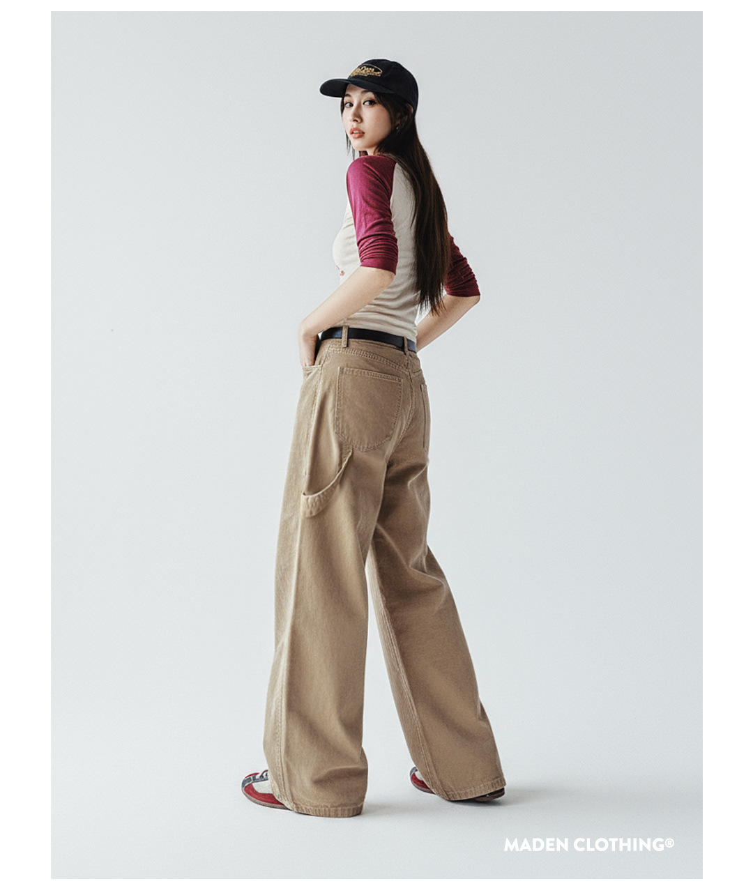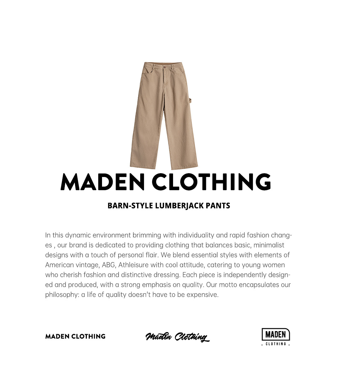 馬登女裝 卡其色復古工裝巴恩風伐木褲純棉直筒顯瘦長褲子秋冬