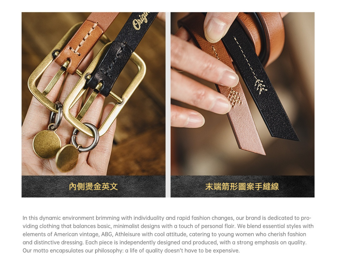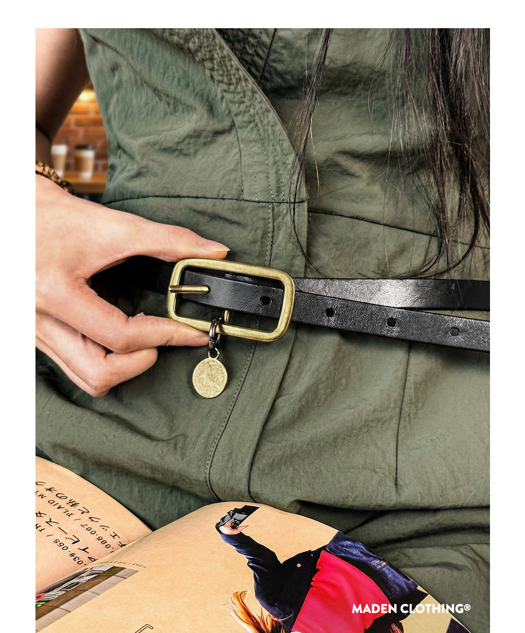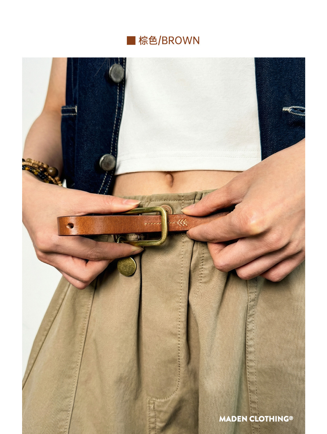 馬登女裝 復古植鞣頭層純正真牛皮帶條牛仔褲細小腰帶女士腰間配飾