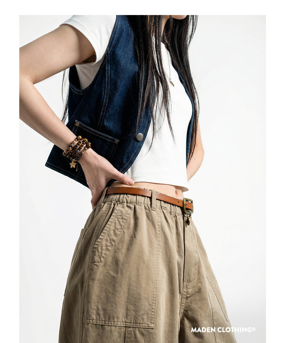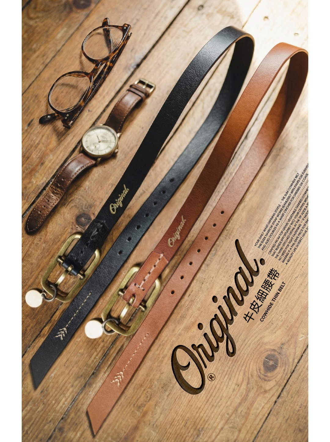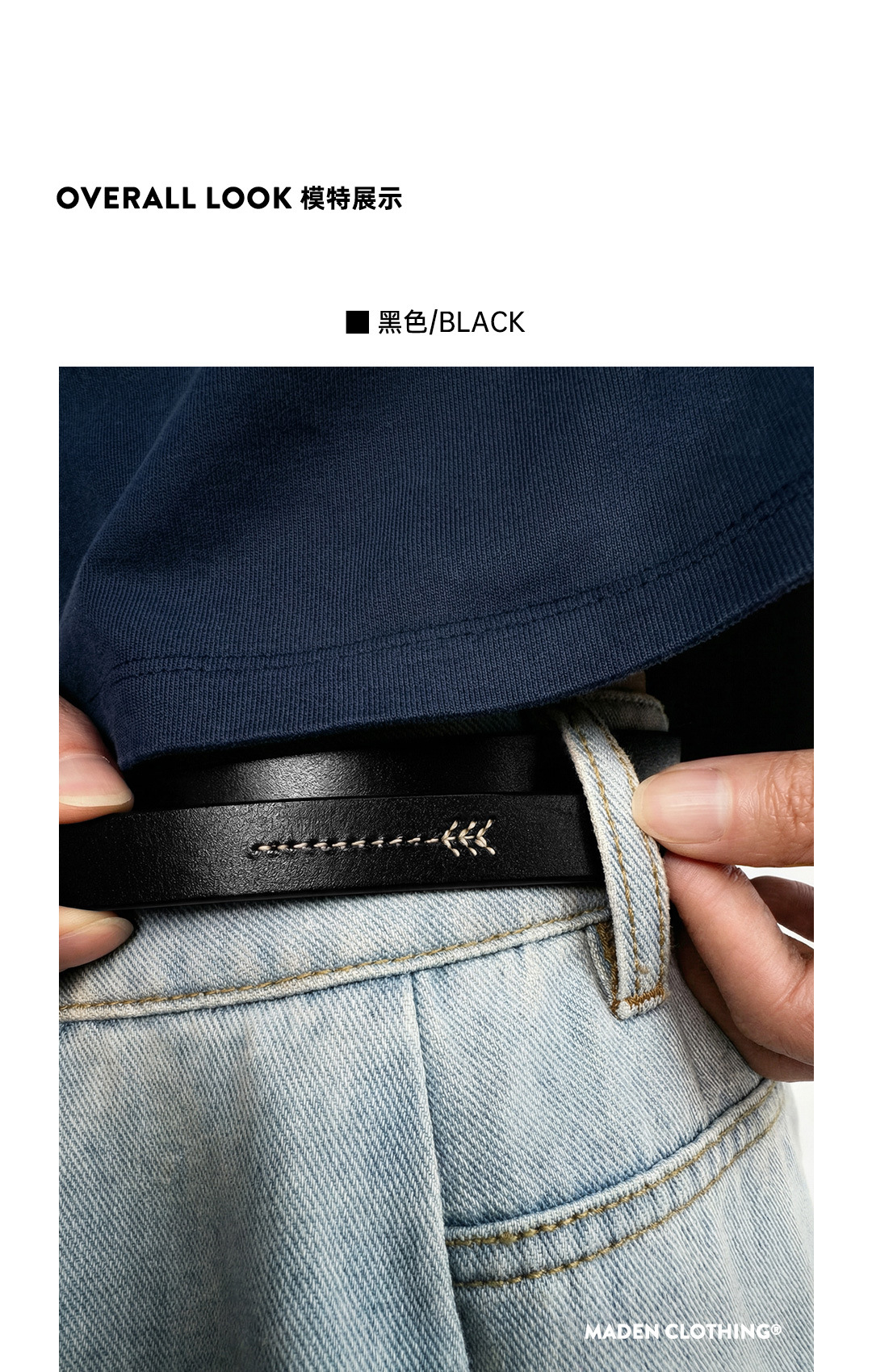 馬登女裝 復古植鞣頭層純正真牛皮帶條牛仔褲細小腰帶女士腰間配飾