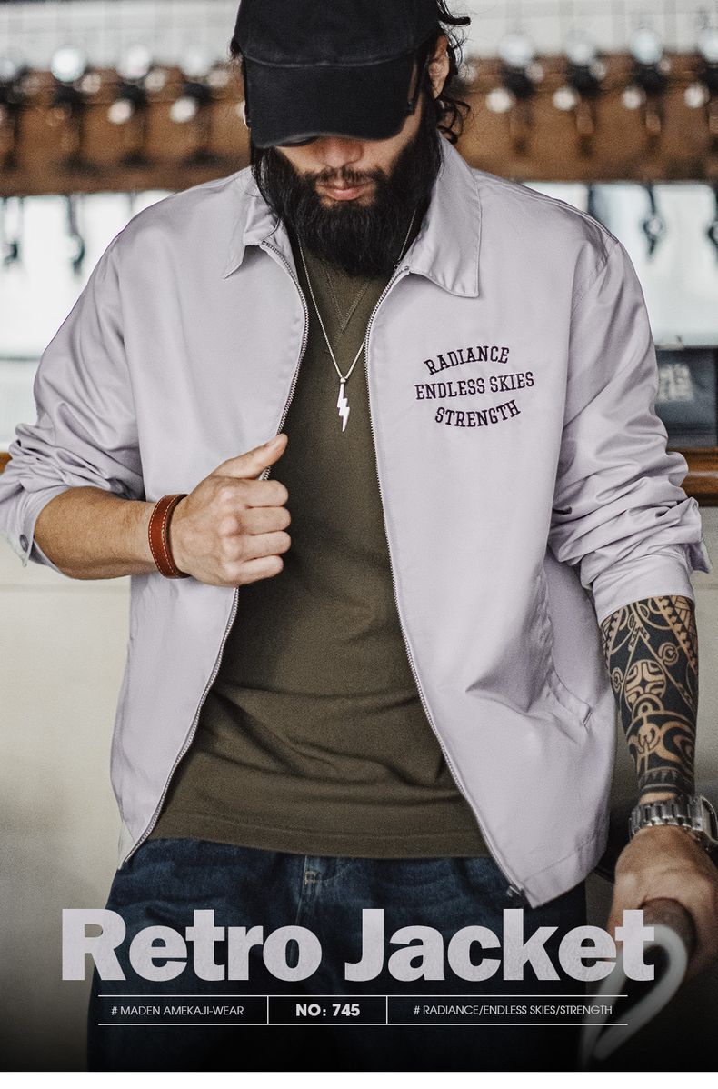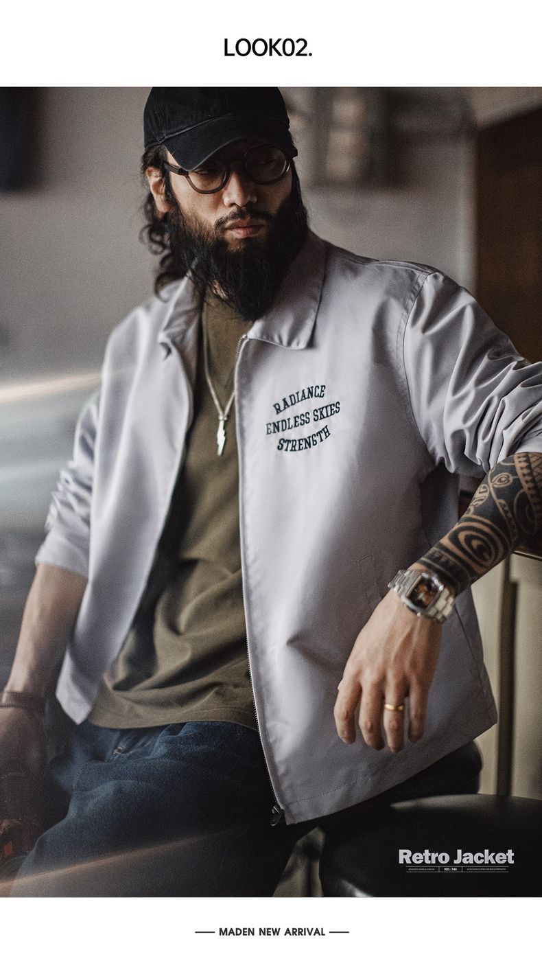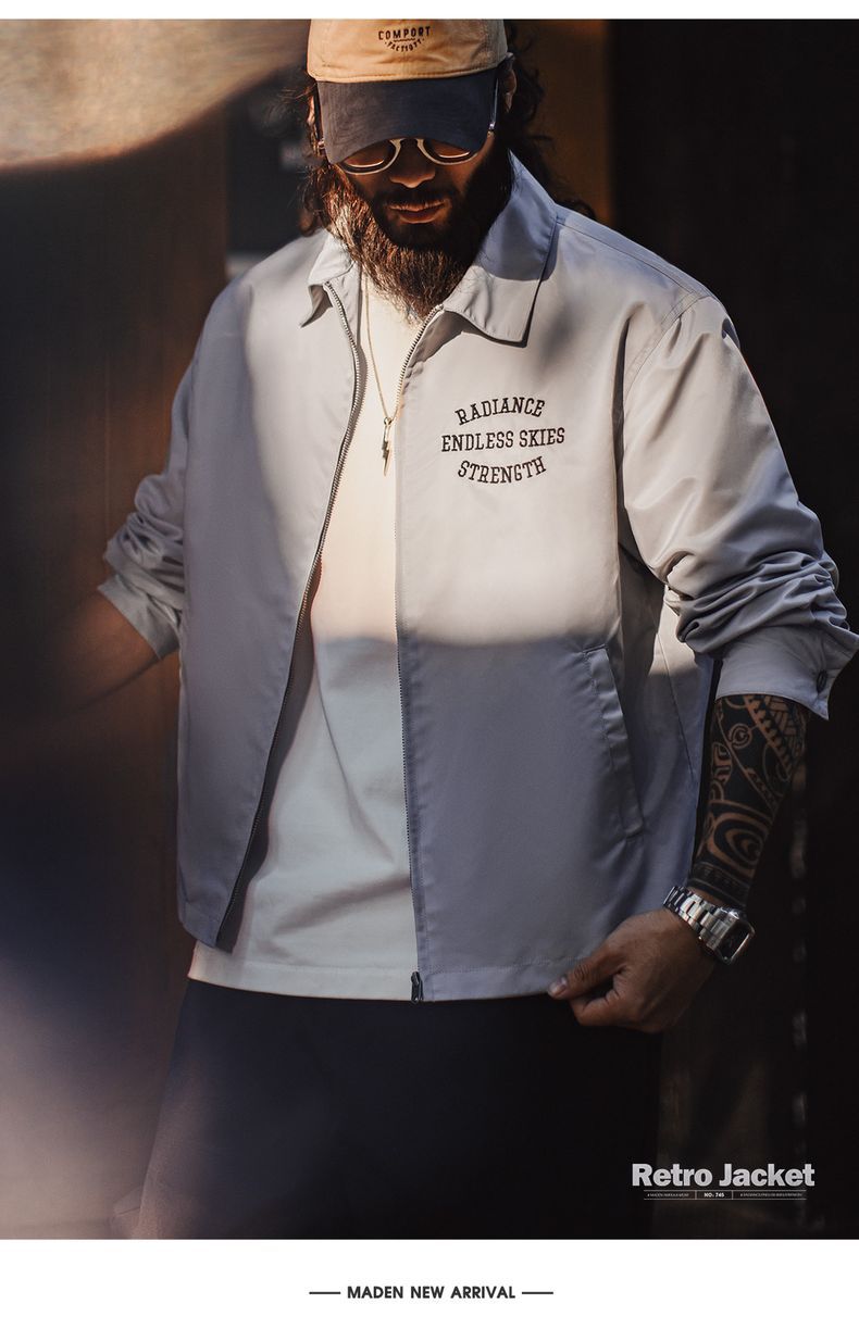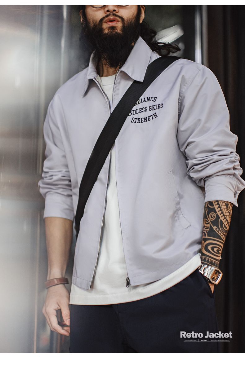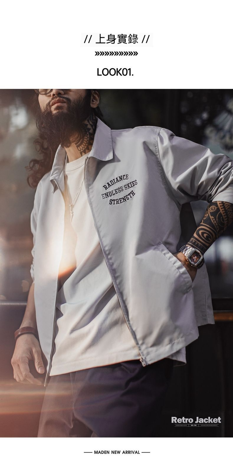 馬登工裝 美式復古字母刺繡教練夾克翻領寬鬆外套廓形休閒上衣男春