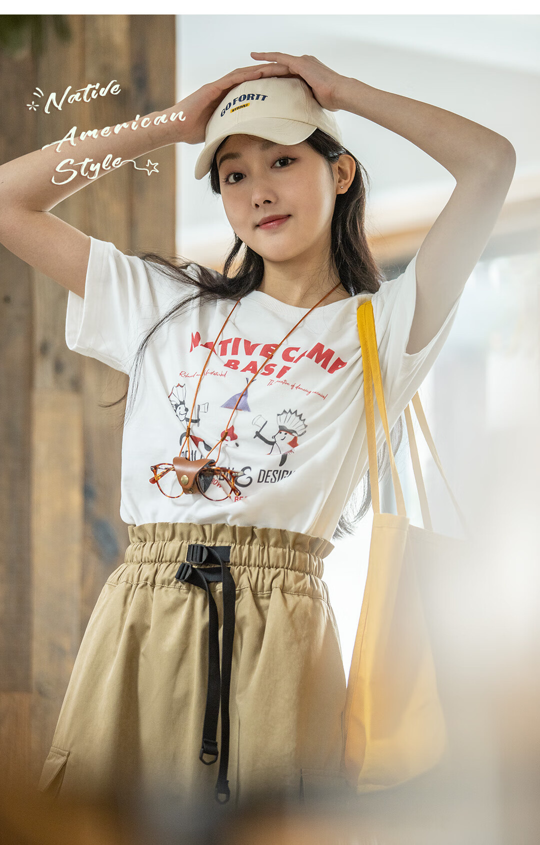 大面積的小眾酒紅和白色的撞色,上身很顯白,胸前的撞色字母繡,順著袖口章仔68號路線,一鍵穿越90S復古街頭~
