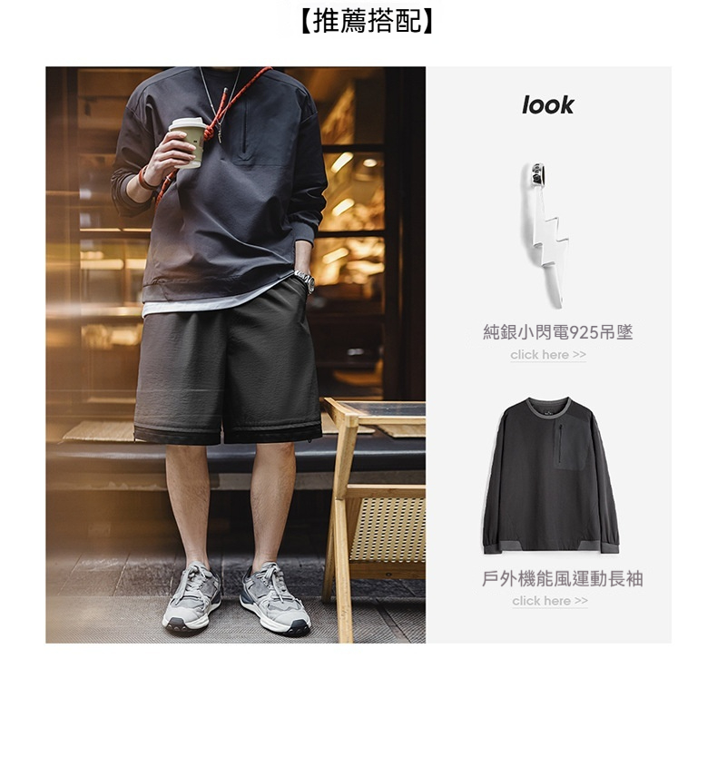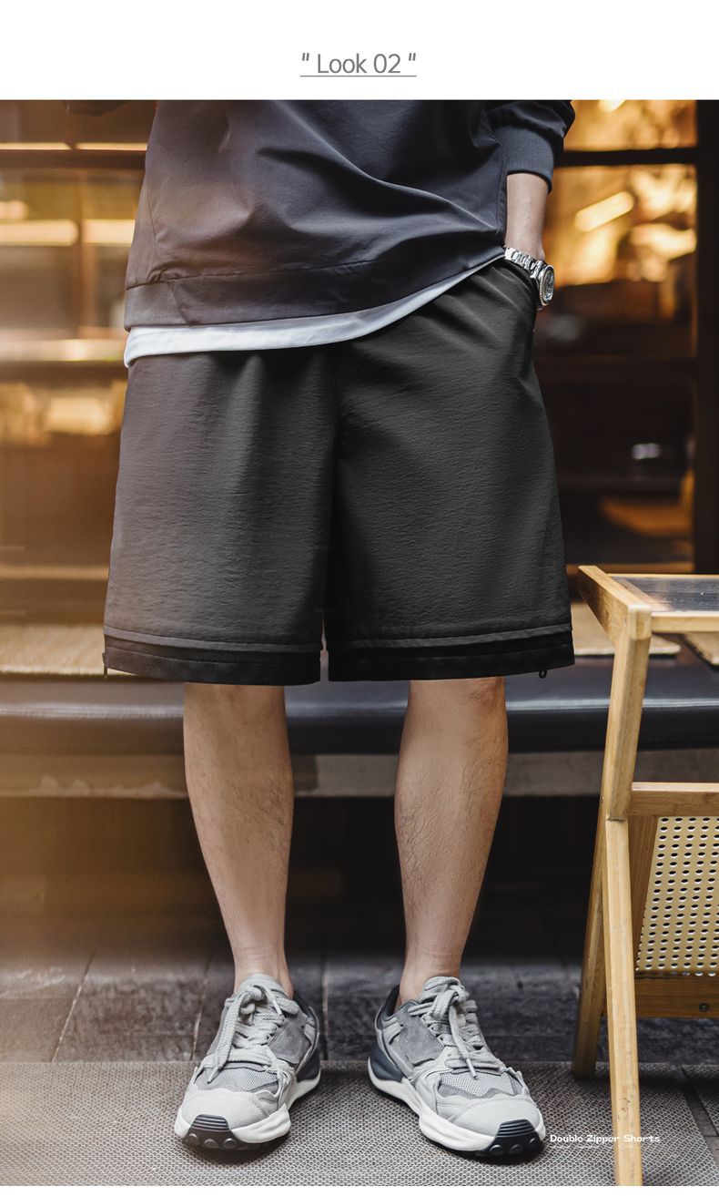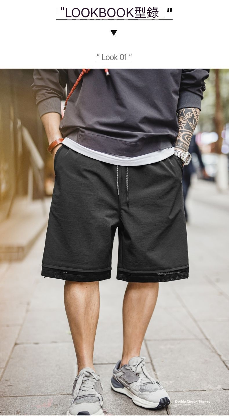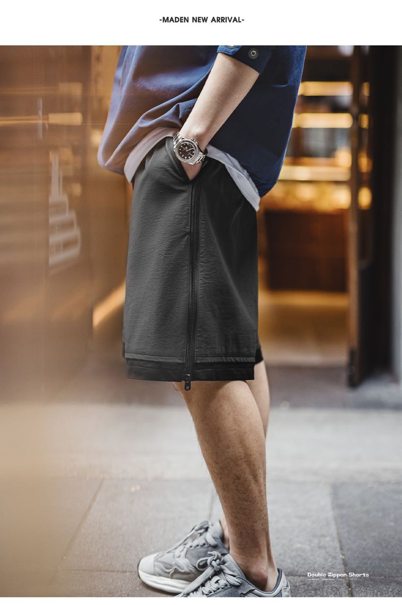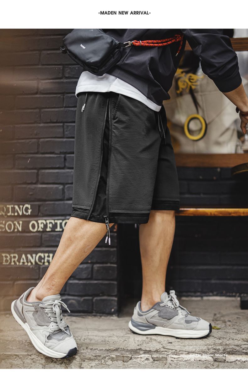 馬登工裝 美式戶外機能側拉鍊短褲日系寬鬆透氣運動五分褲夏季