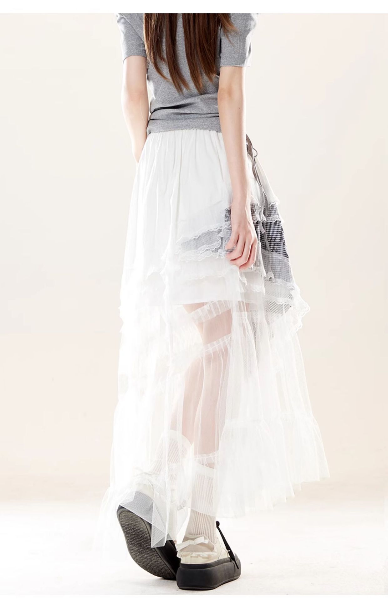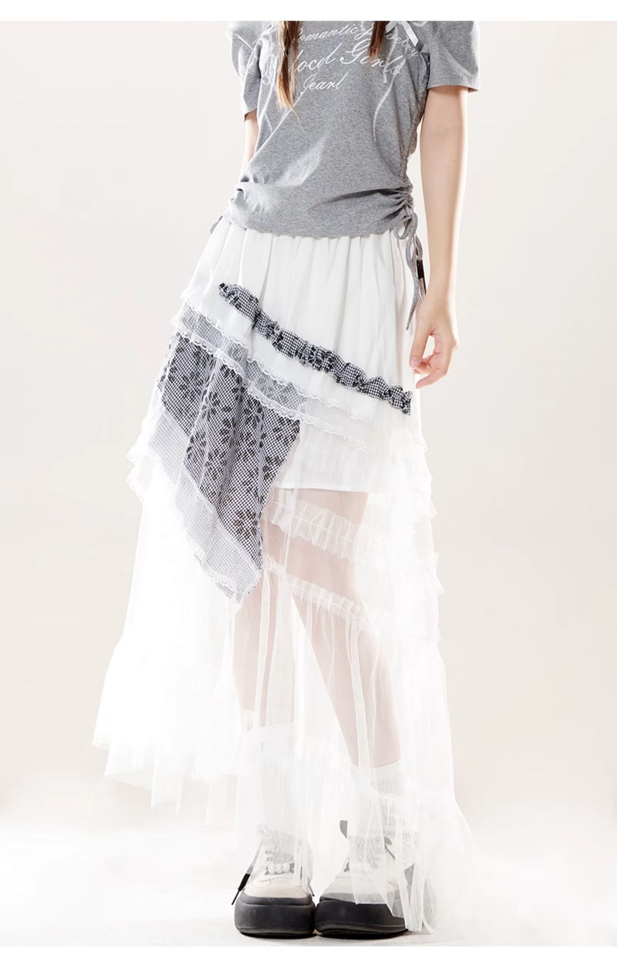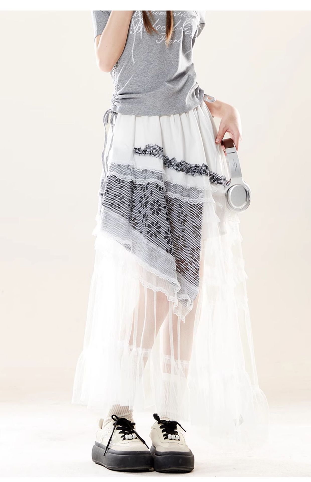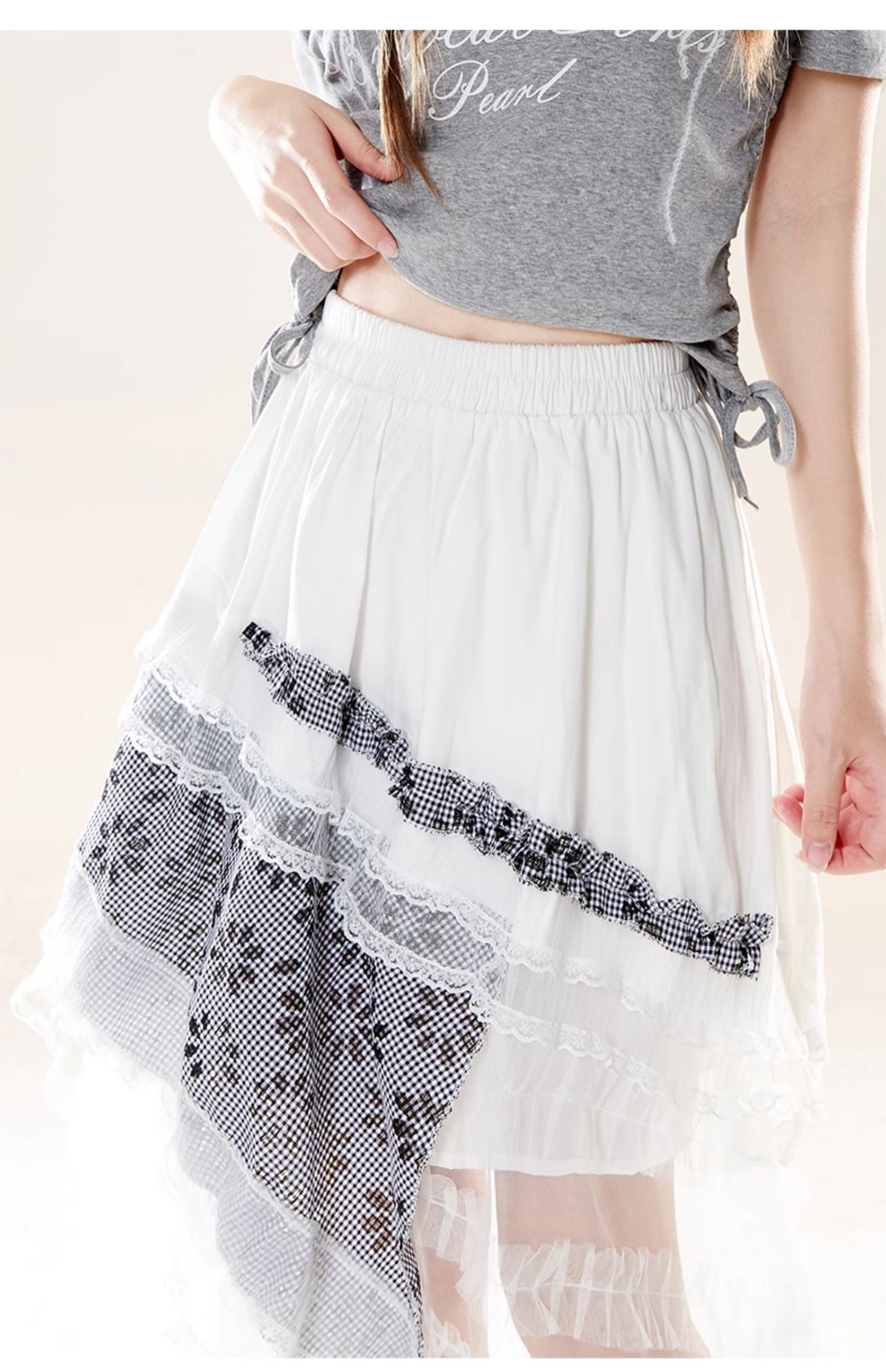 元素: 蕾絲拼接, 格紋拼接, 不規則設計