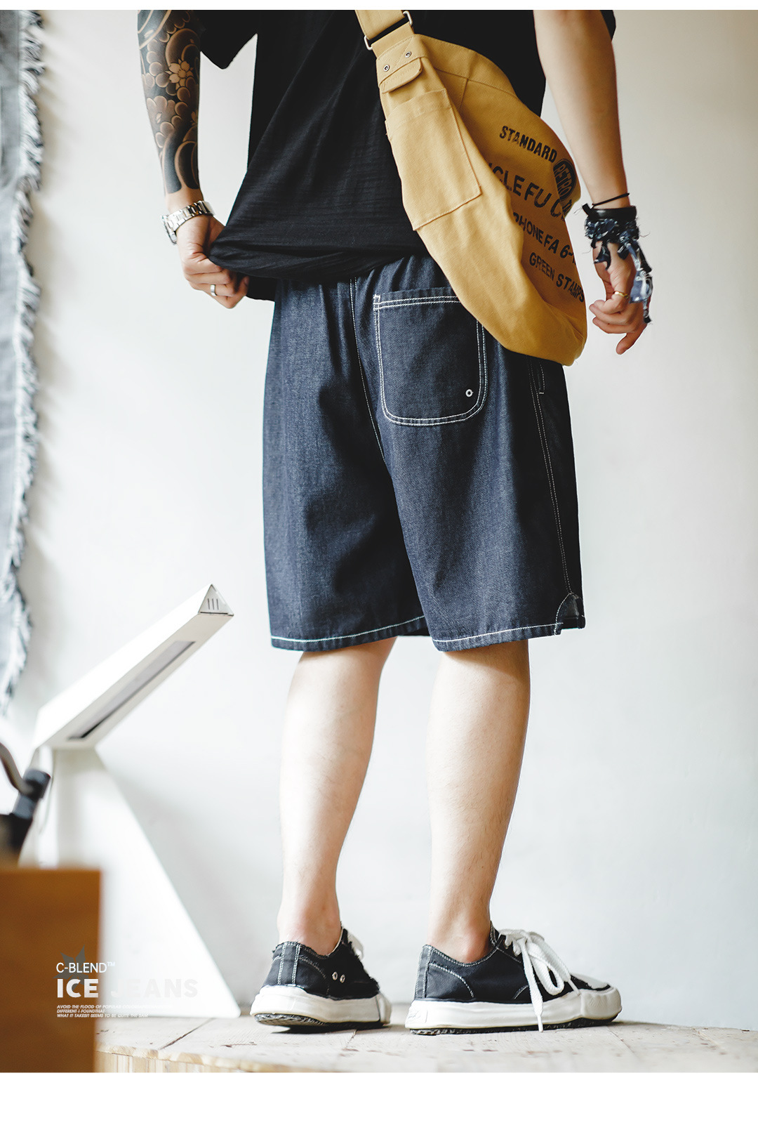 馬登工裝 美式休閒冰皮牛仔短褲丹寧涼感五分褲寬鬆直筒半褲