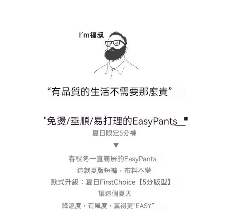 馬登工裝 美式休閒Easypants短褲免燙抗皺垂感寬鬆直筒五分褲