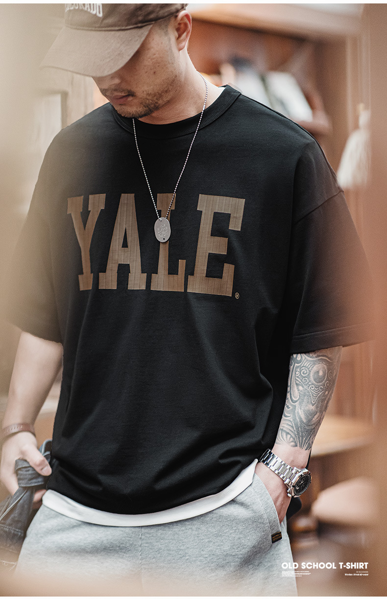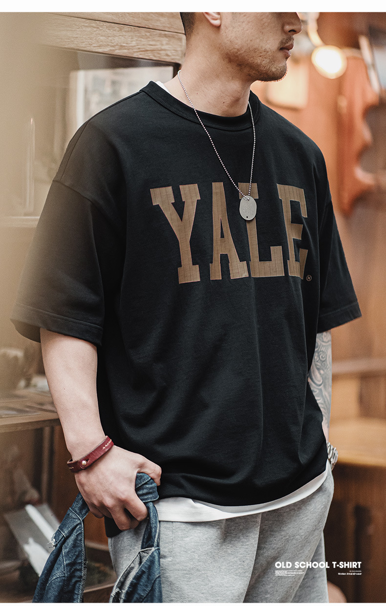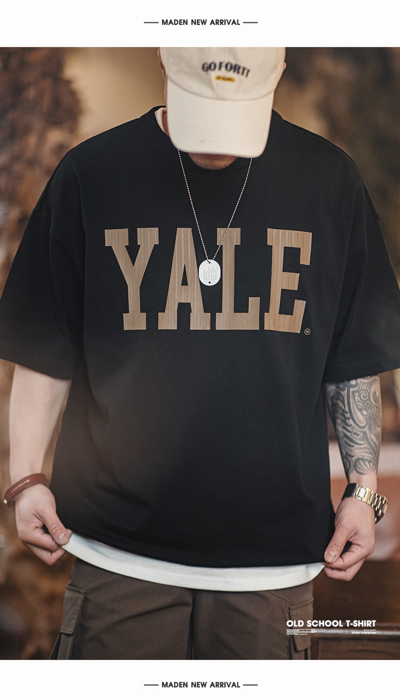 馬登工裝 美式撞色字母印花T恤學院風耶魯大學純棉短袖體恤