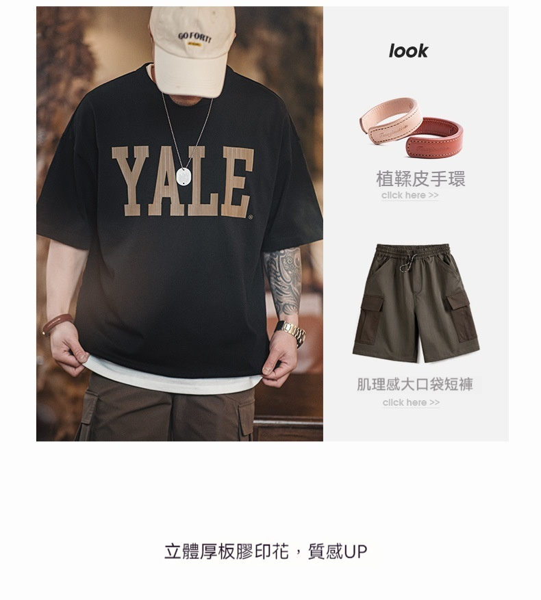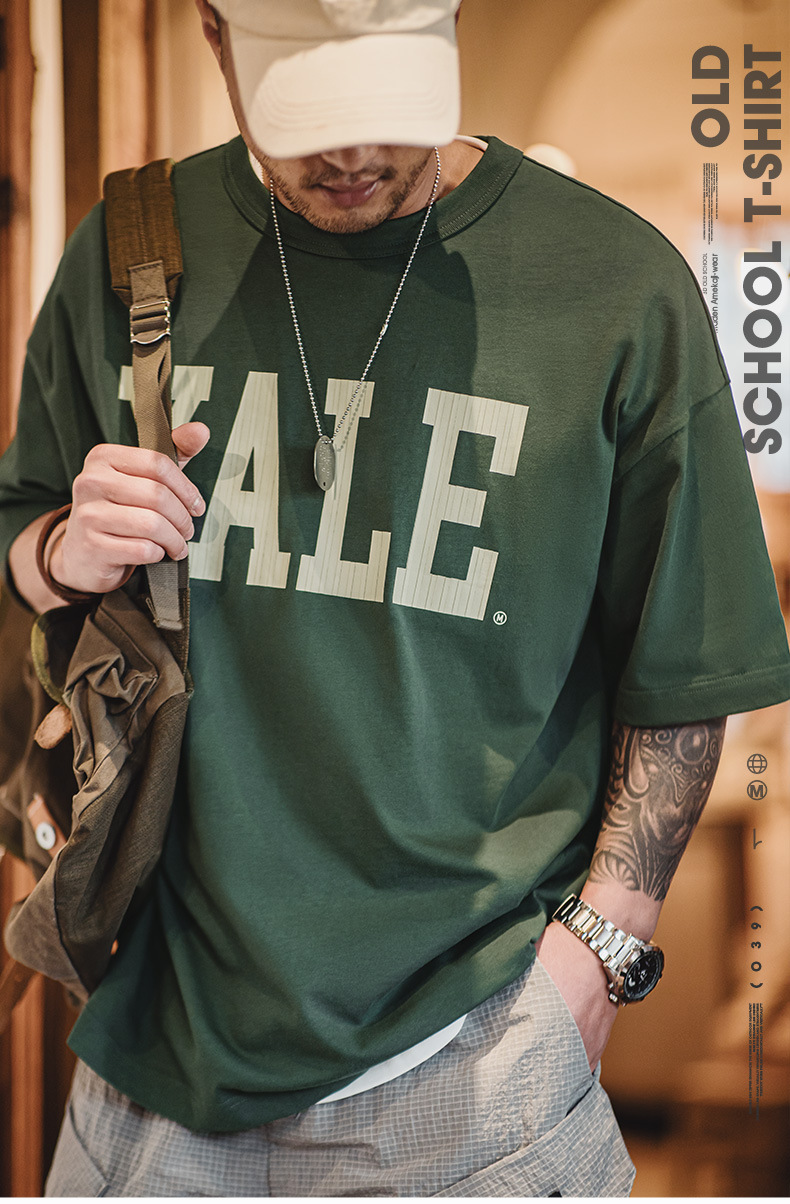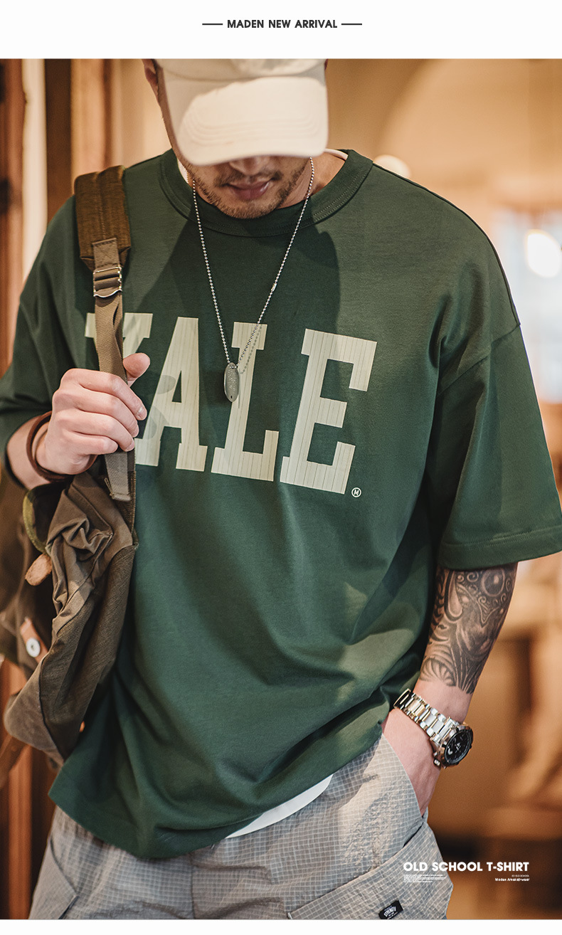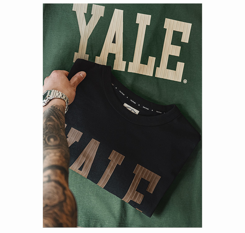 馬登工裝 美式撞色字母印花T恤學院風耶魯大學純棉短袖體恤