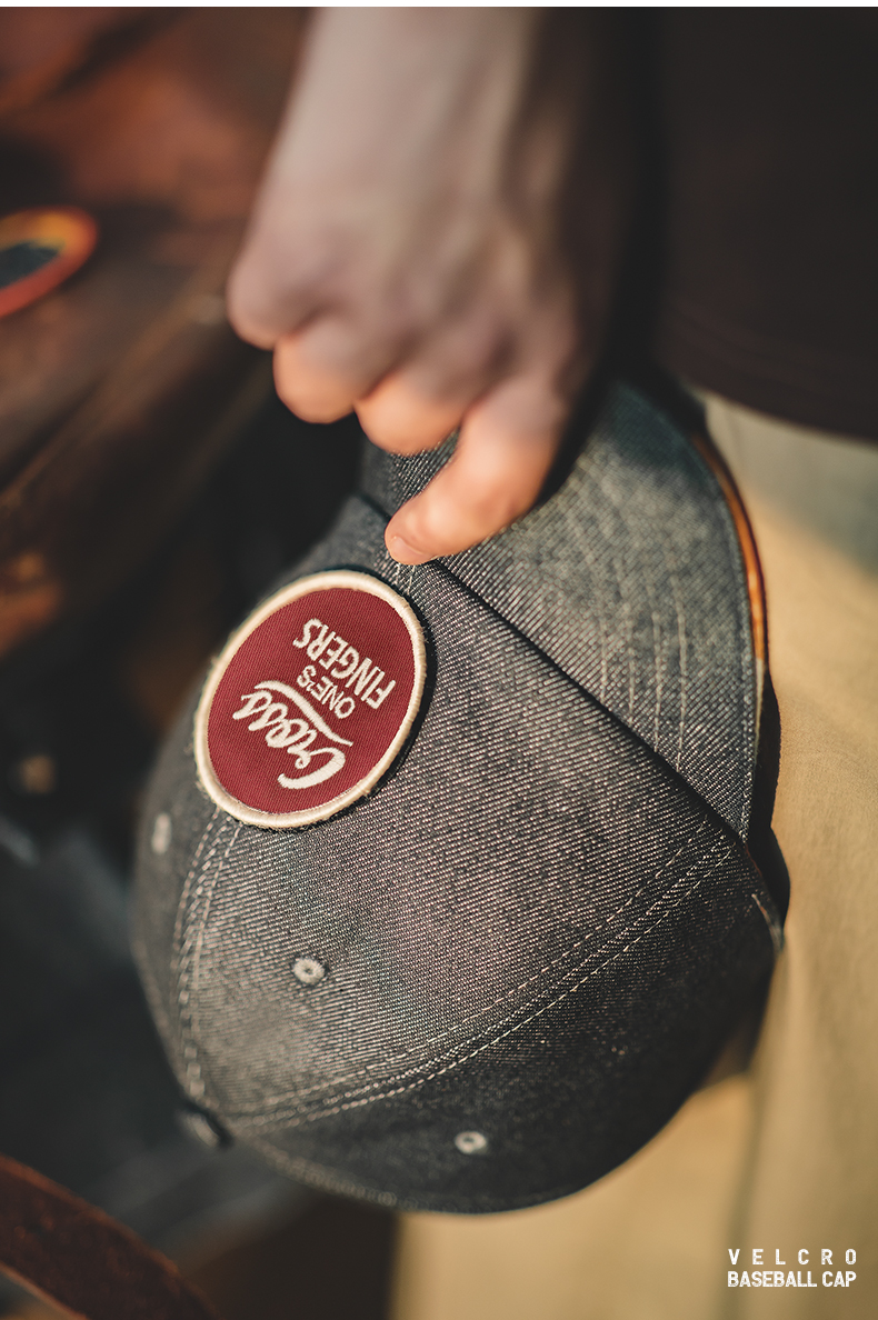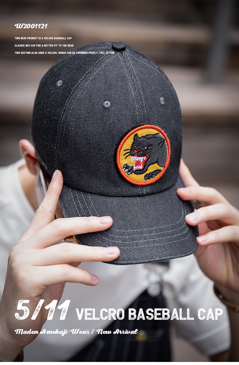 馬登工裝 美式丹寧牛仔魔術貼棒球帽阿美咔嘰做舊印花鴨舌帽