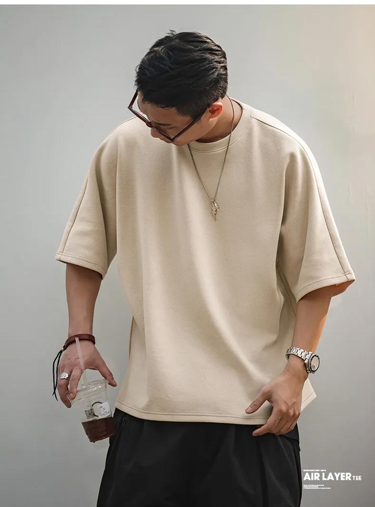 馬登工裝 美式復古珠地空氣棉T卹春夏寬鬆輪廓免燙短袖Tee男潮