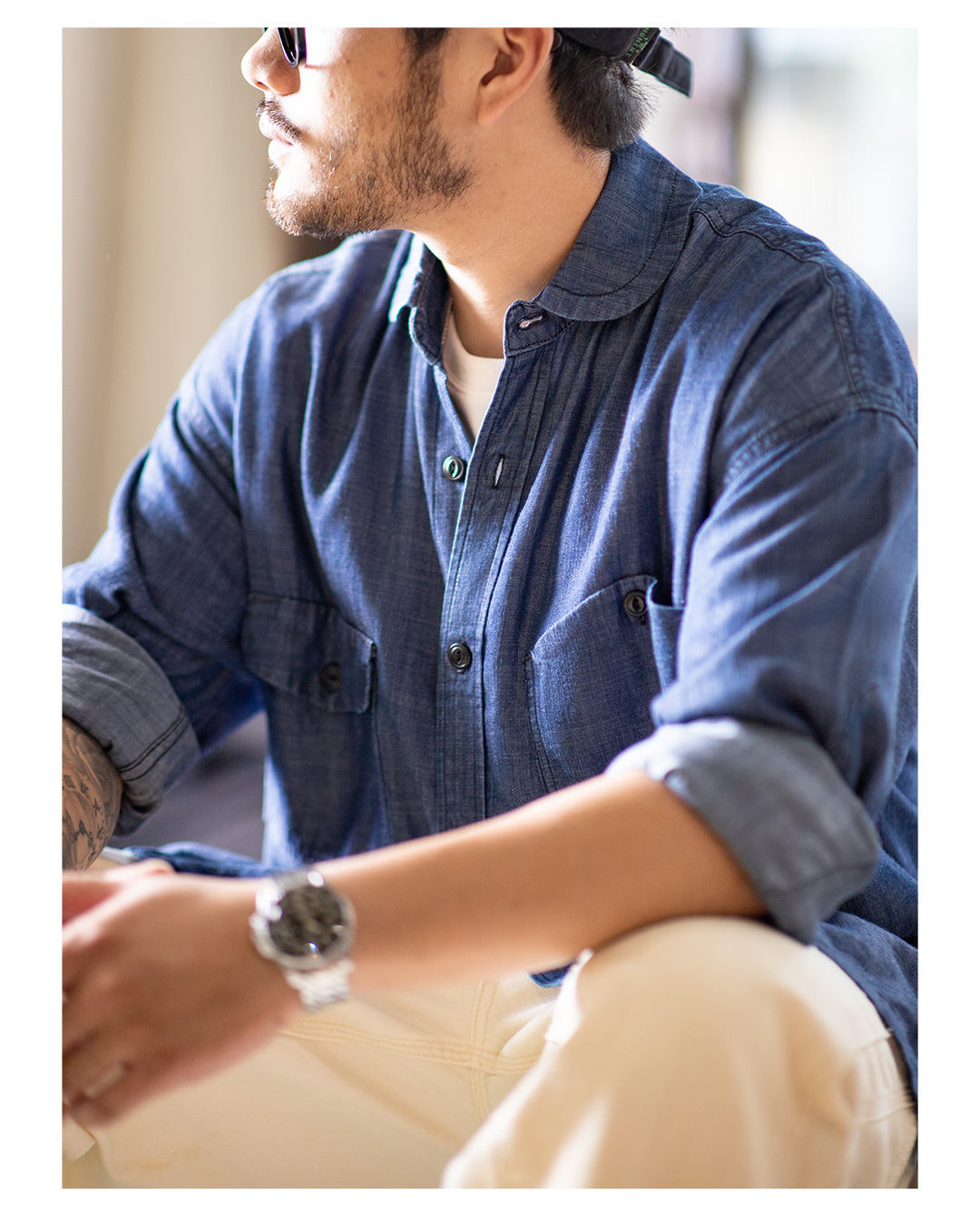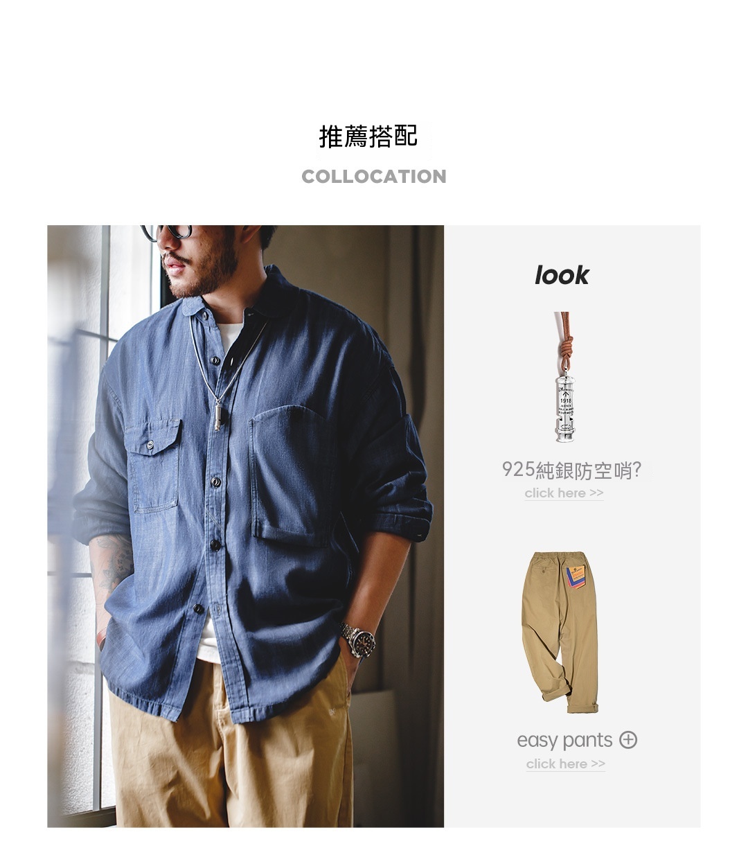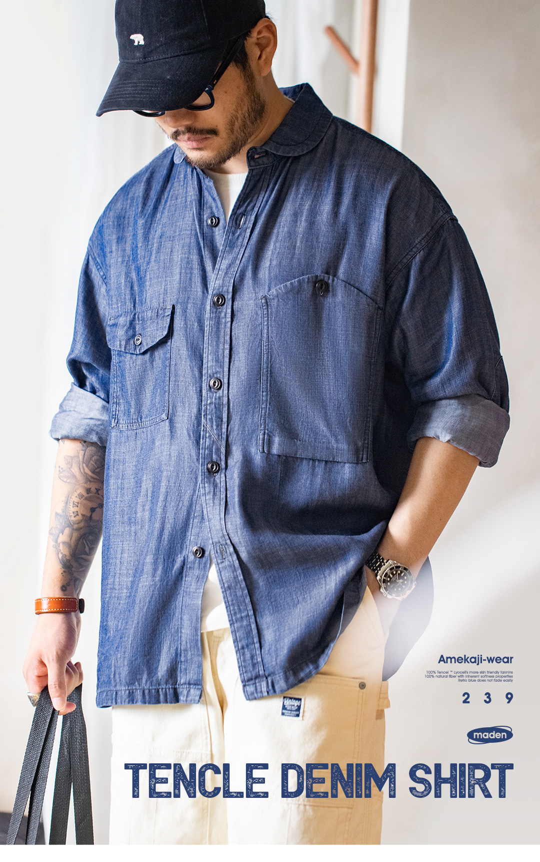 馬登工裝 美式復古天絲牛仔襯衫丹寧萊賽爾長袖襯衣外套
