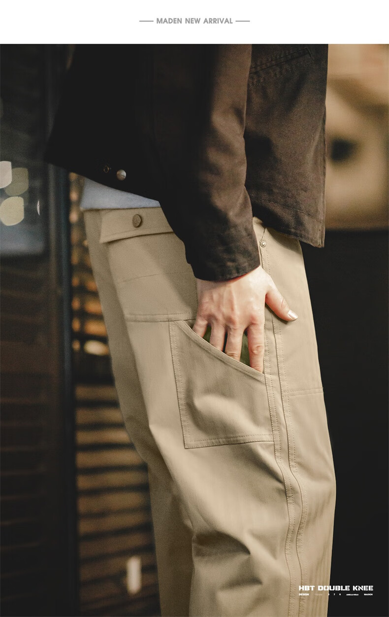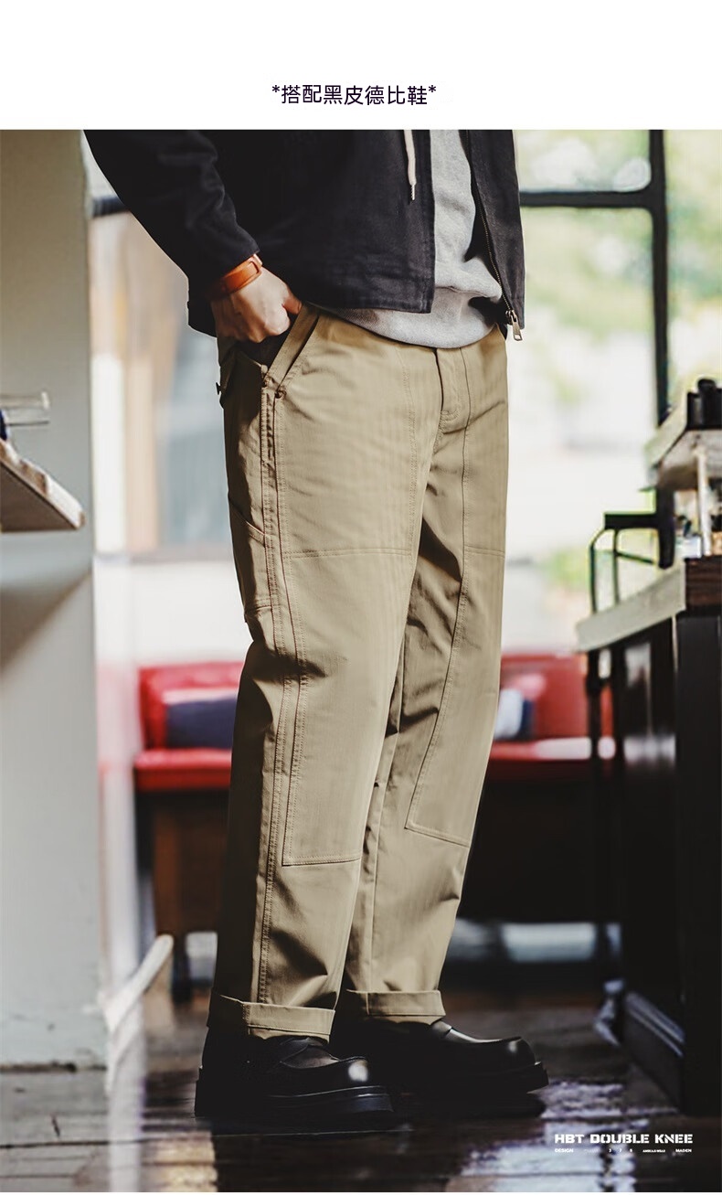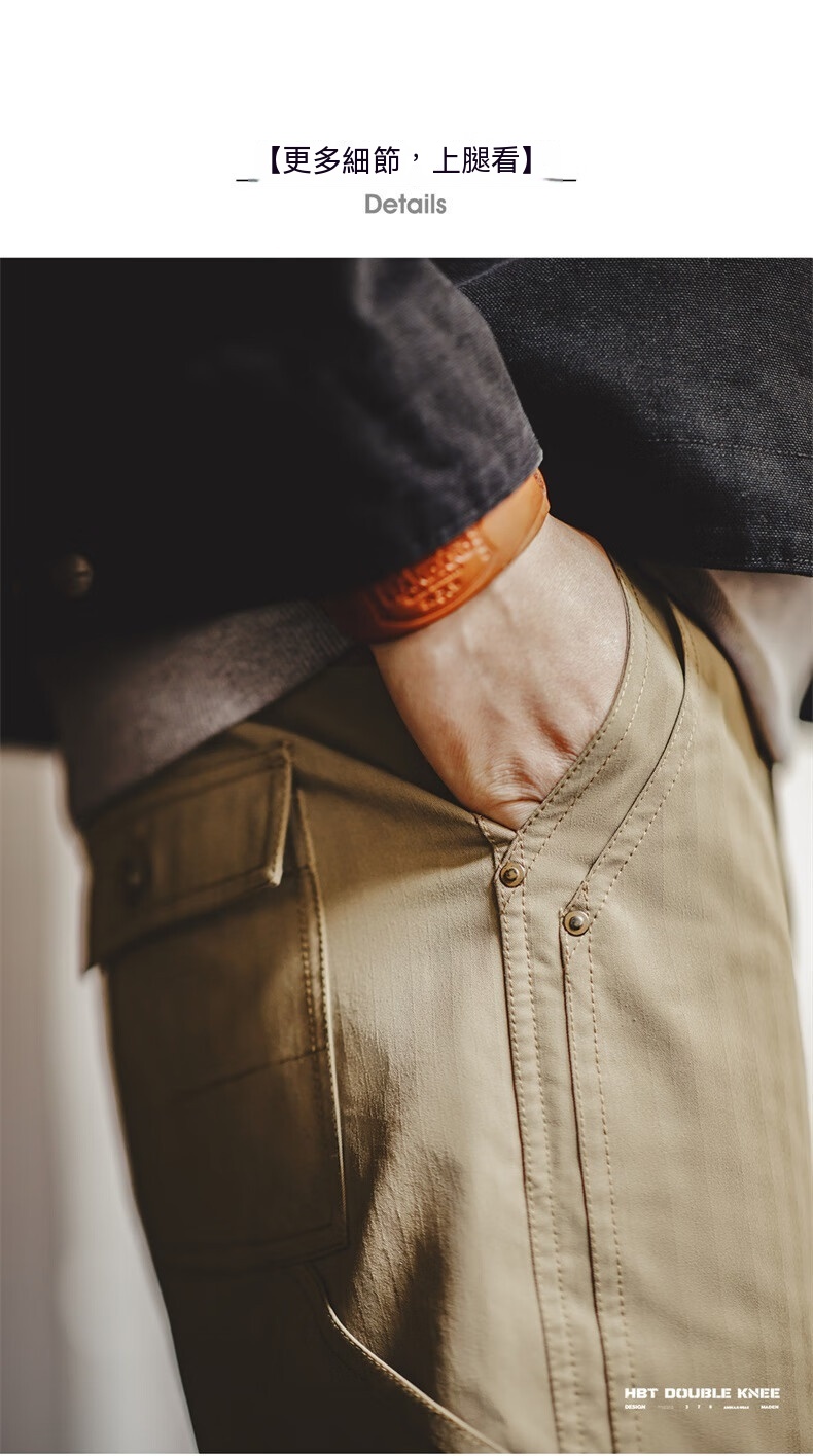 馬登工裝 美式復古雙膝拼接伐木褲Vintage多口袋人字紋休閒褲