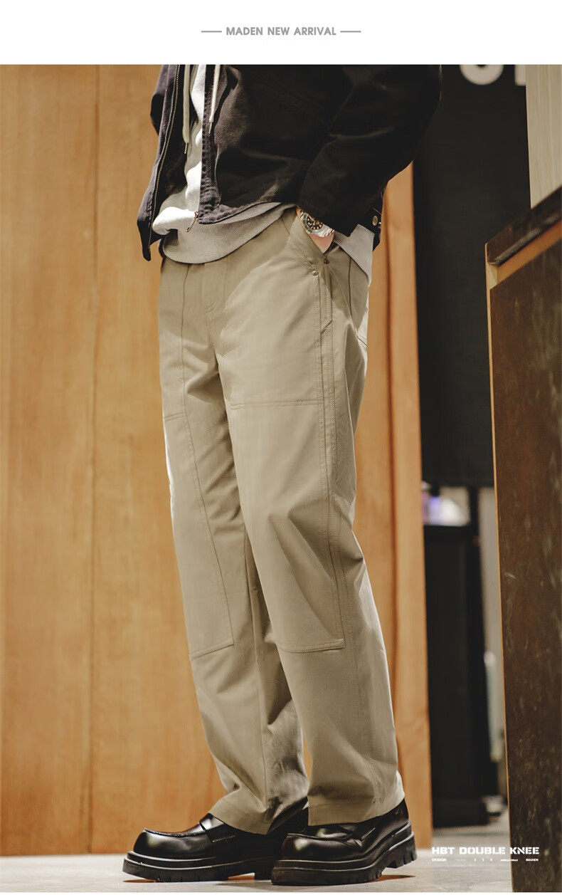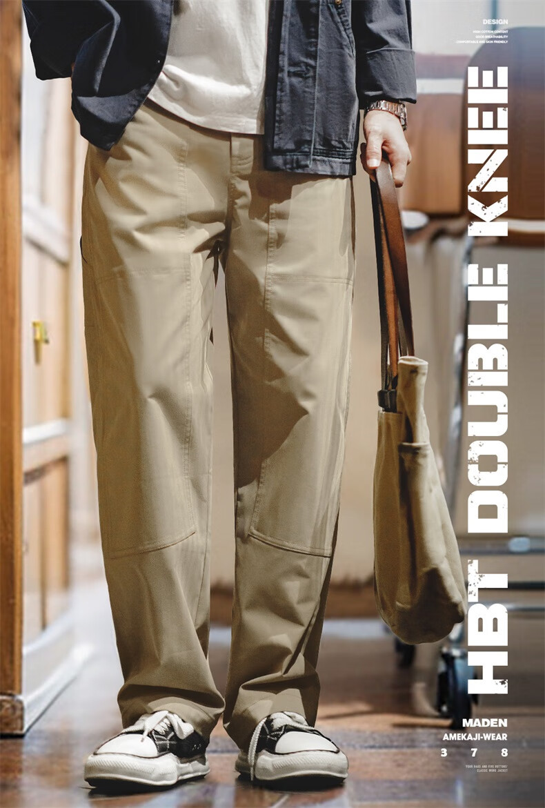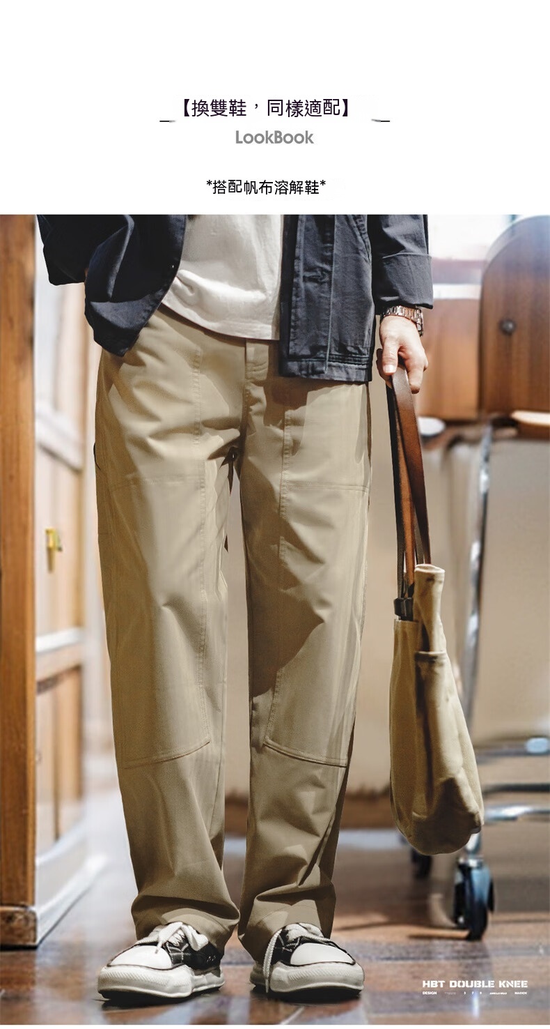 馬登工裝 美式復古雙膝拼接伐木褲Vintage多口袋人字紋休閒褲