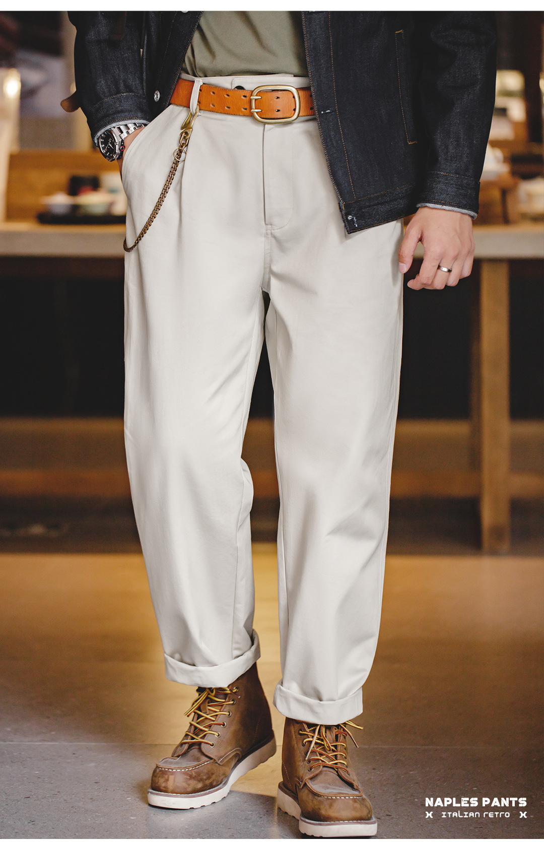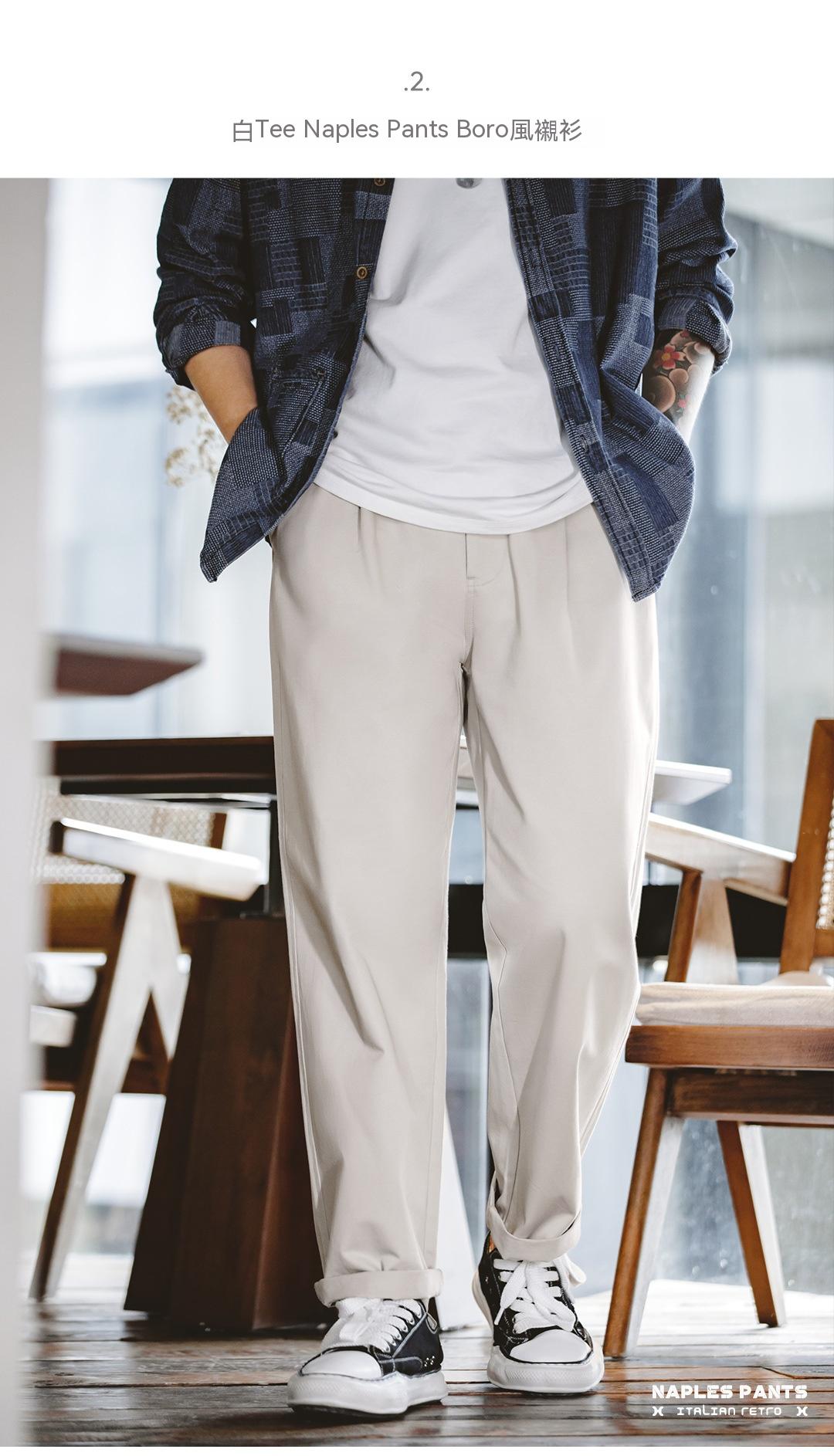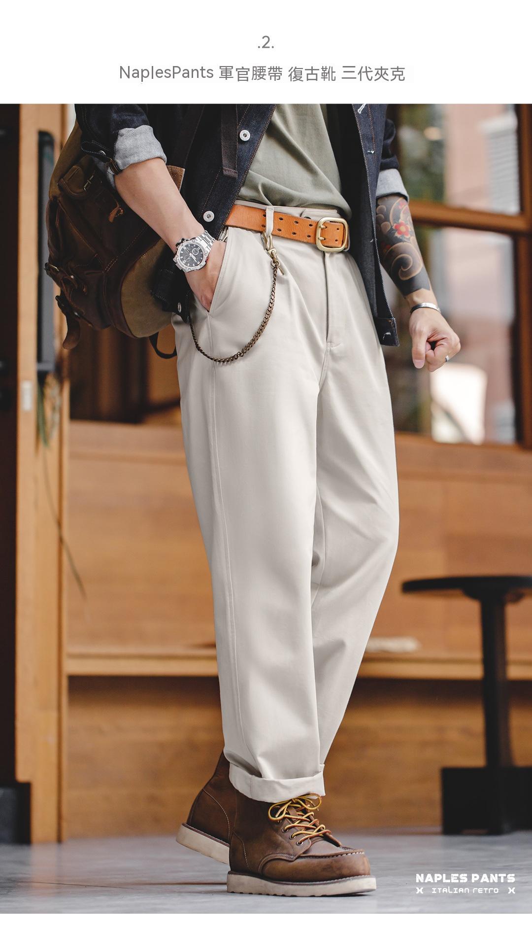 馬登工裝 美式復古那不勒斯長褲設計感紳士巴黎扣直筒休閒褲子男