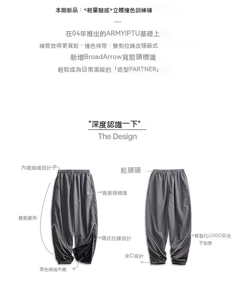 元素: 口袋, 抽繩, 褲管隱藏式拉鏈