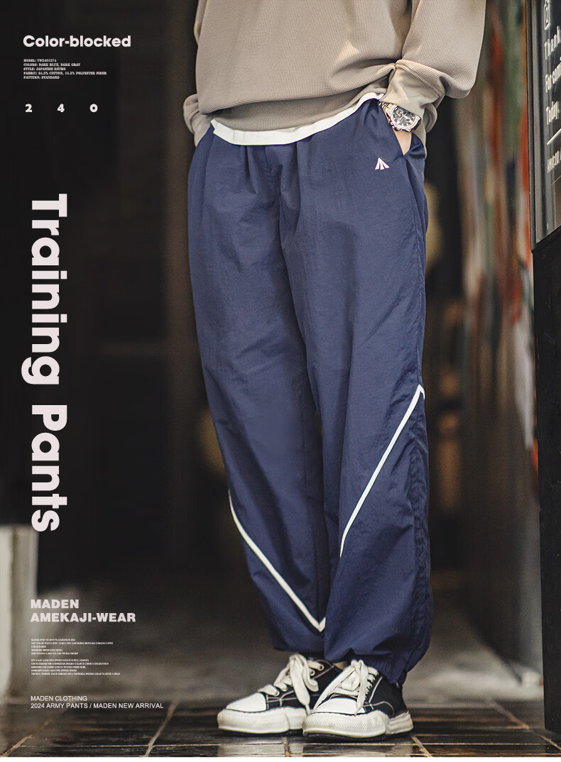 馬登工裝 ARMY撞色訓練褲復古運動長褲潮流寬鬆束腳休閒褲
