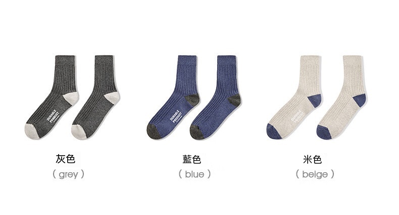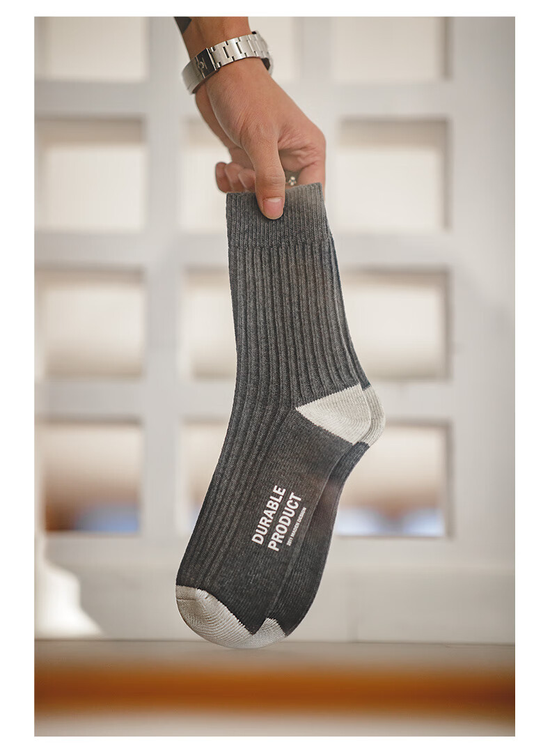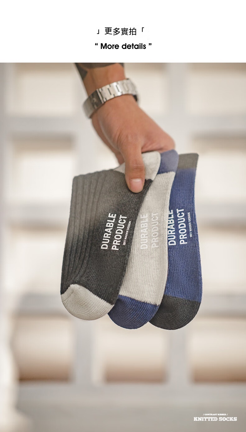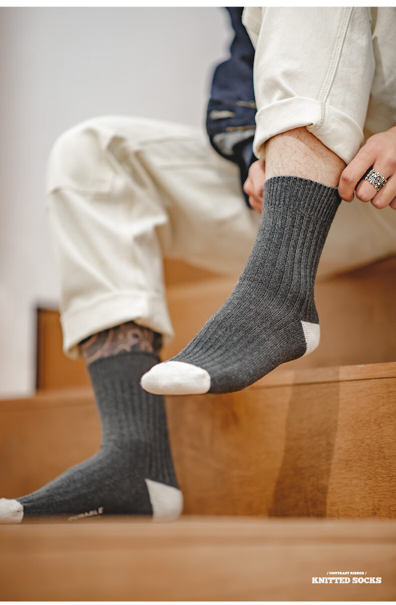 馬登工裝 美式休閒撞色羅紋針織中筒襪三色坑條粗線長襪子