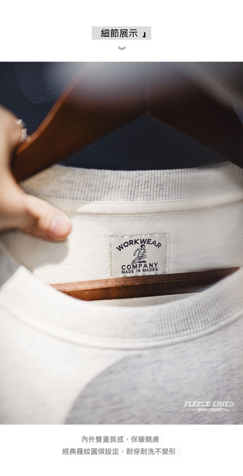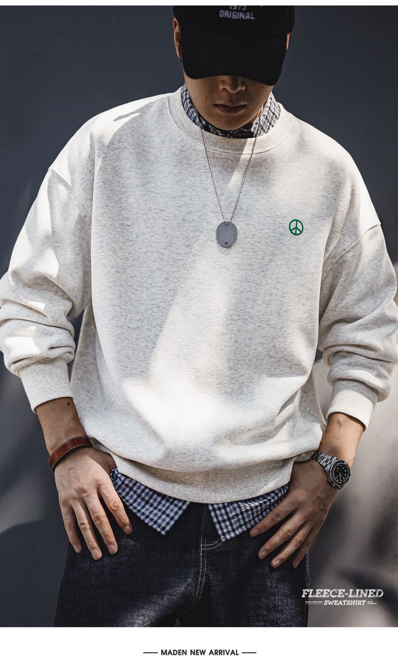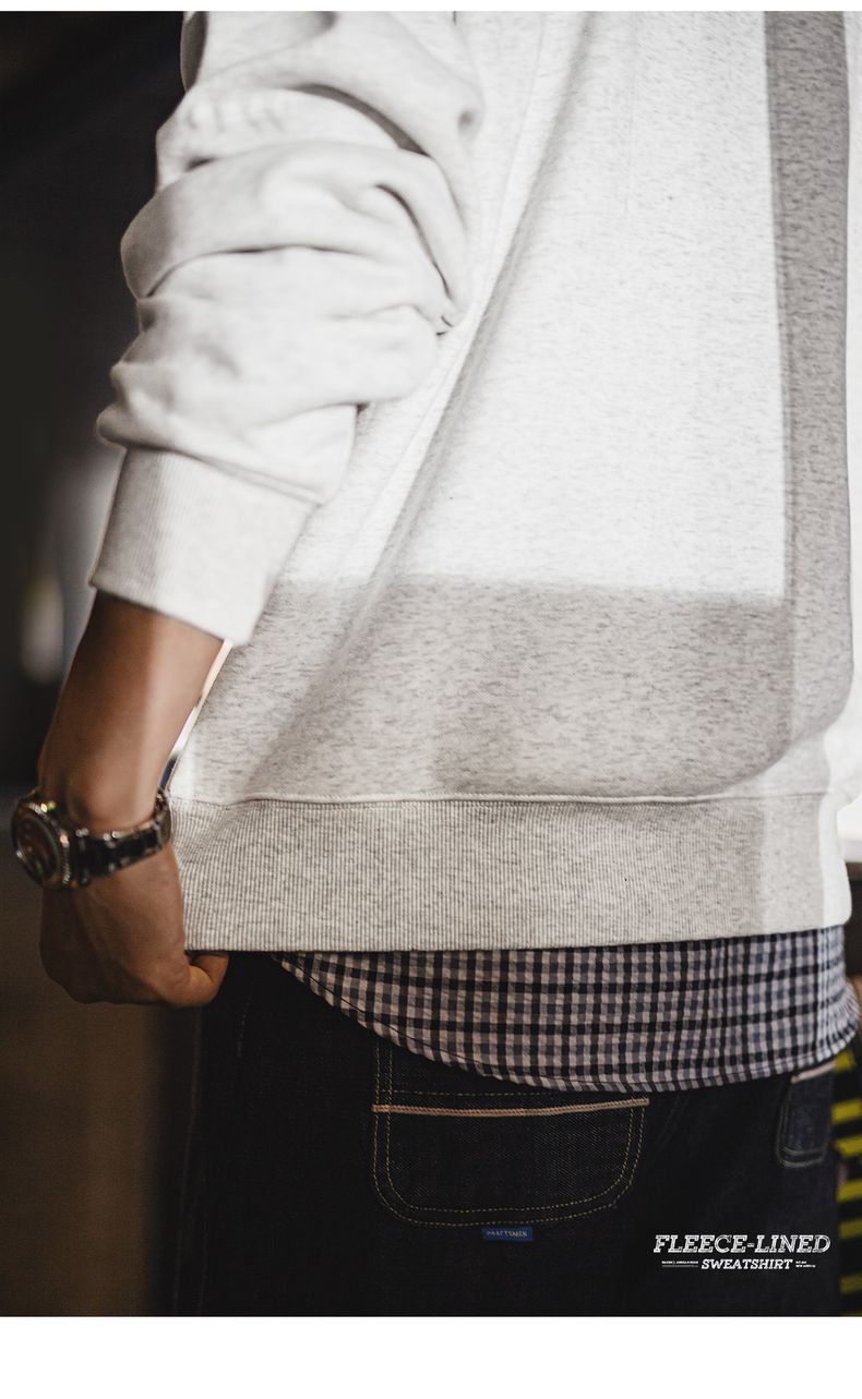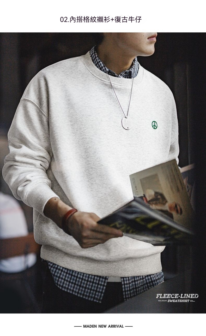 馬登工裝 美式休閒圓領加絨衛衣基礎寬鬆落肩打底上衣男秋冬季