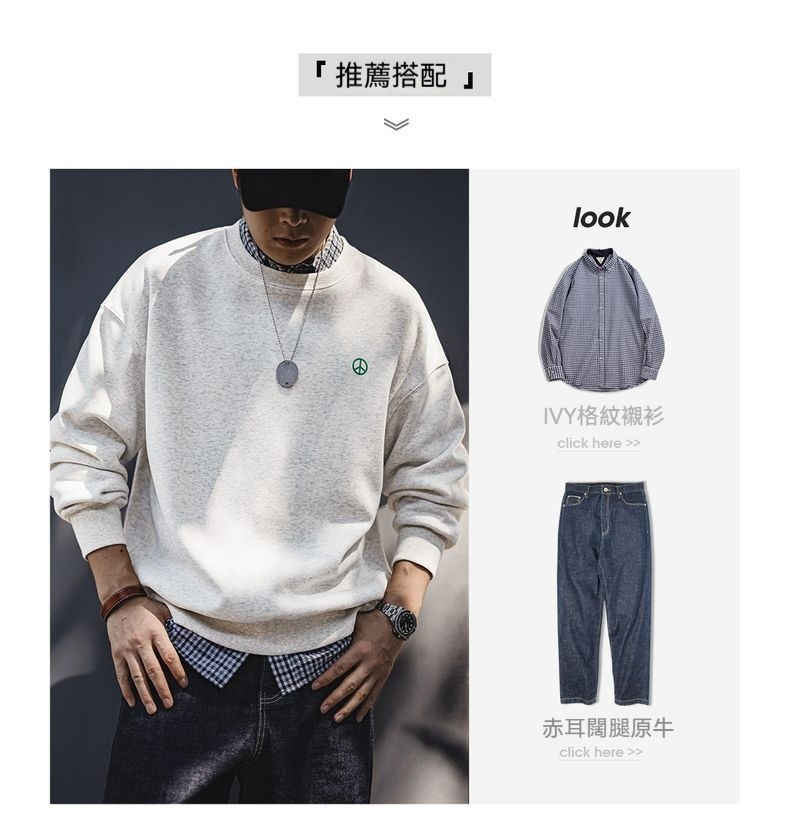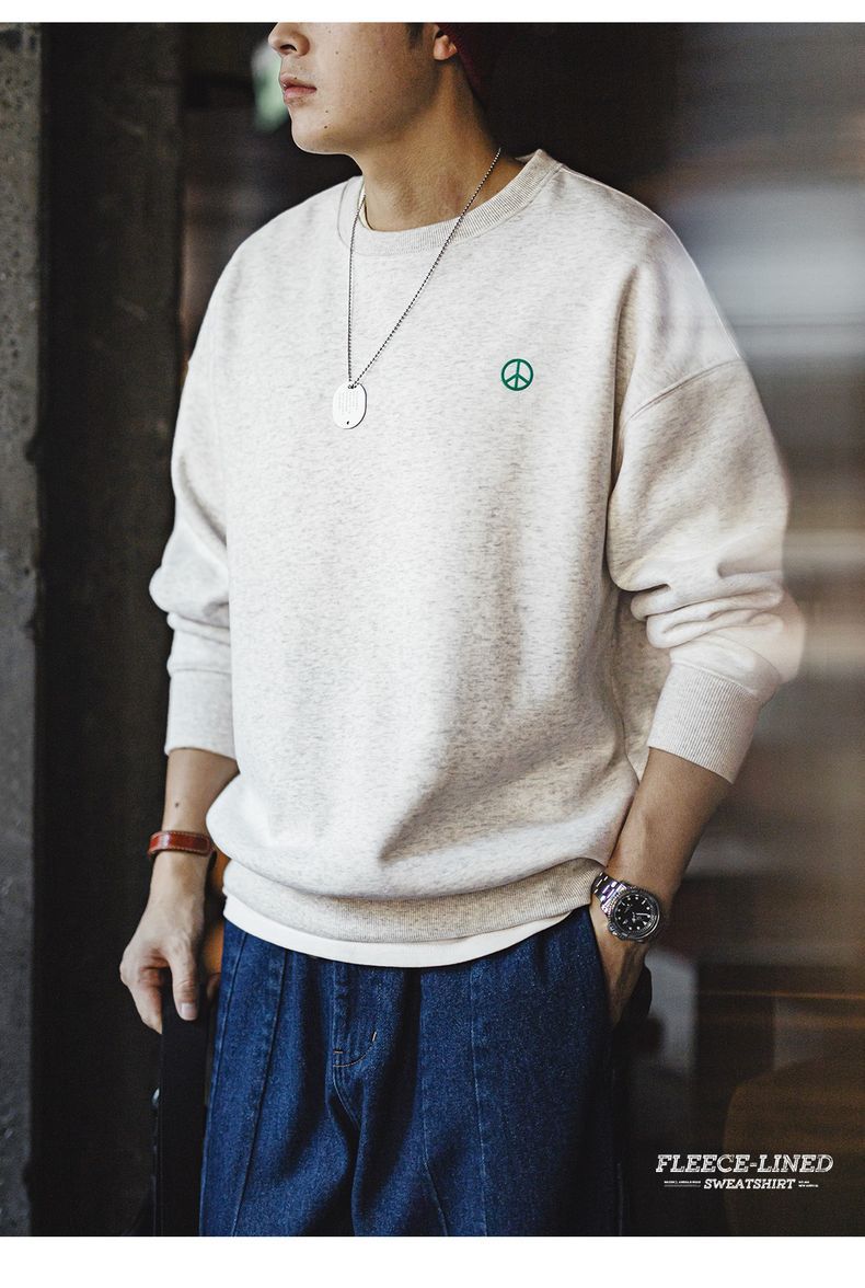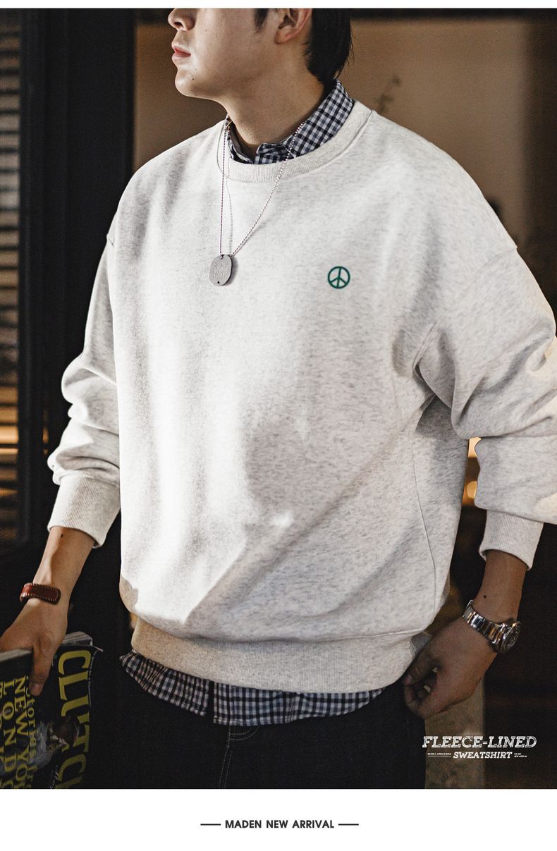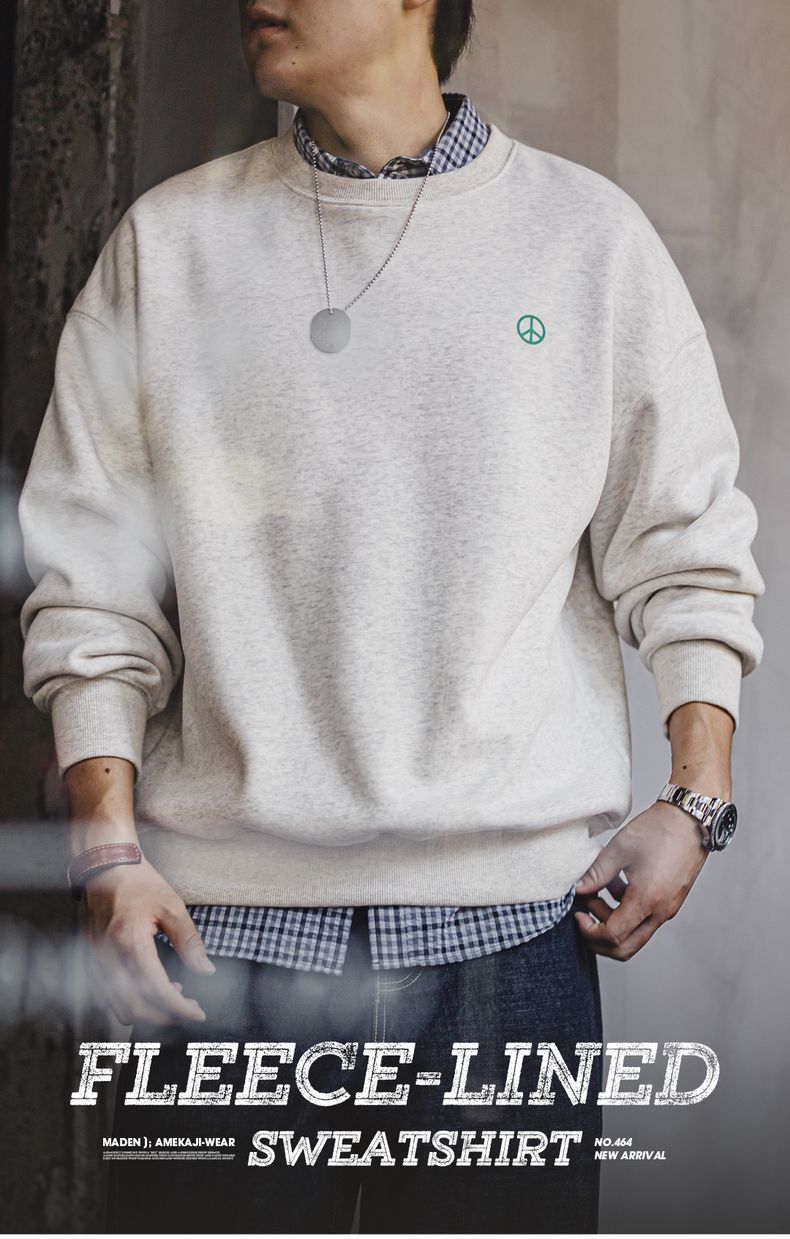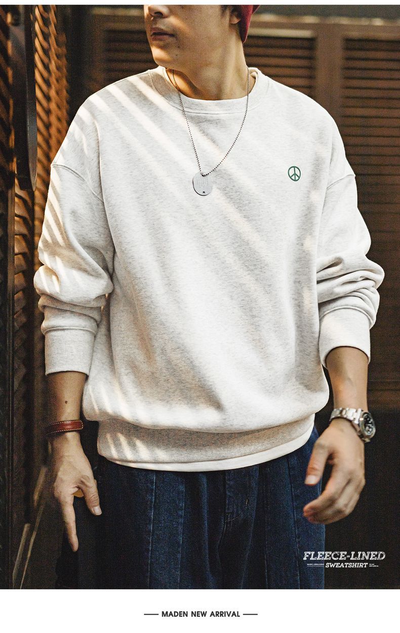 馬登工裝 美式休閒圓領加絨衛衣基礎寬鬆落肩打底上衣男秋冬季