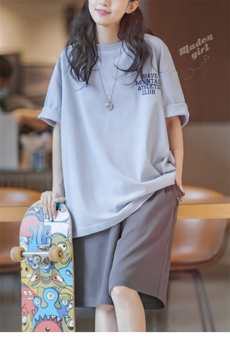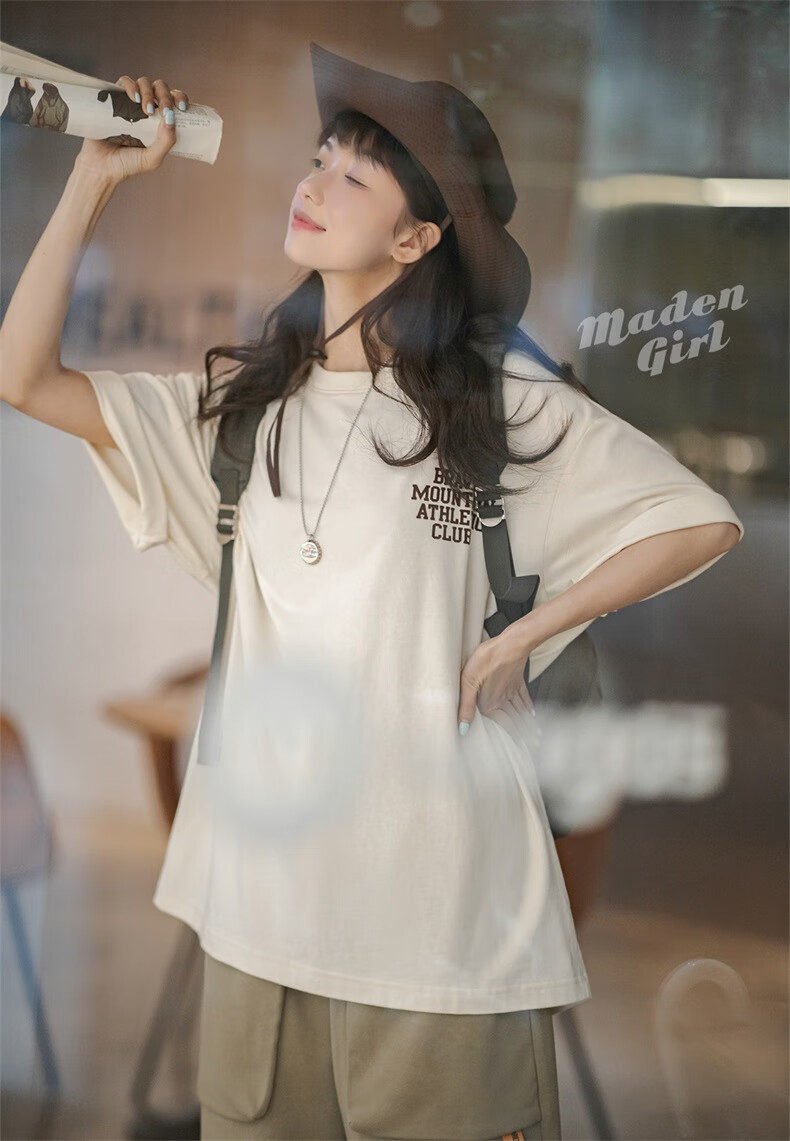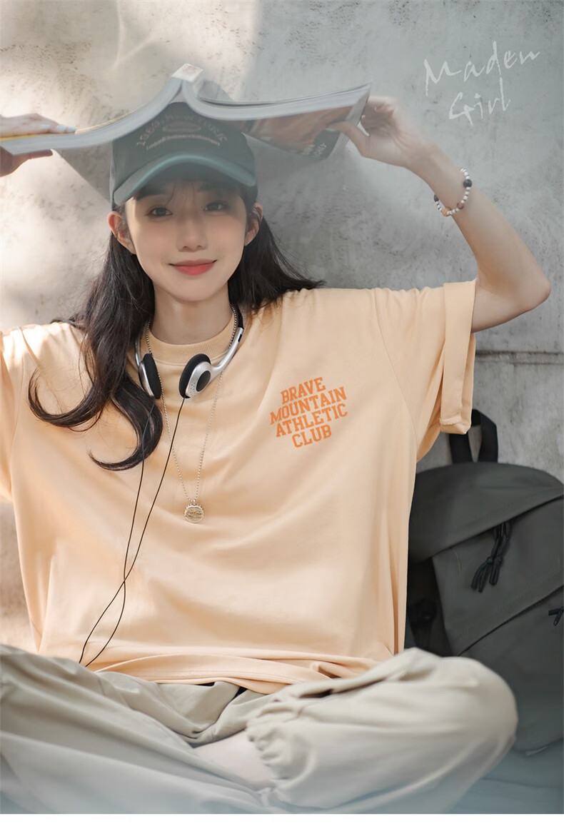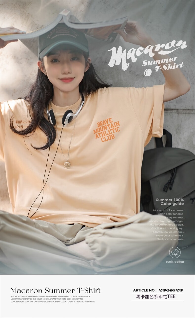馬登女裝 美式休閒馬卡龍色短袖T恤寬鬆純棉字母印花情侶套頭衫