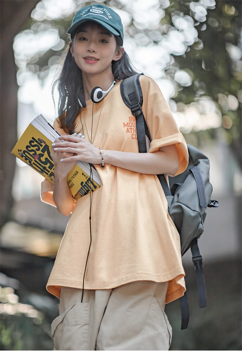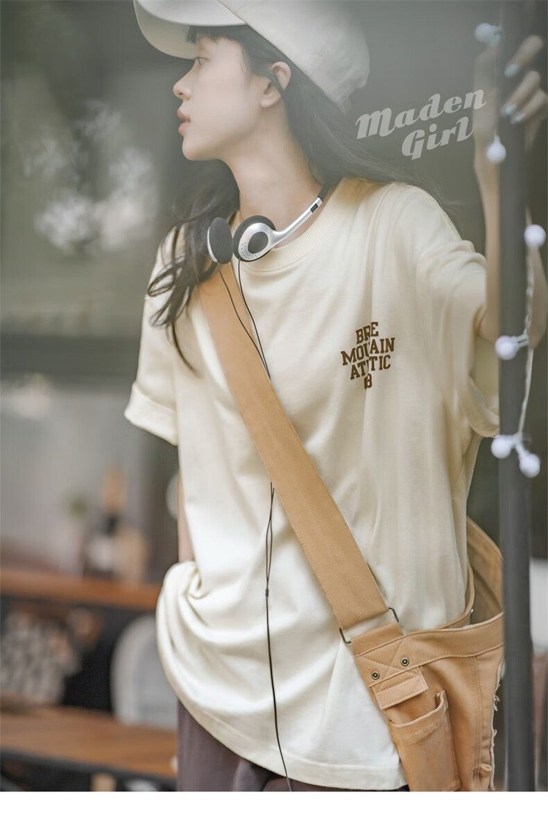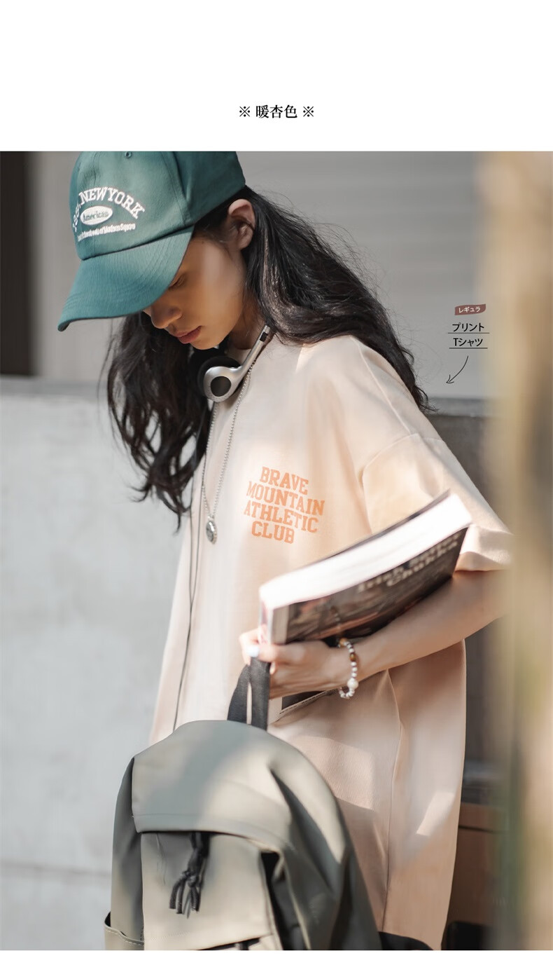 馬登女裝 美式休閒馬卡龍色短袖T恤寬鬆純棉字母印花情侶套頭衫