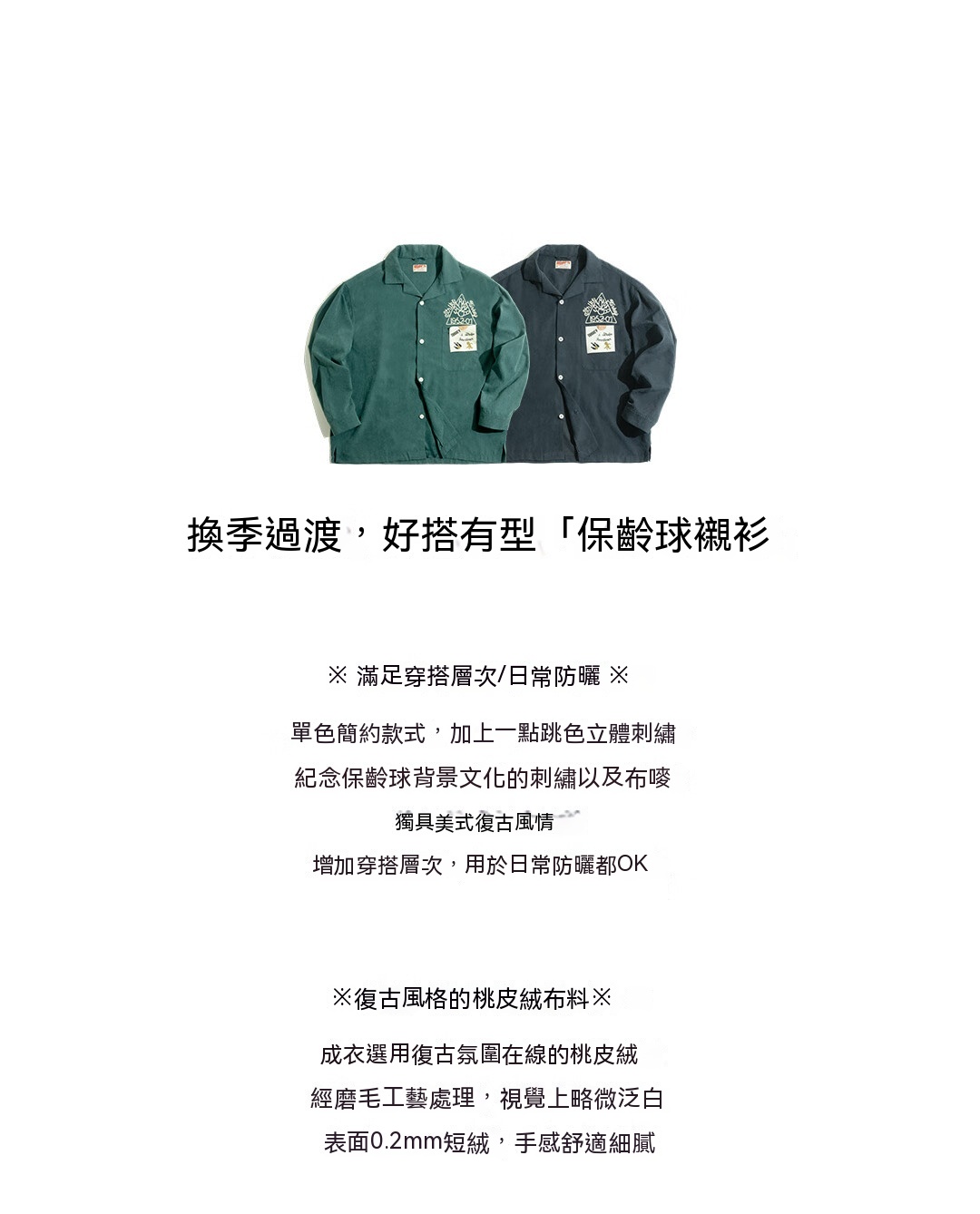 馬登女裝 美式復古磨毛刺繡桃皮絨襯衫寬鬆翻領保齡球襯衣女潮