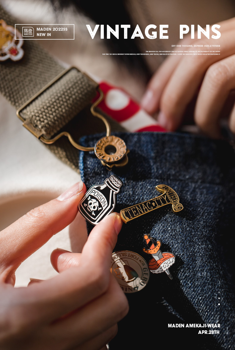 馬登女裝 美式復古珐琅蝴蝶扣胸針配飾阿美哢嘰徽章玩物