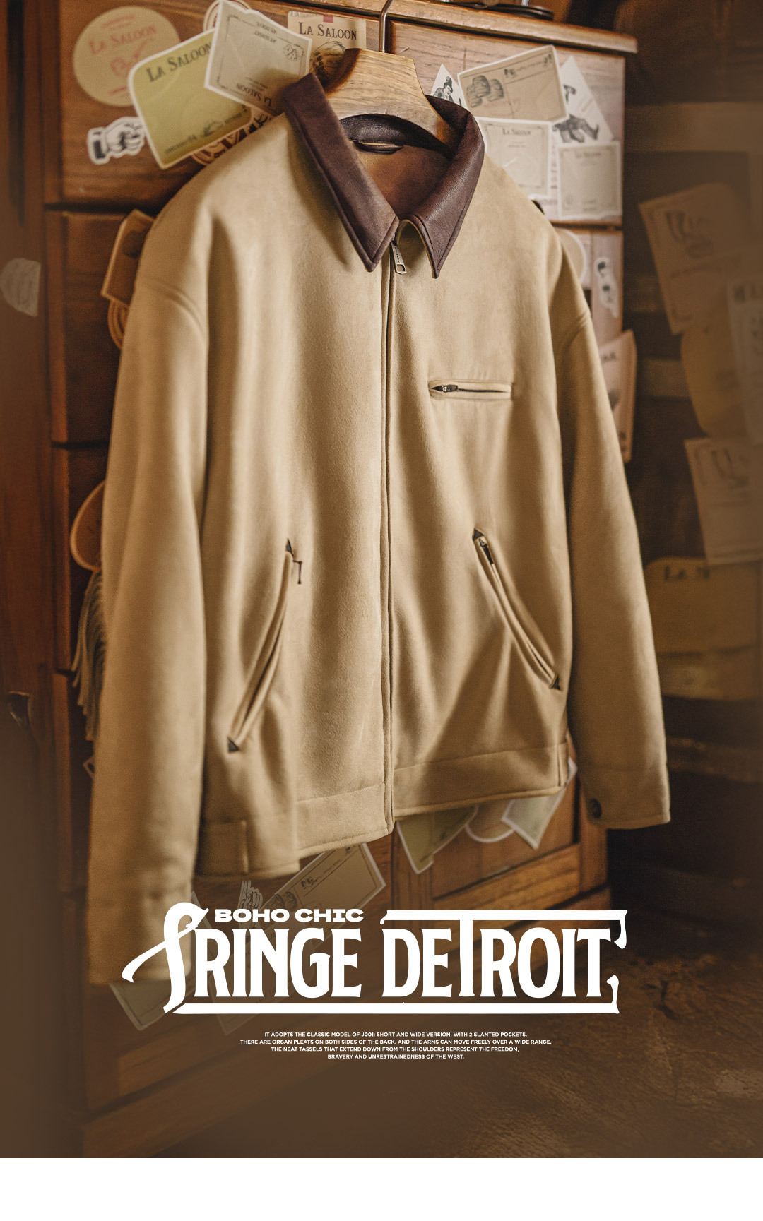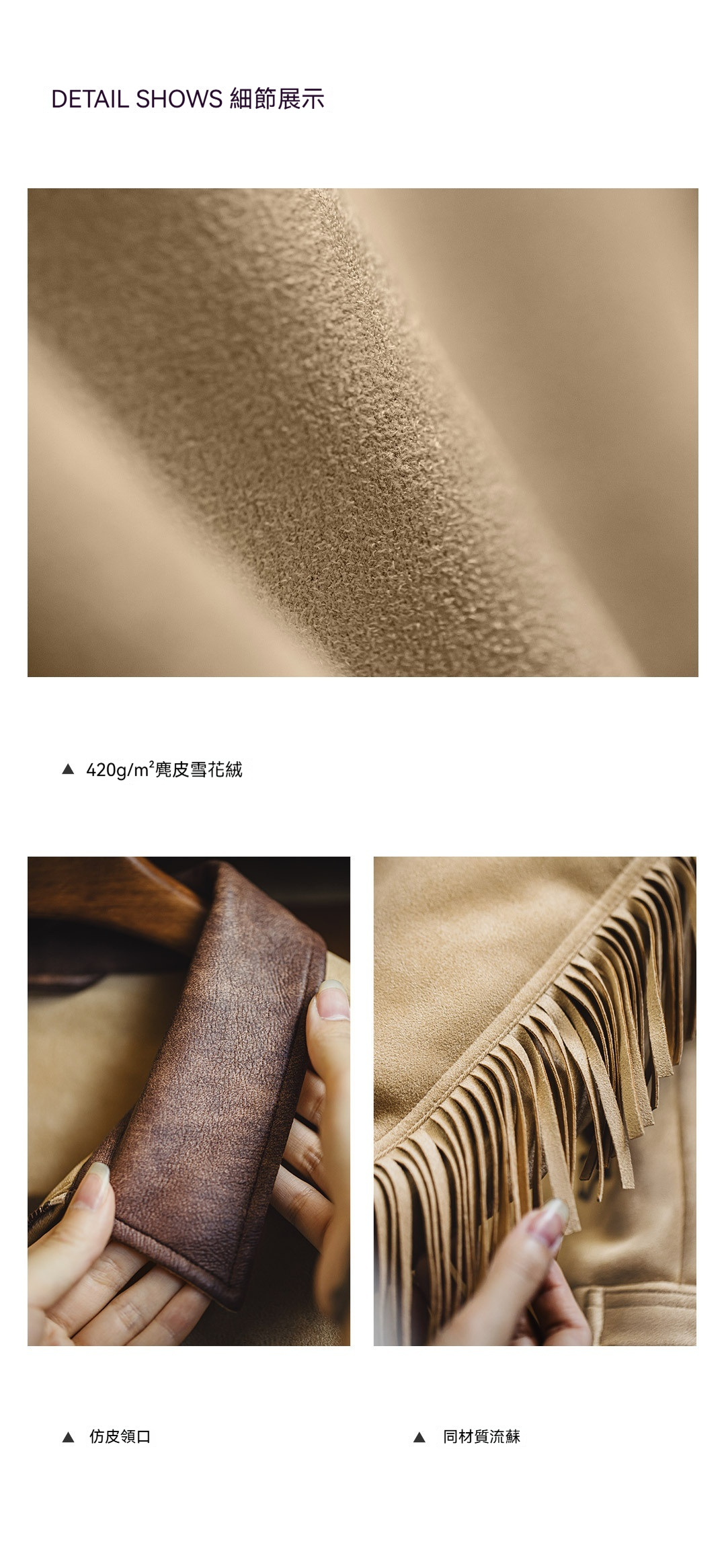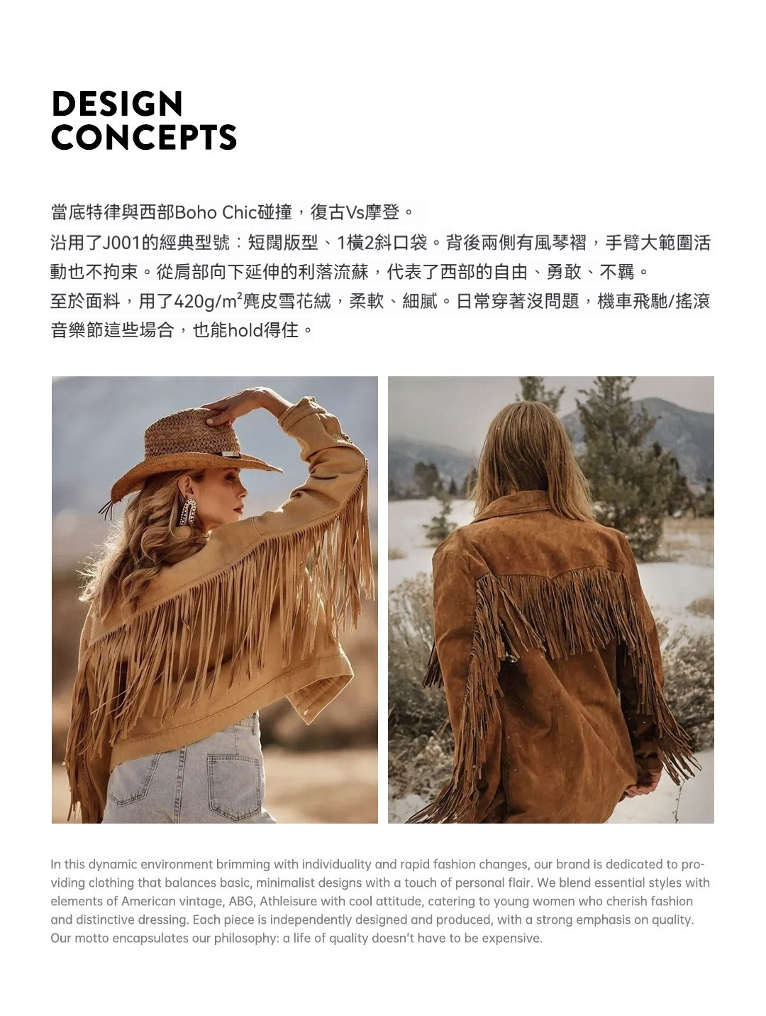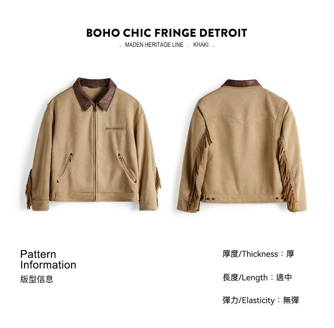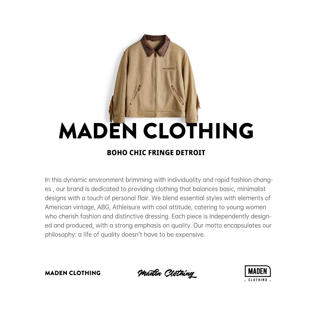 馬登女裝 巴恩風卡其撞色翻領絨面麂皮流蘇底特律工裝夾克外套女士秋冬
