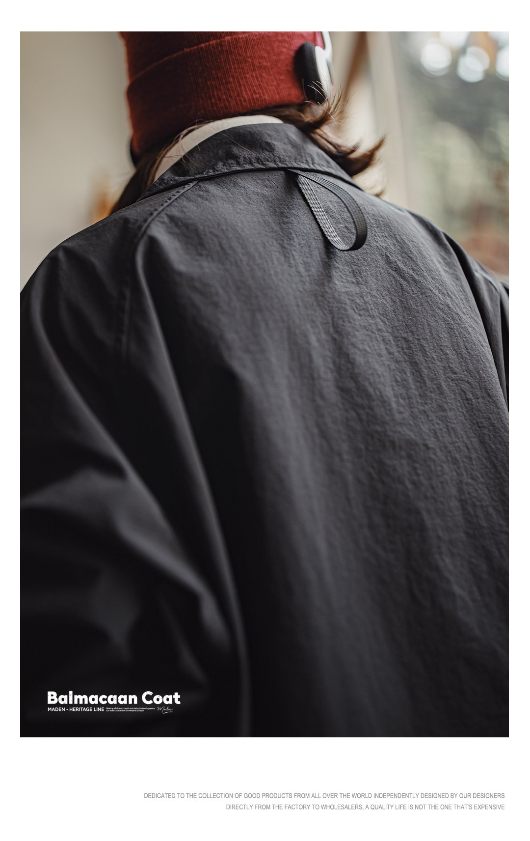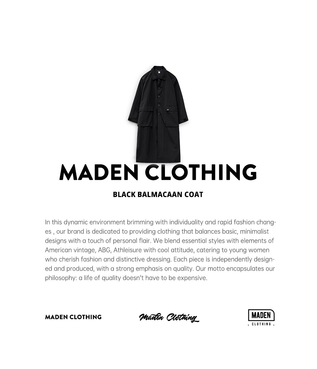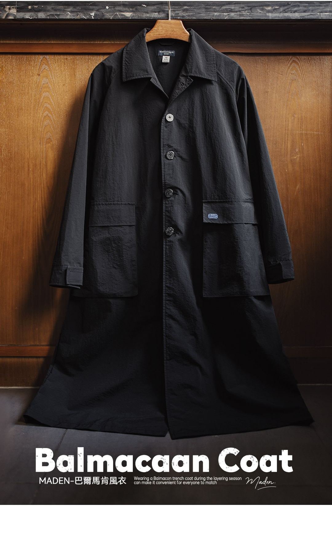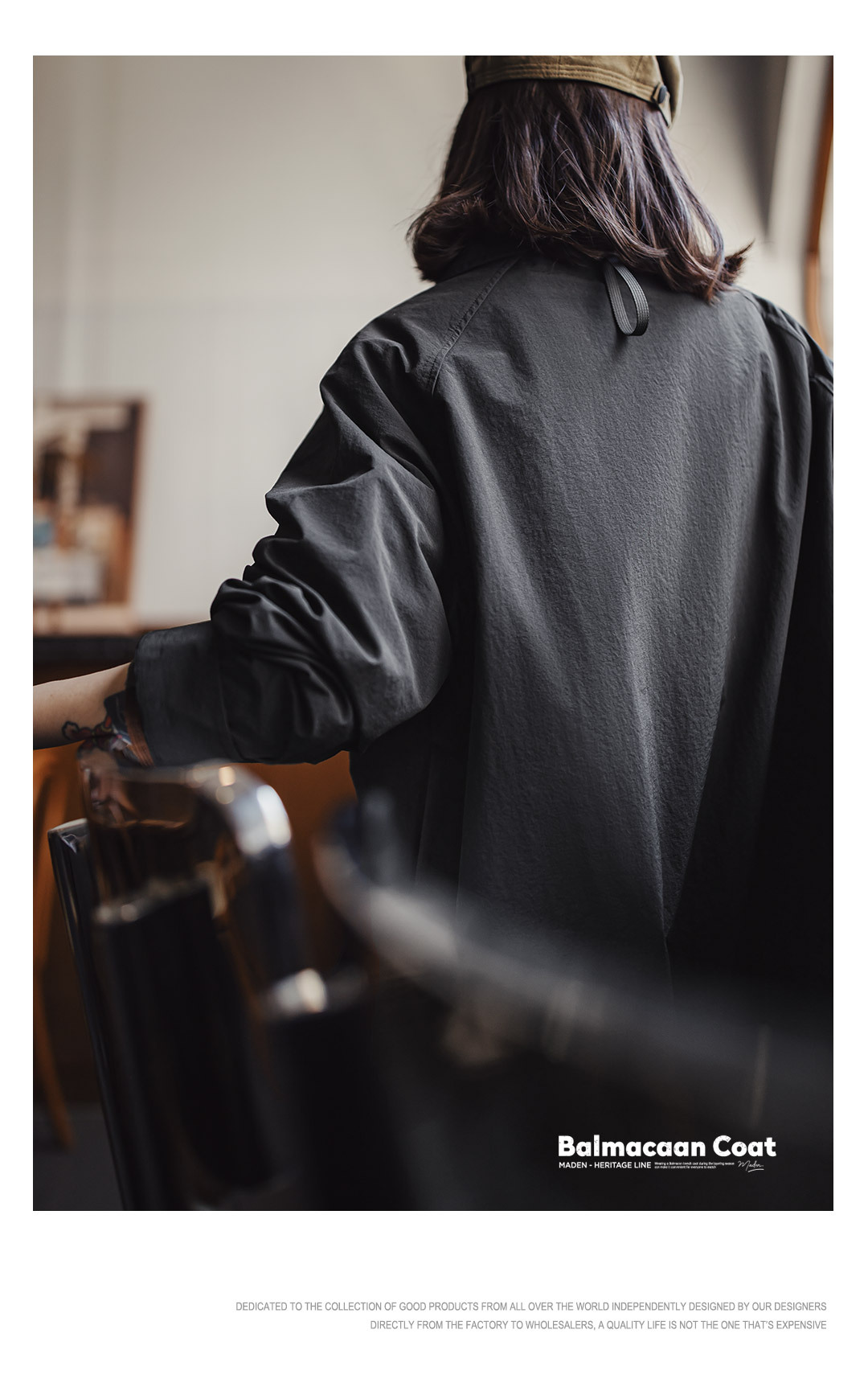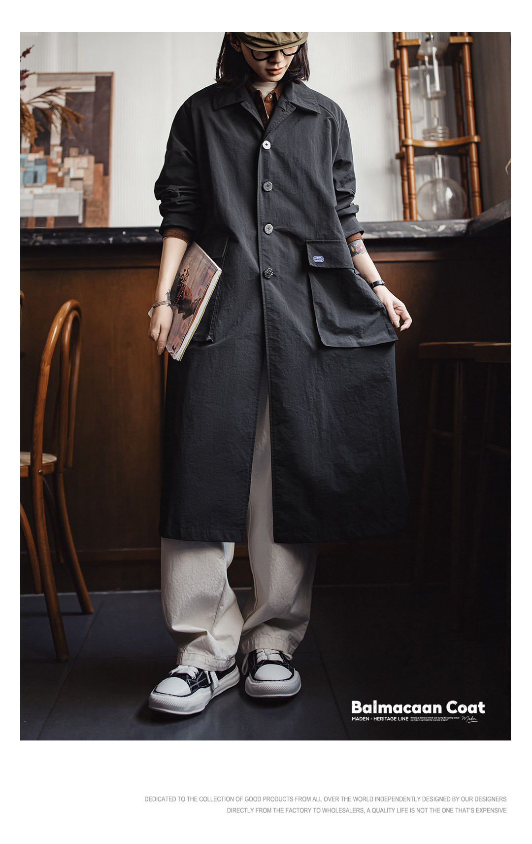 馬登女裝 黑色翻領寬鬆中長薄款大衣高個子休閒工裝風衣外套女士早秋季