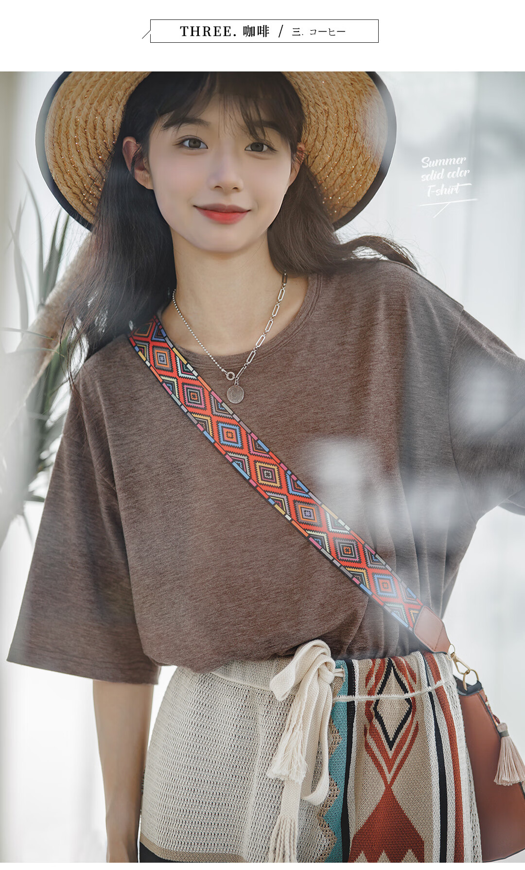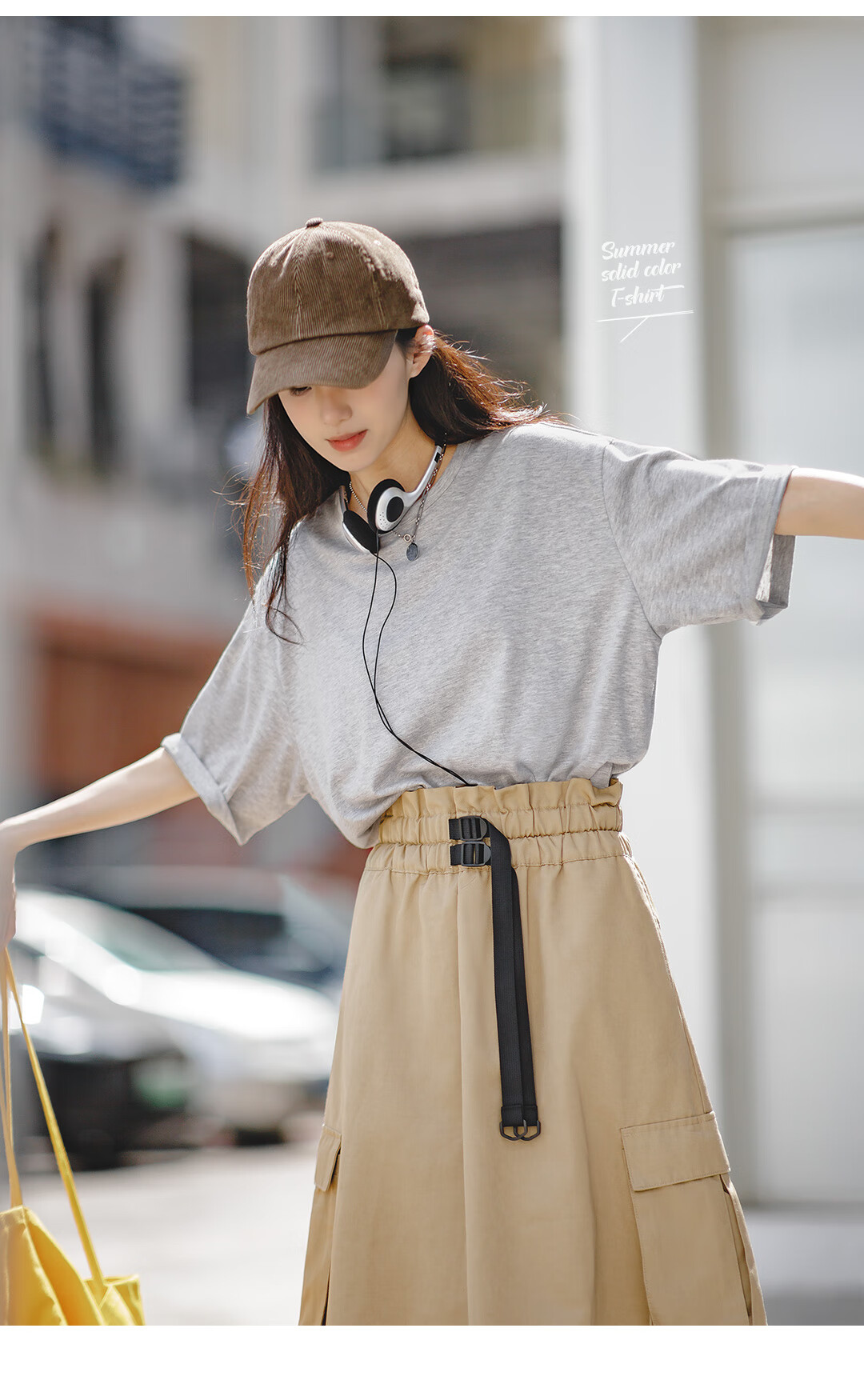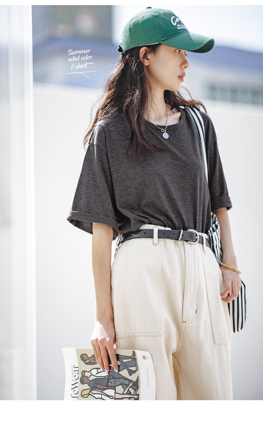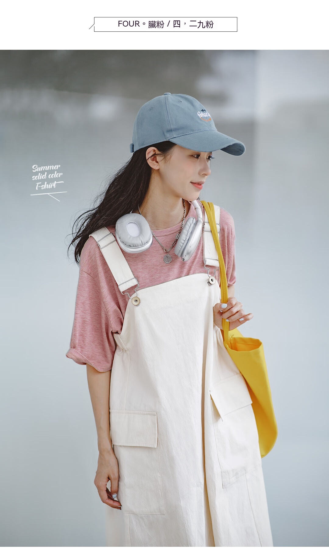 馬登女裝 美式休閒純色T恤寬鬆基礎款落肩短袖透氣上衣
