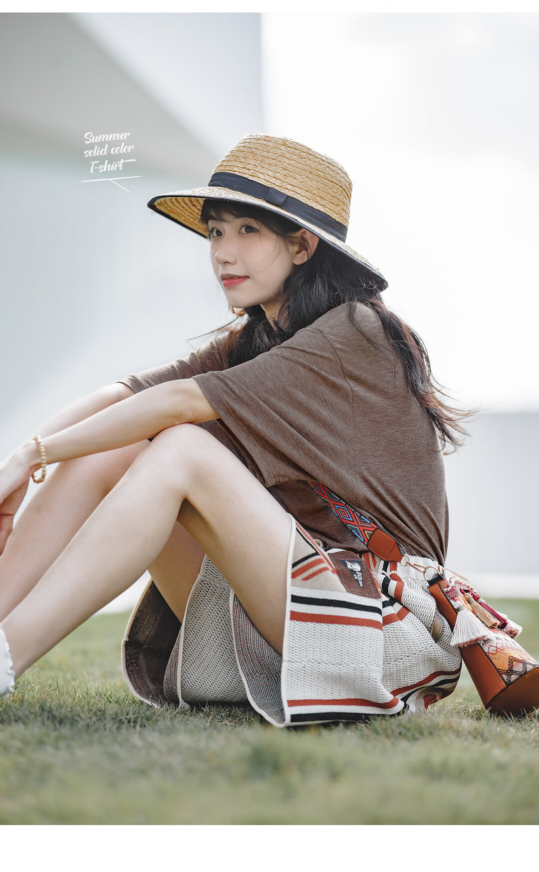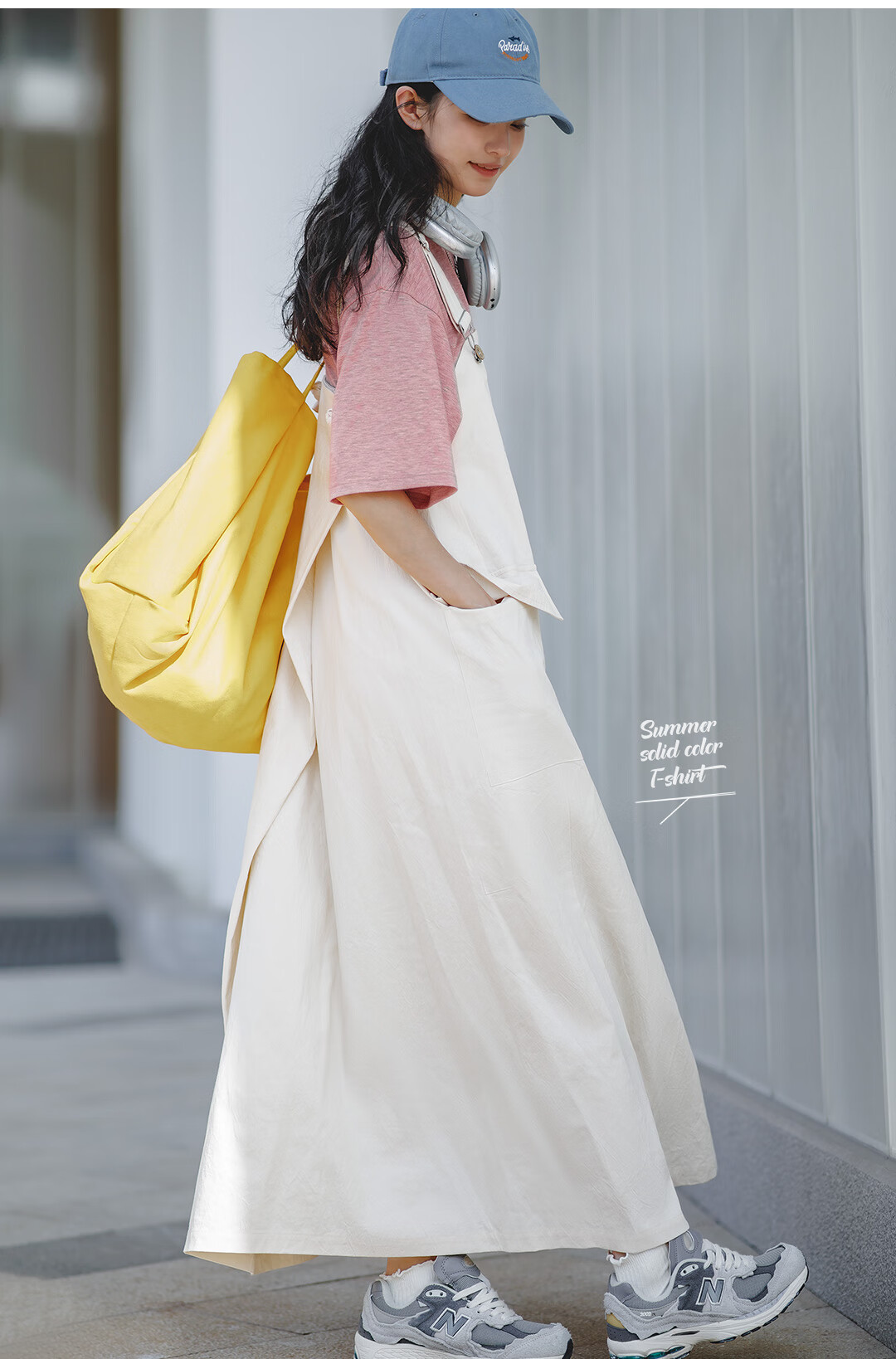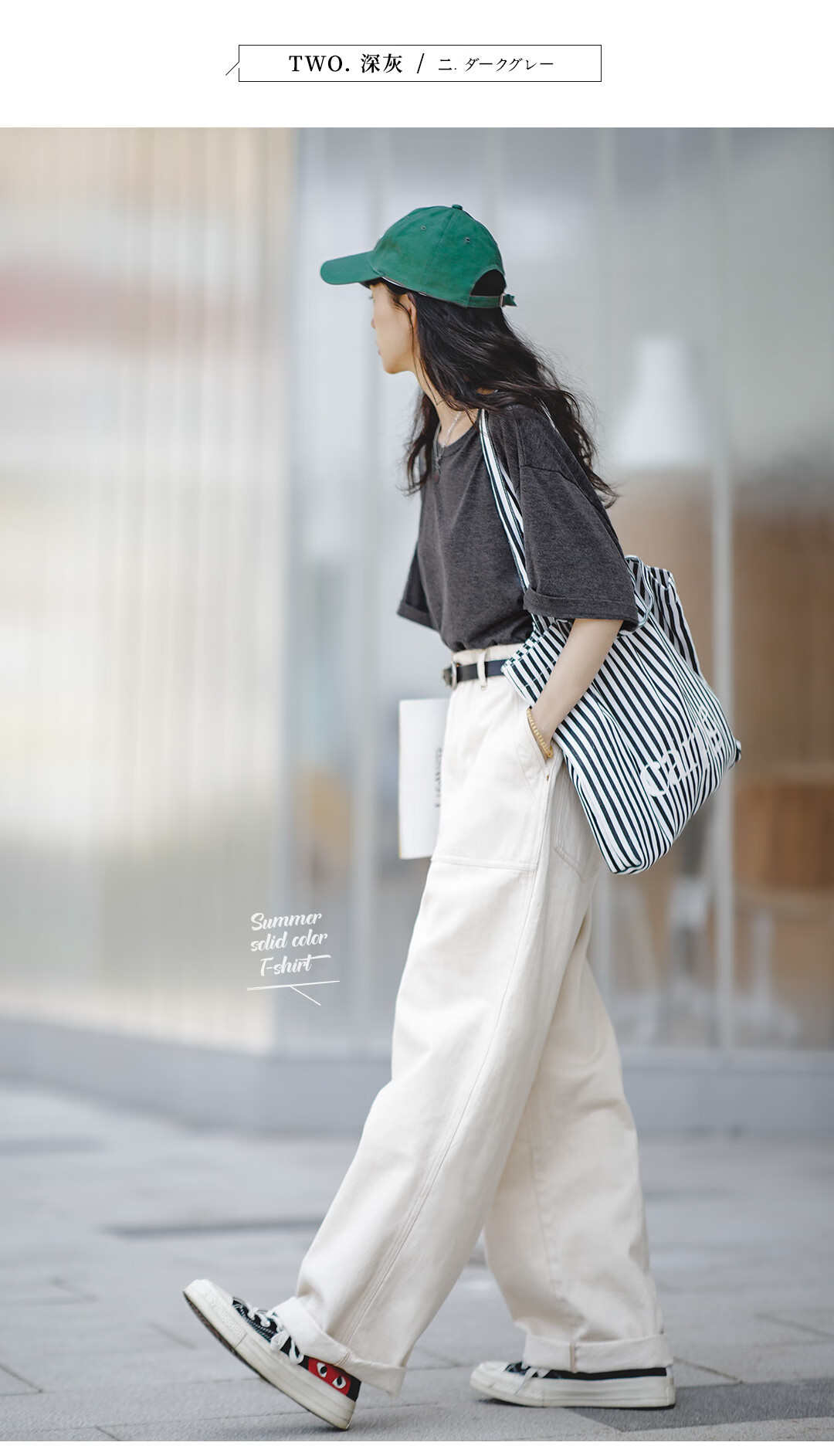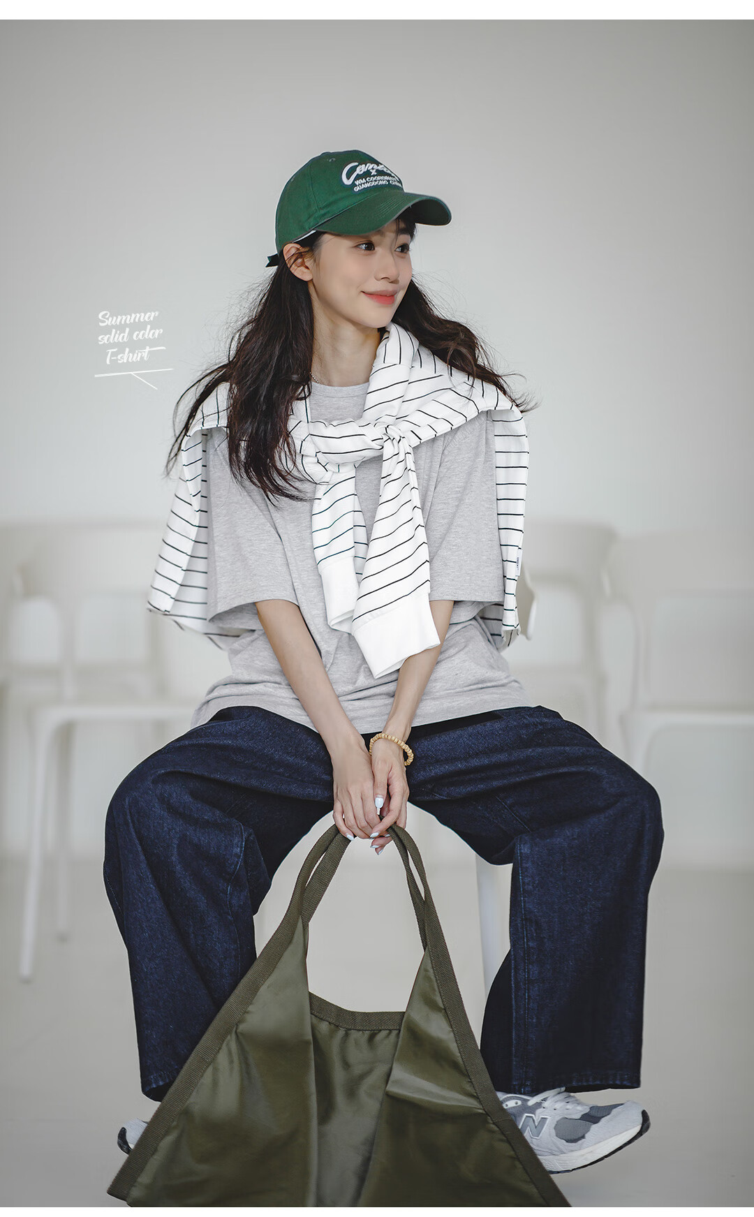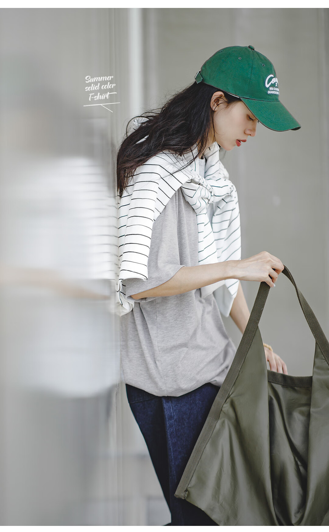 馬登女裝 美式休閒純色T恤寬鬆基礎款落肩短袖透氣上衣
