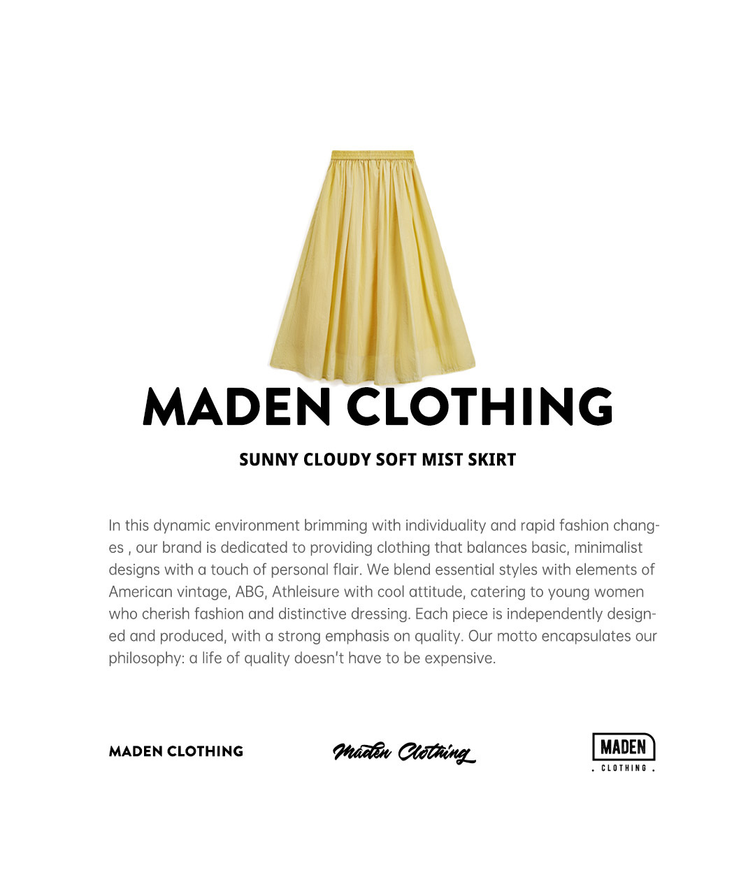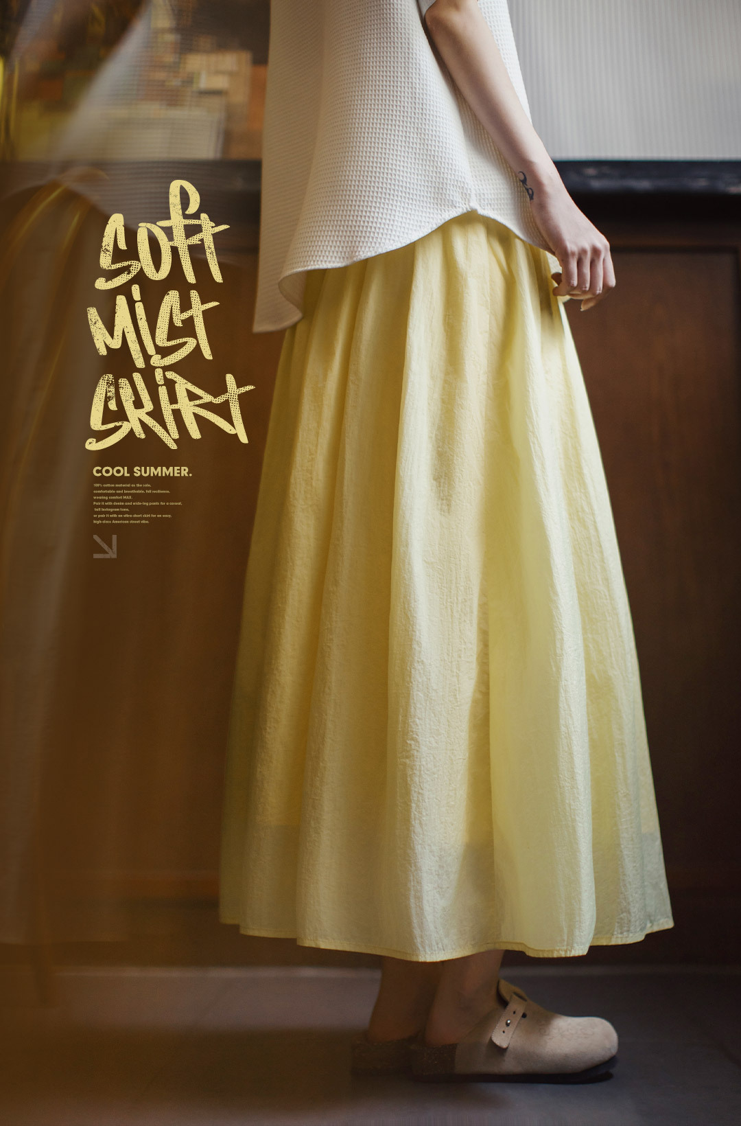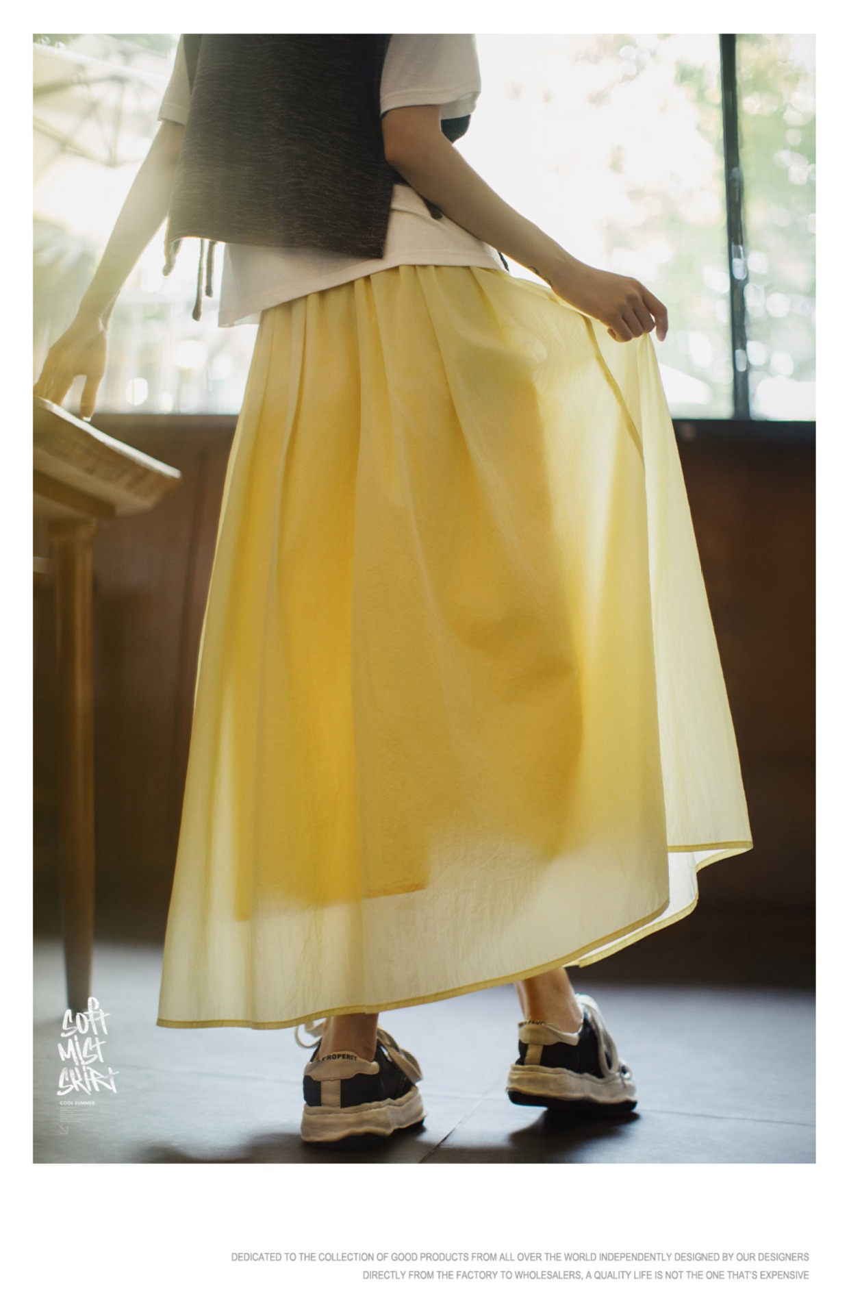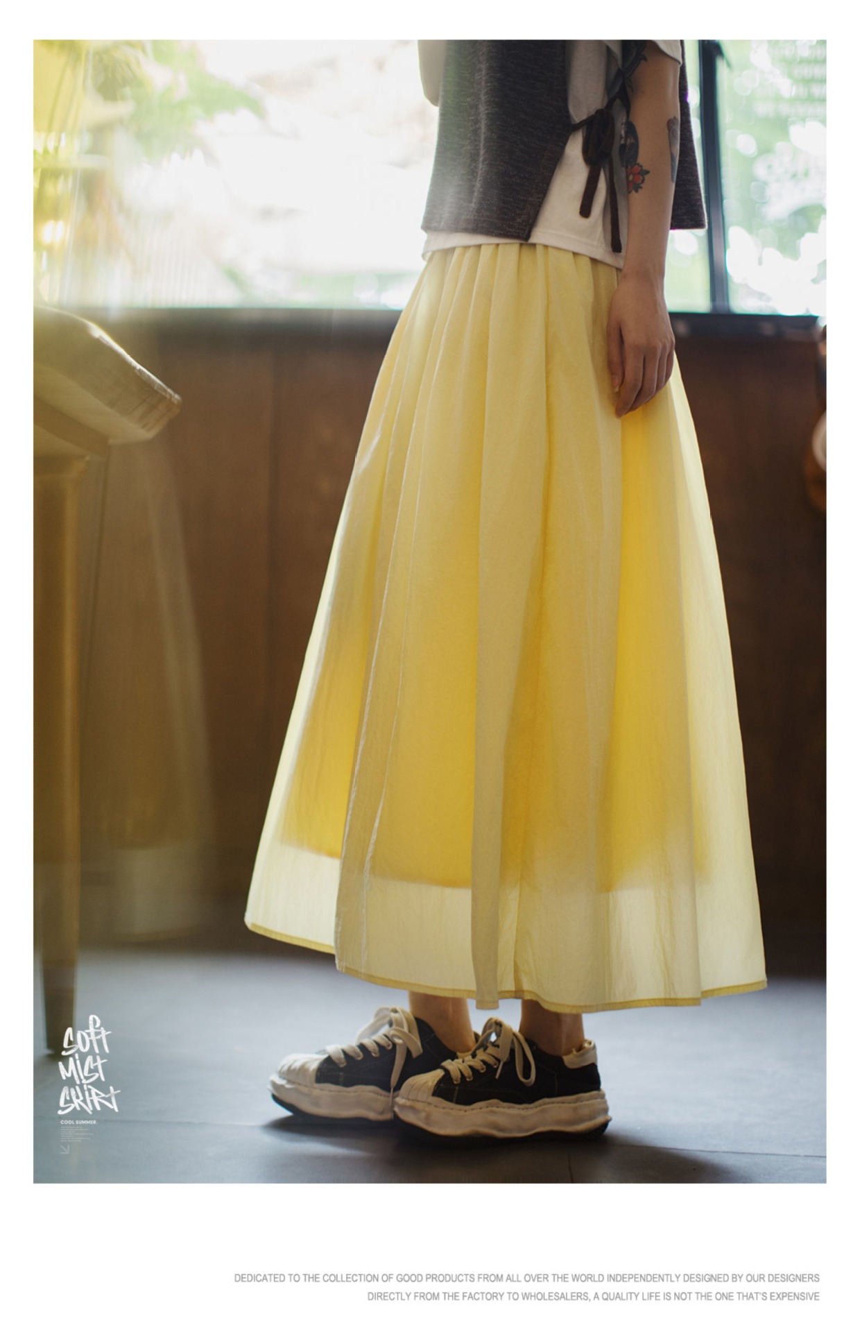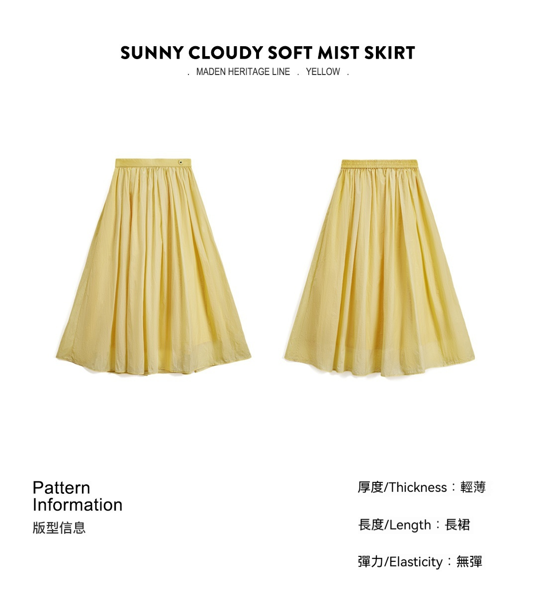 馬登女裝 黃色鬆緊腰輕薄透氣長款網紗大擺半身裙A字百褶傘裙子女夏