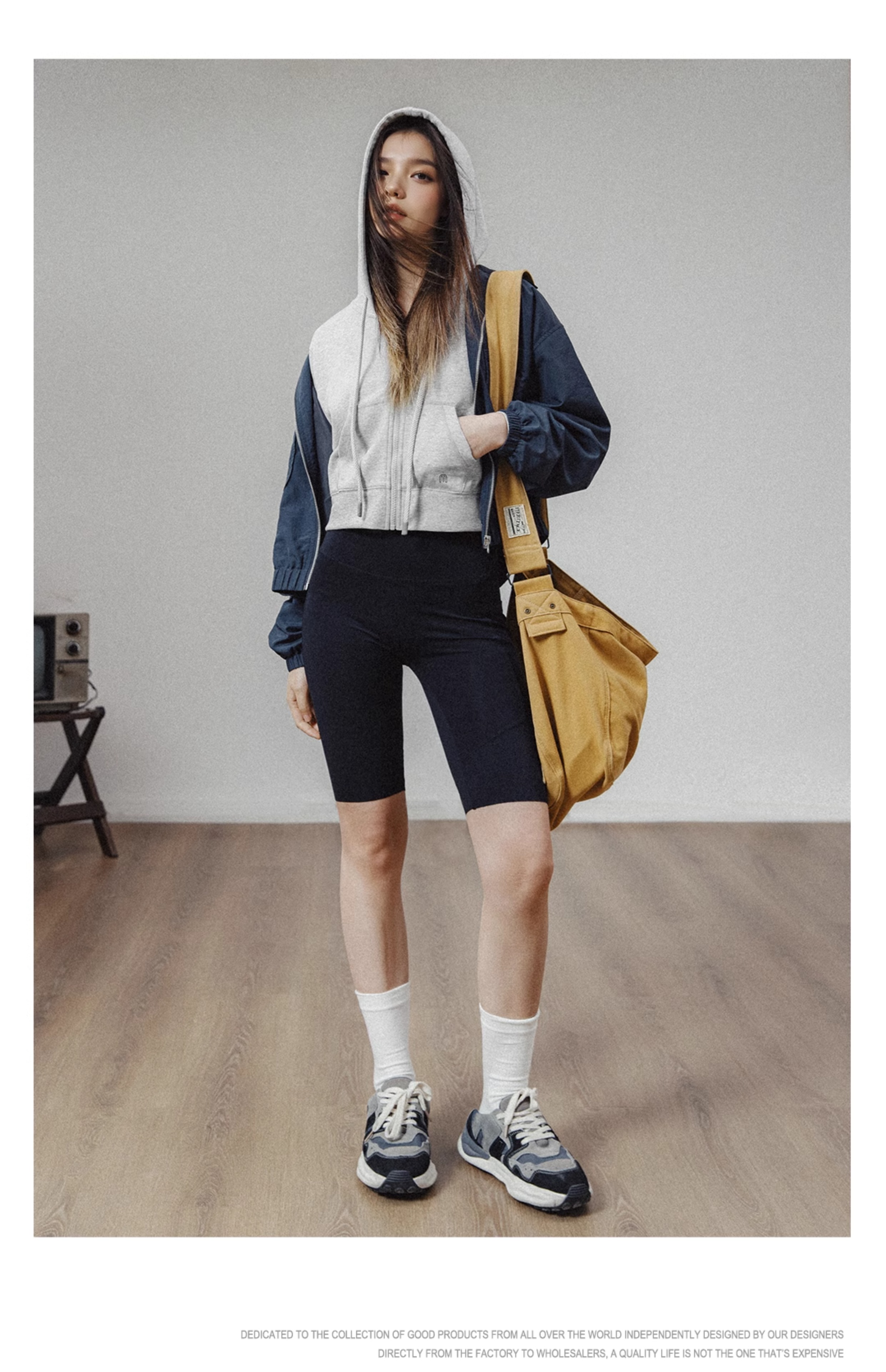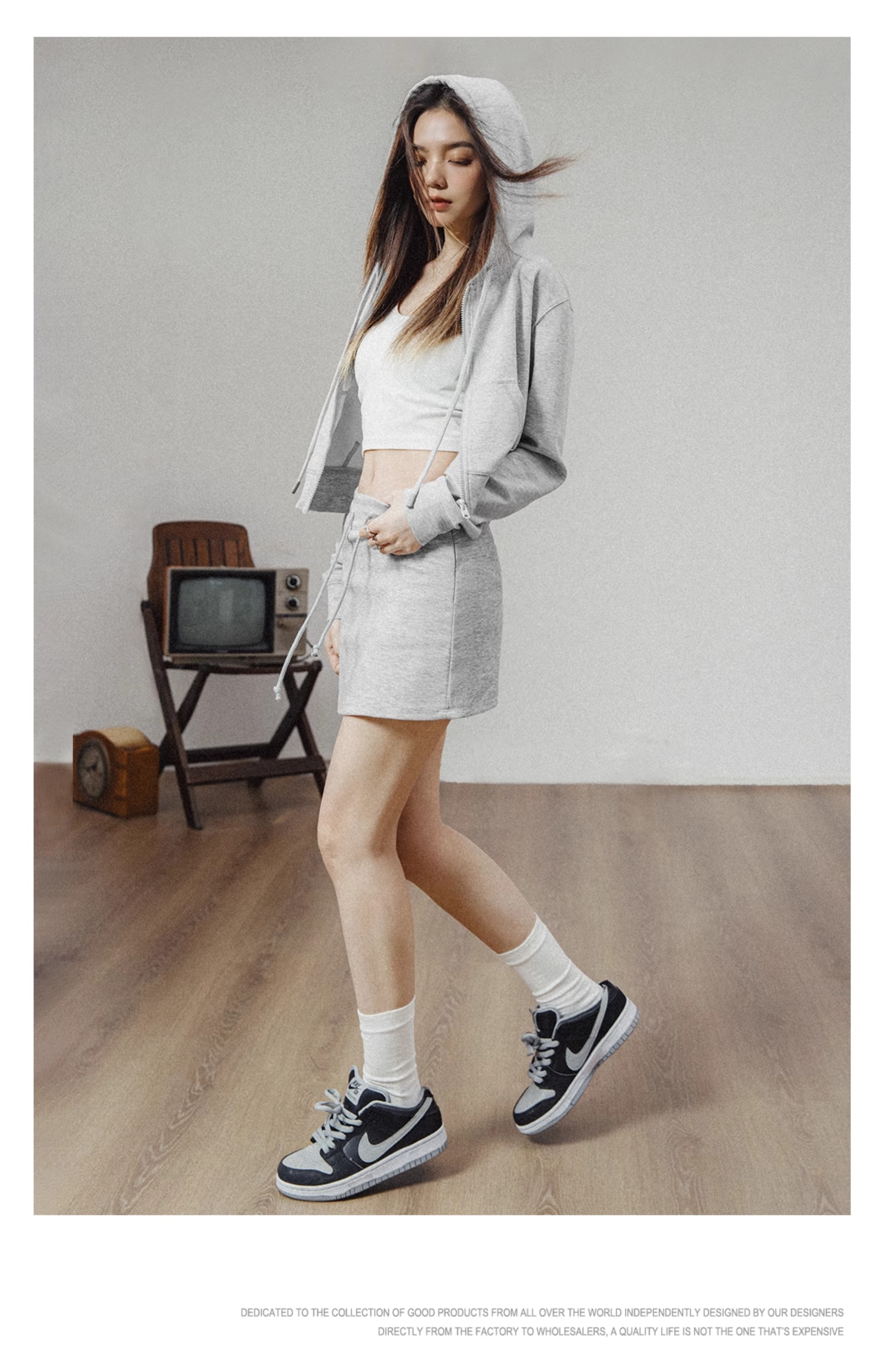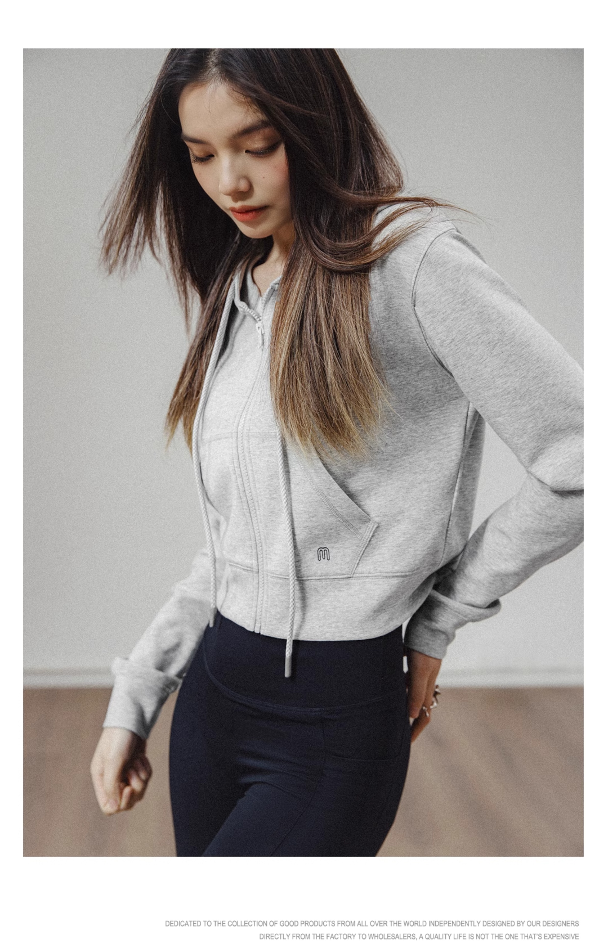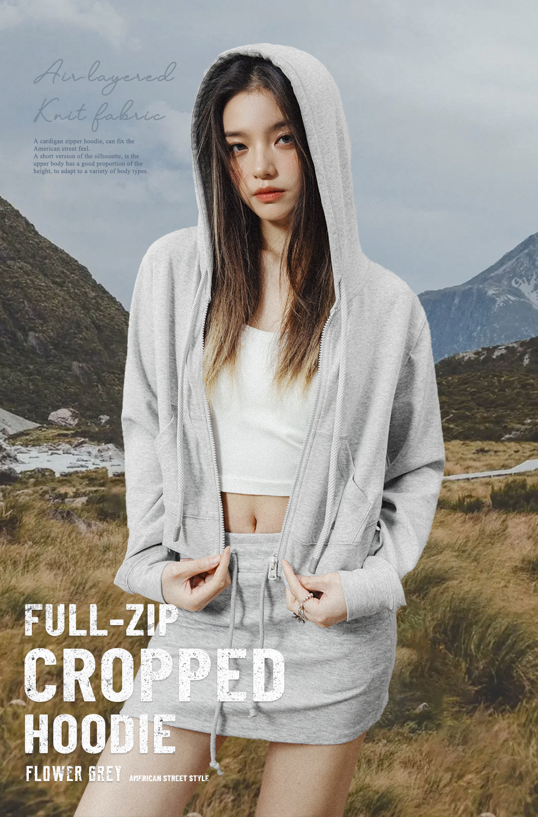 馬登女裝 美式高腰口袋短衛衣修身連帽拉鍊衛衣開衫運動外套