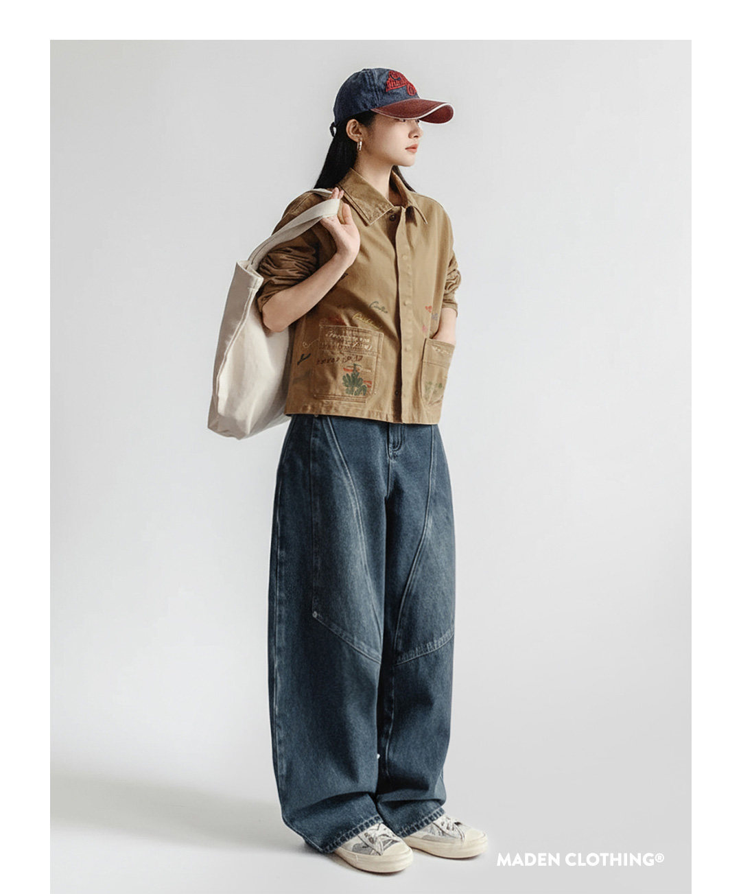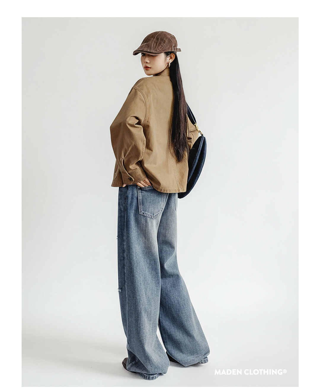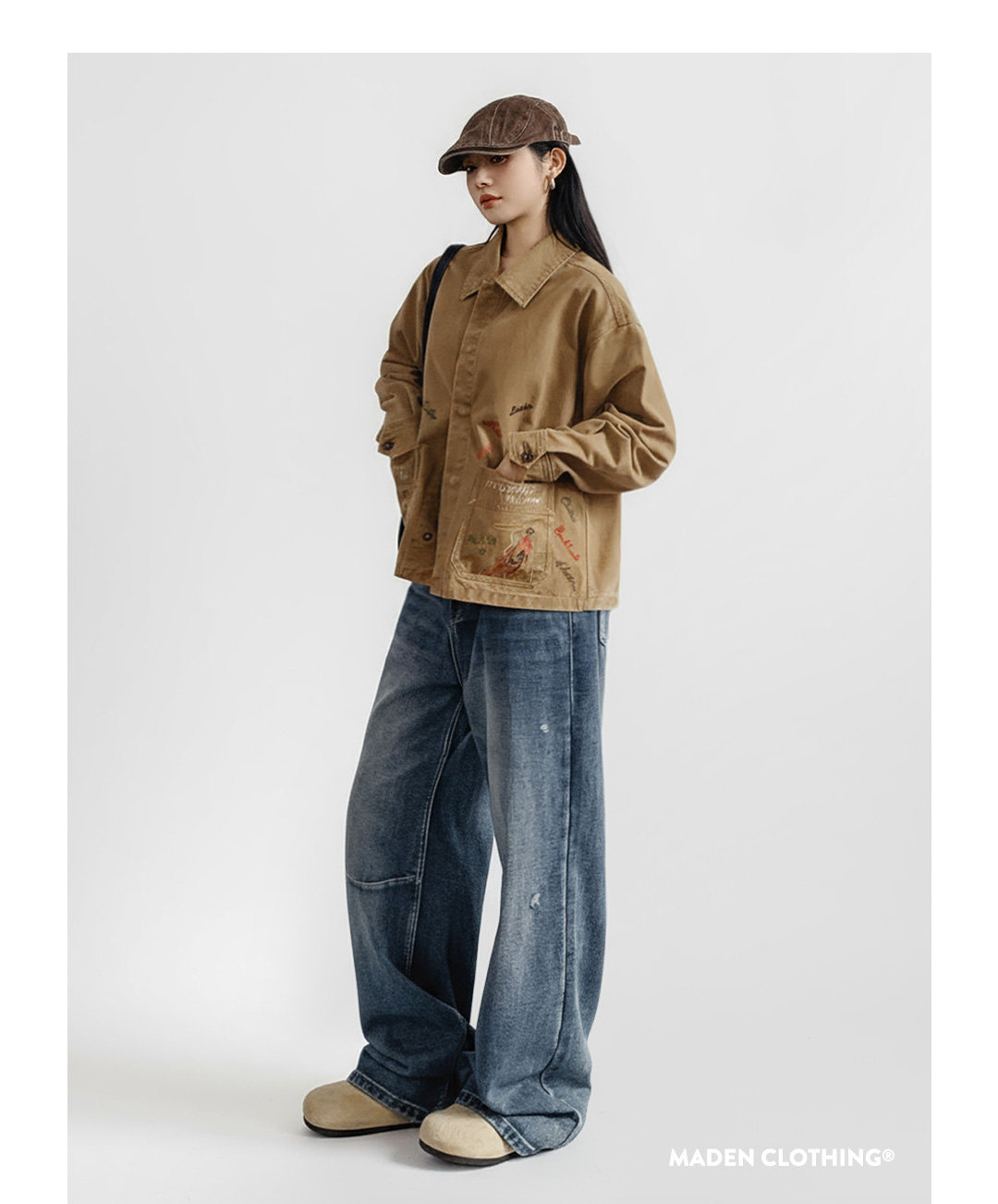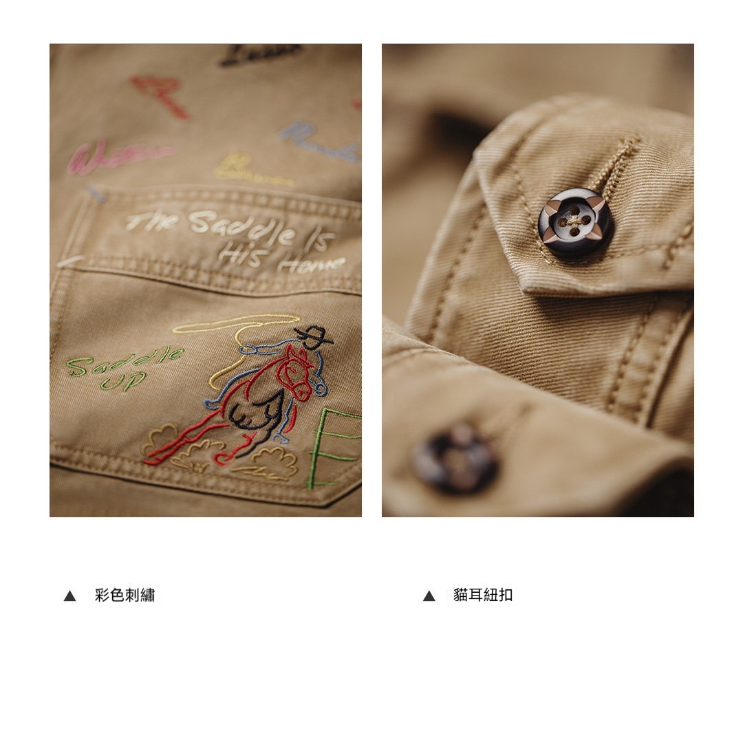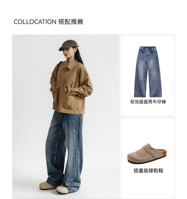 馬登女裝 卡其色巴恩風復古工裝夾克翻領全純棉做舊外套上衣女士春