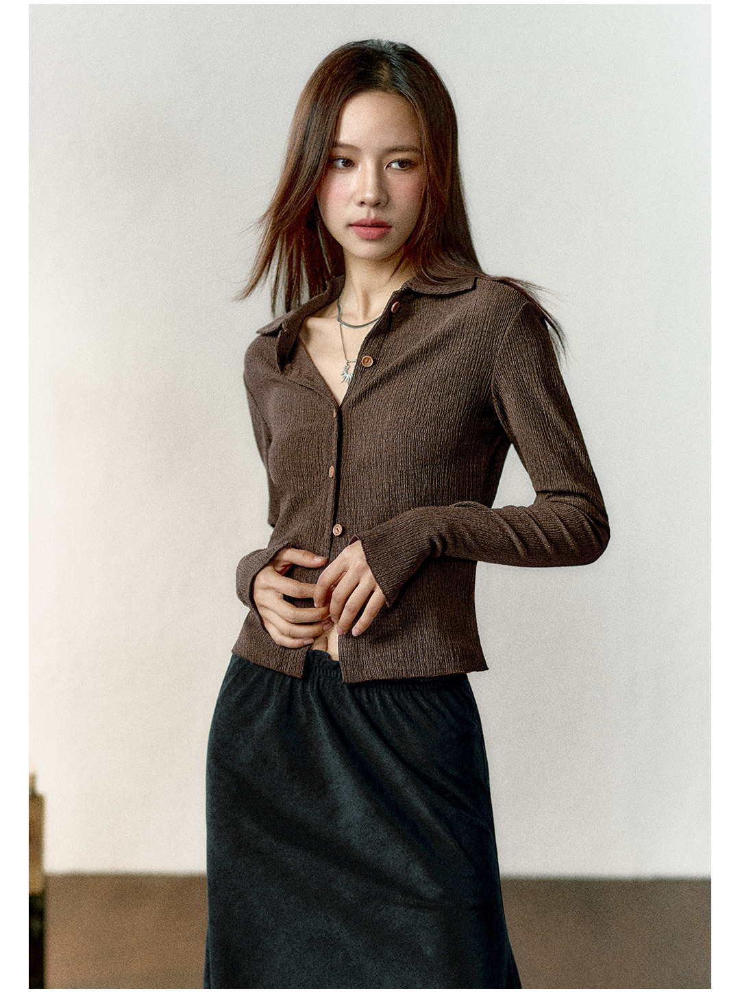 馬登女裝 針織短款外穿開衫美式bm風長袖肌理感彈力修身上衣