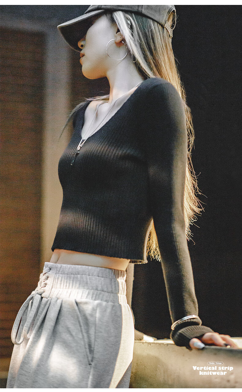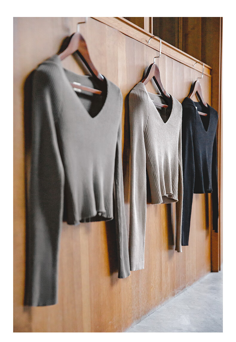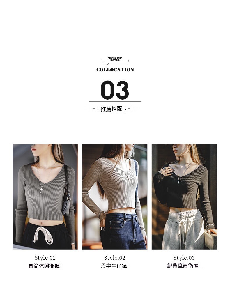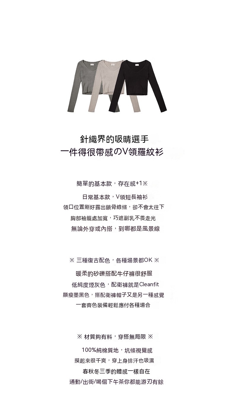 馬登女裝 美式復古針織衫純棉內搭外穿V領短款打底衫修身上衣
