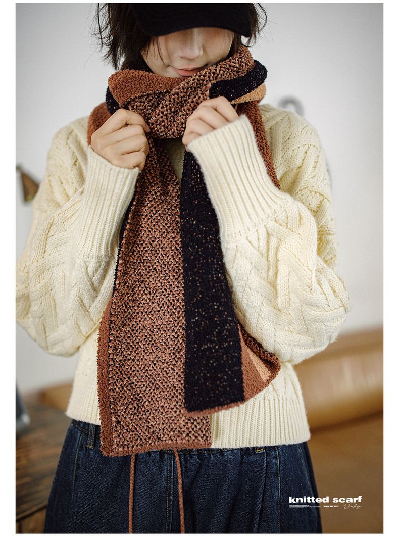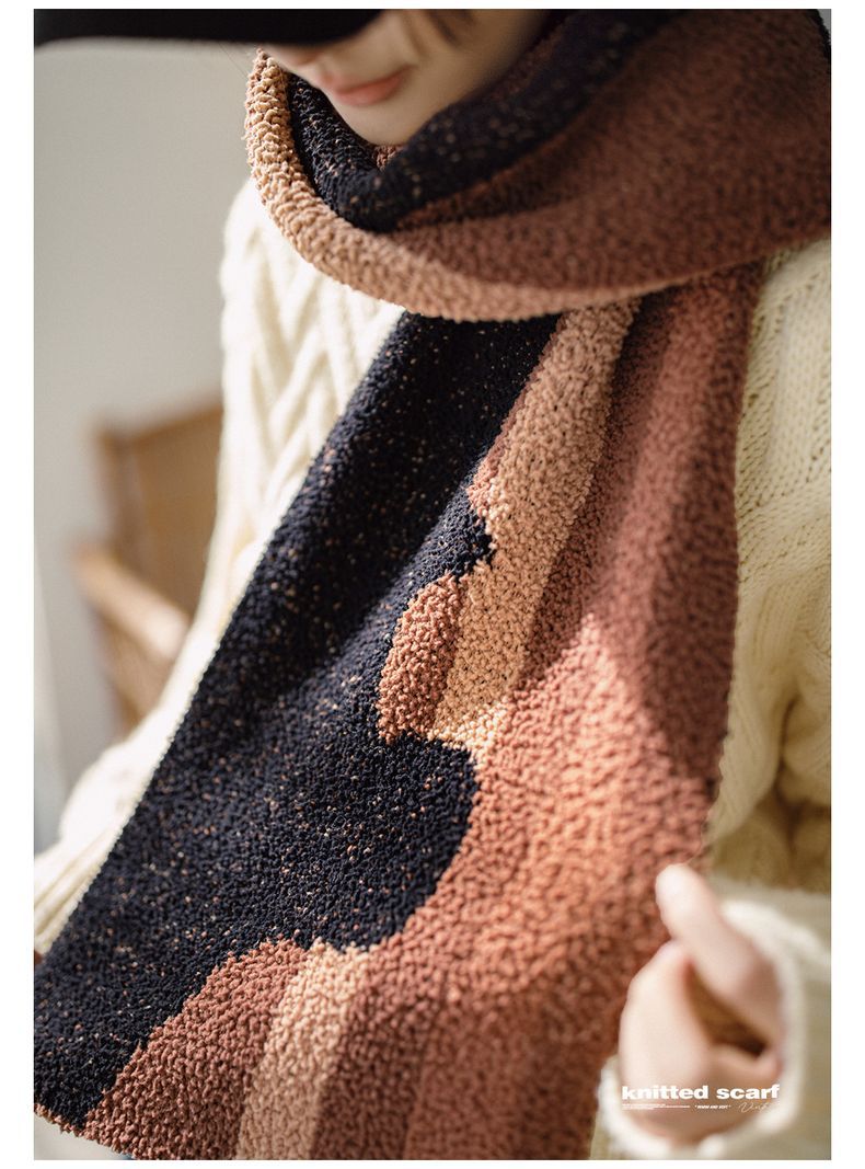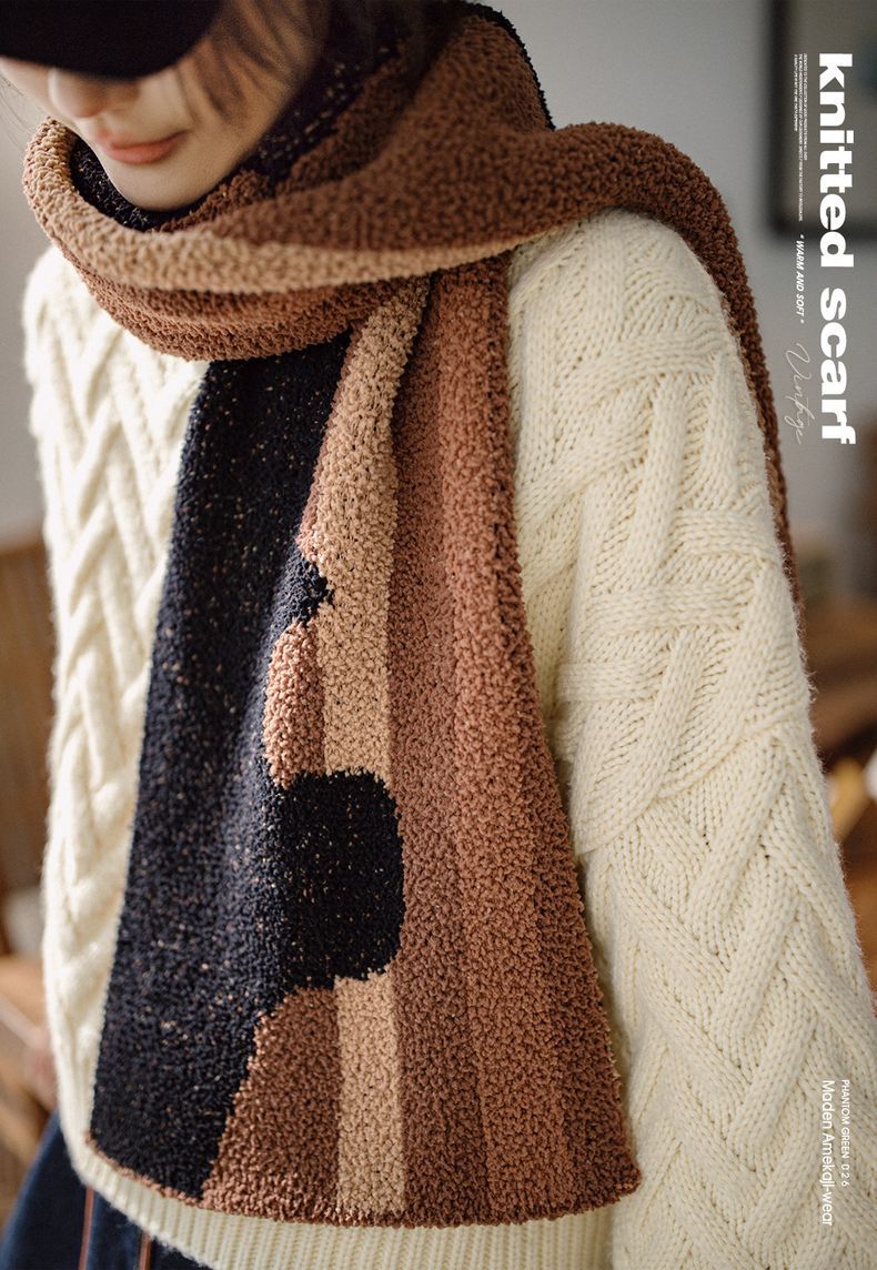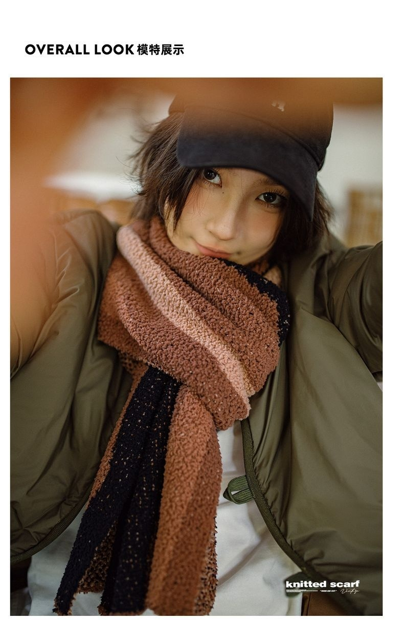 馬登女裝 雅丹風針織毛線圍巾加厚保暖防寒護頸百搭圍脖冬