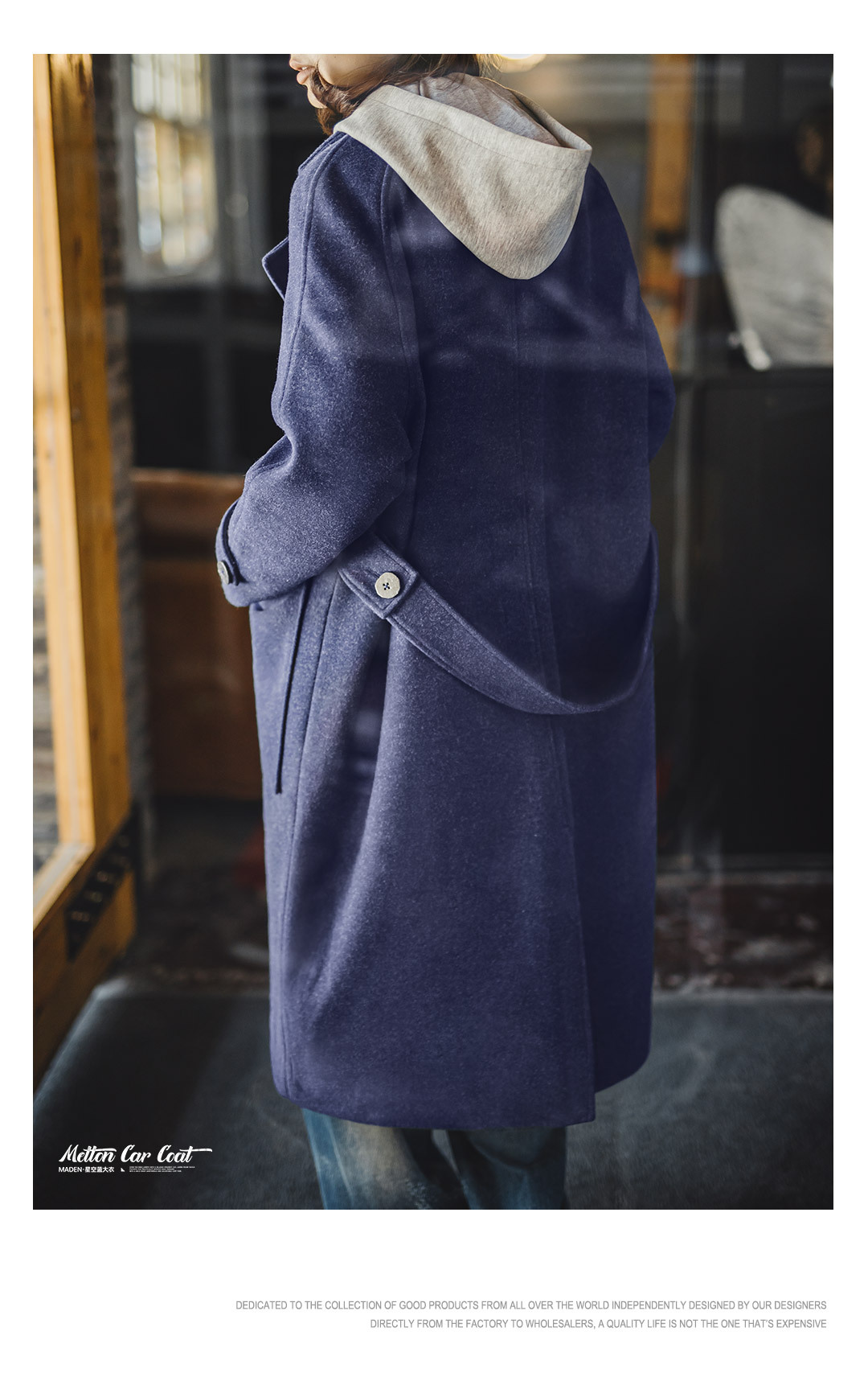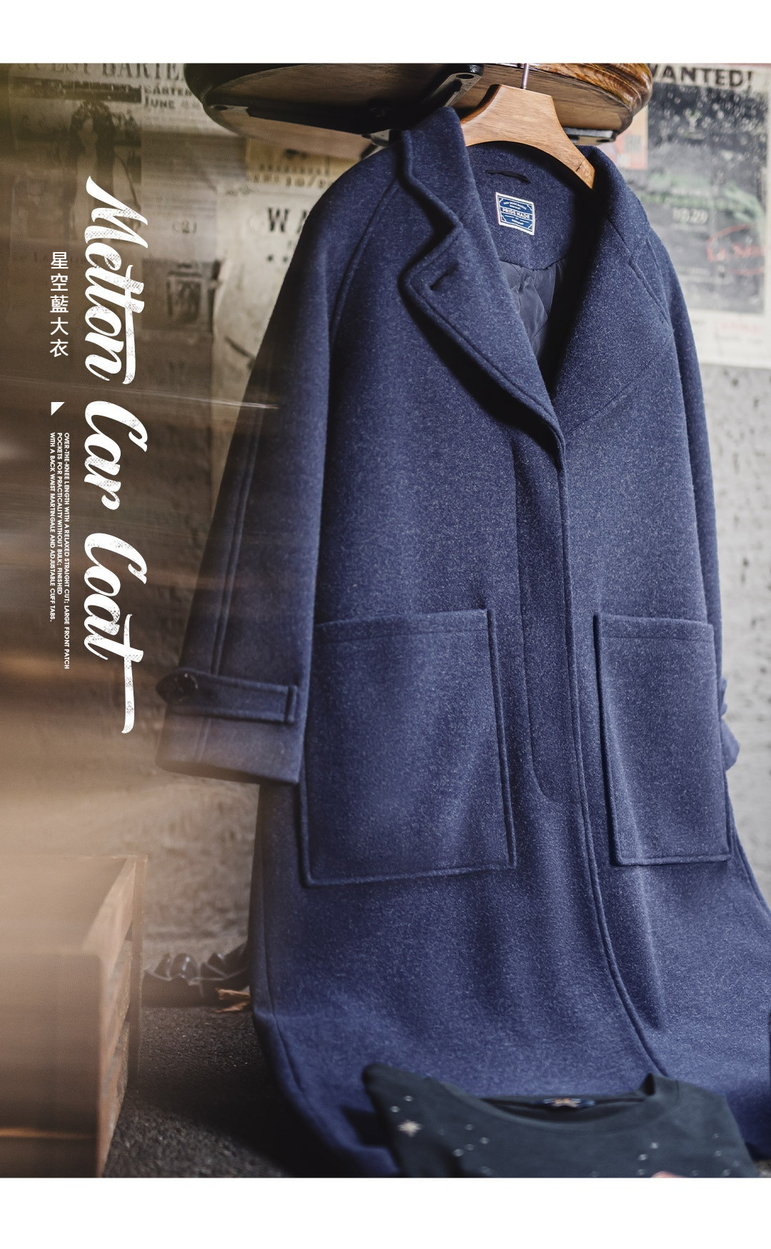 馬登女裝 單排扣翻領中長款收腰加厚保暖毛呢呢子大衣外套女士秋冬
