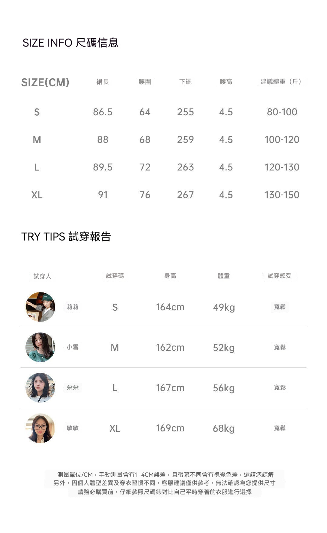 裙長: 半身長裙