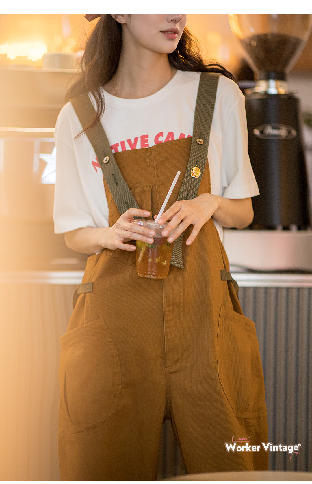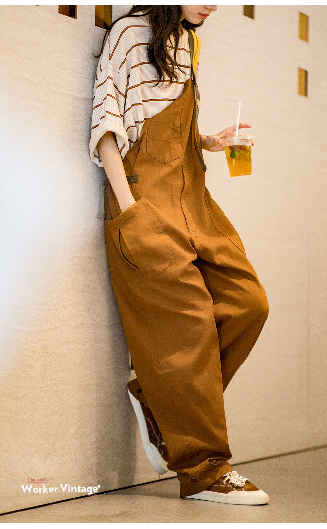 馬登女裝 美式復古减齡寬鬆背帶褲大口袋直筒吊帶連體工裝長褲