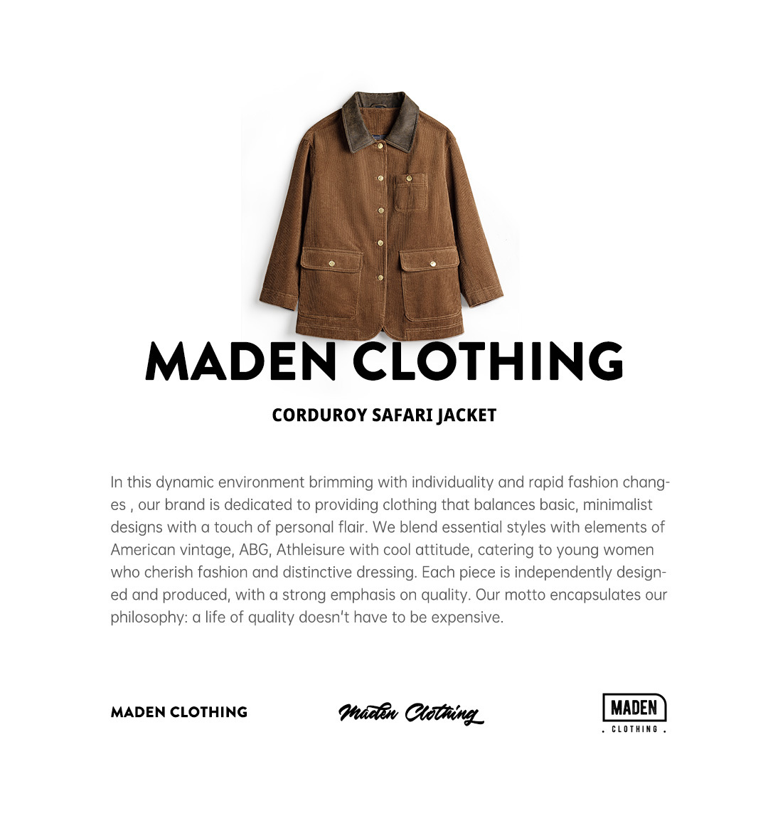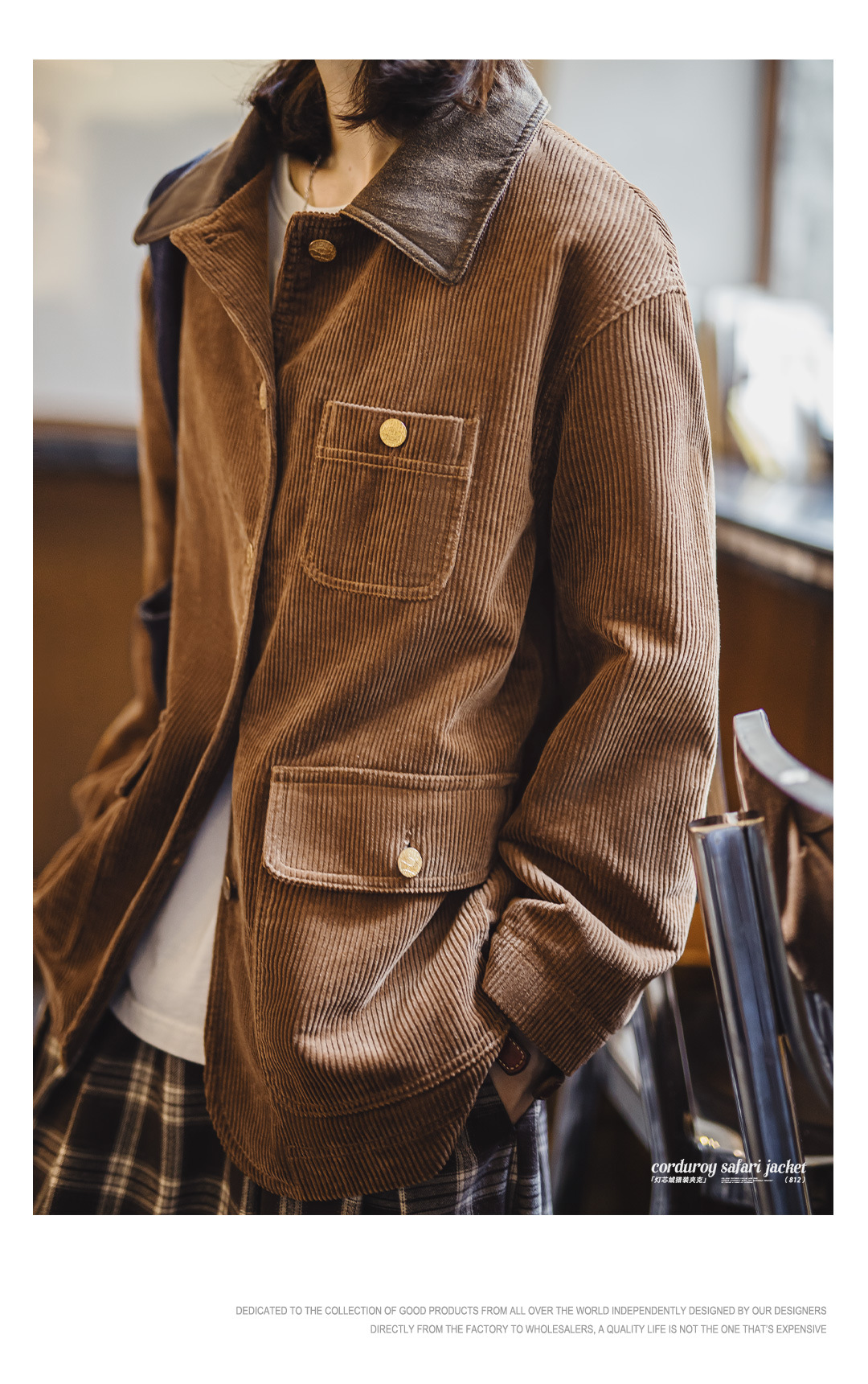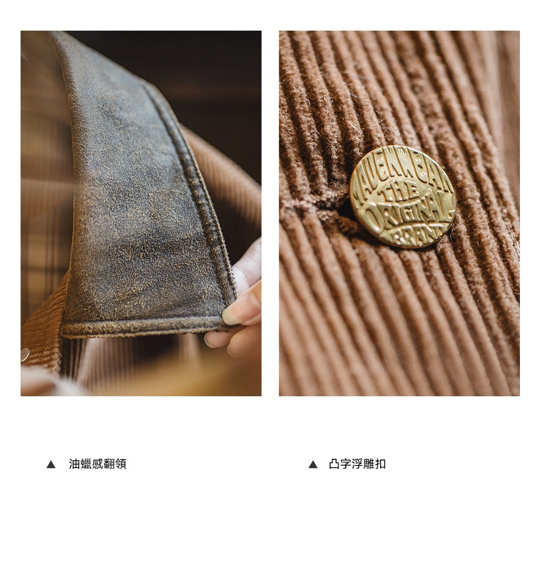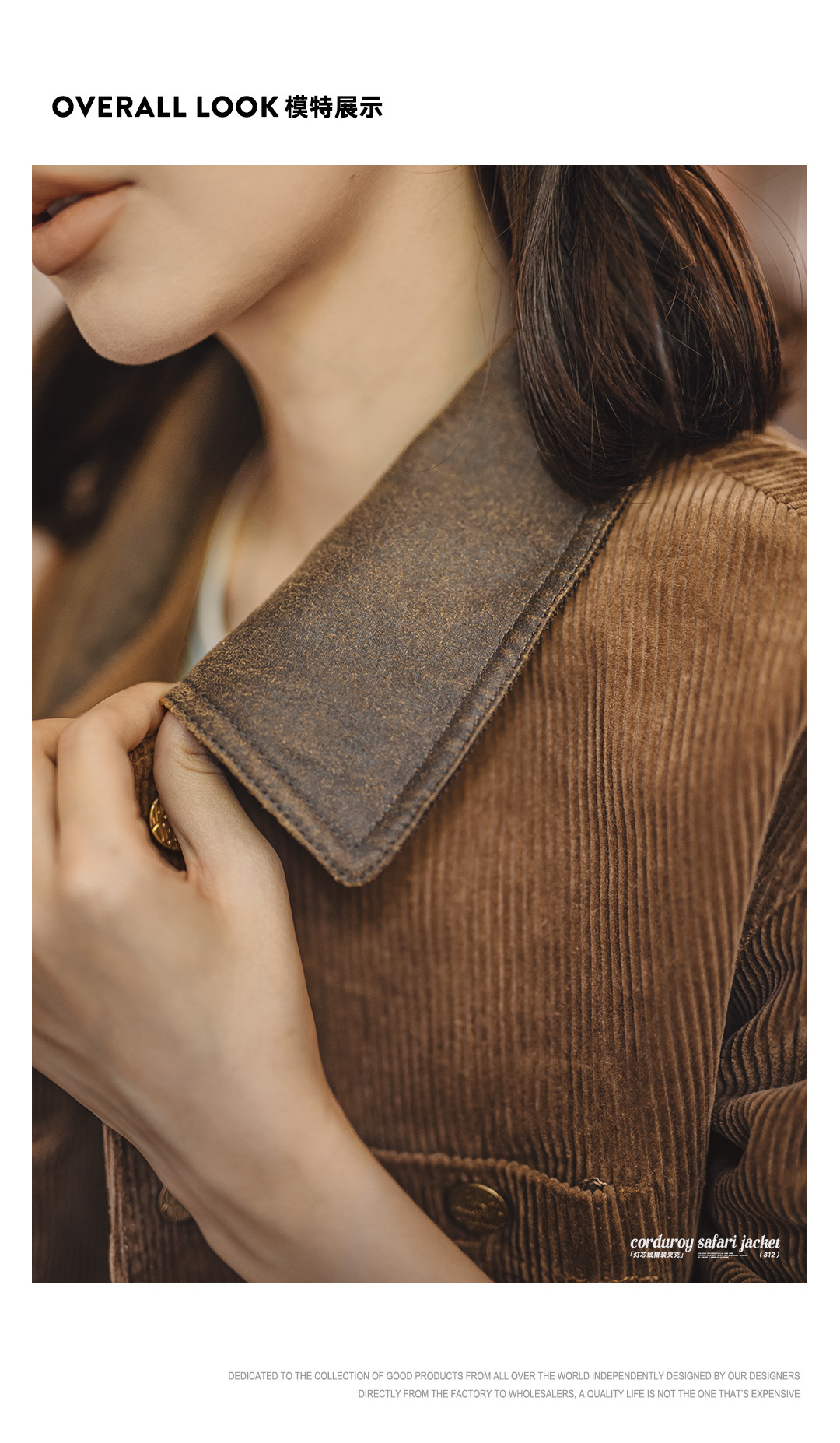 馬登女裝 復古美拉德撞色燈芯條絨麂皮翻領工裝獵裝夾克外套上衣女秋冬