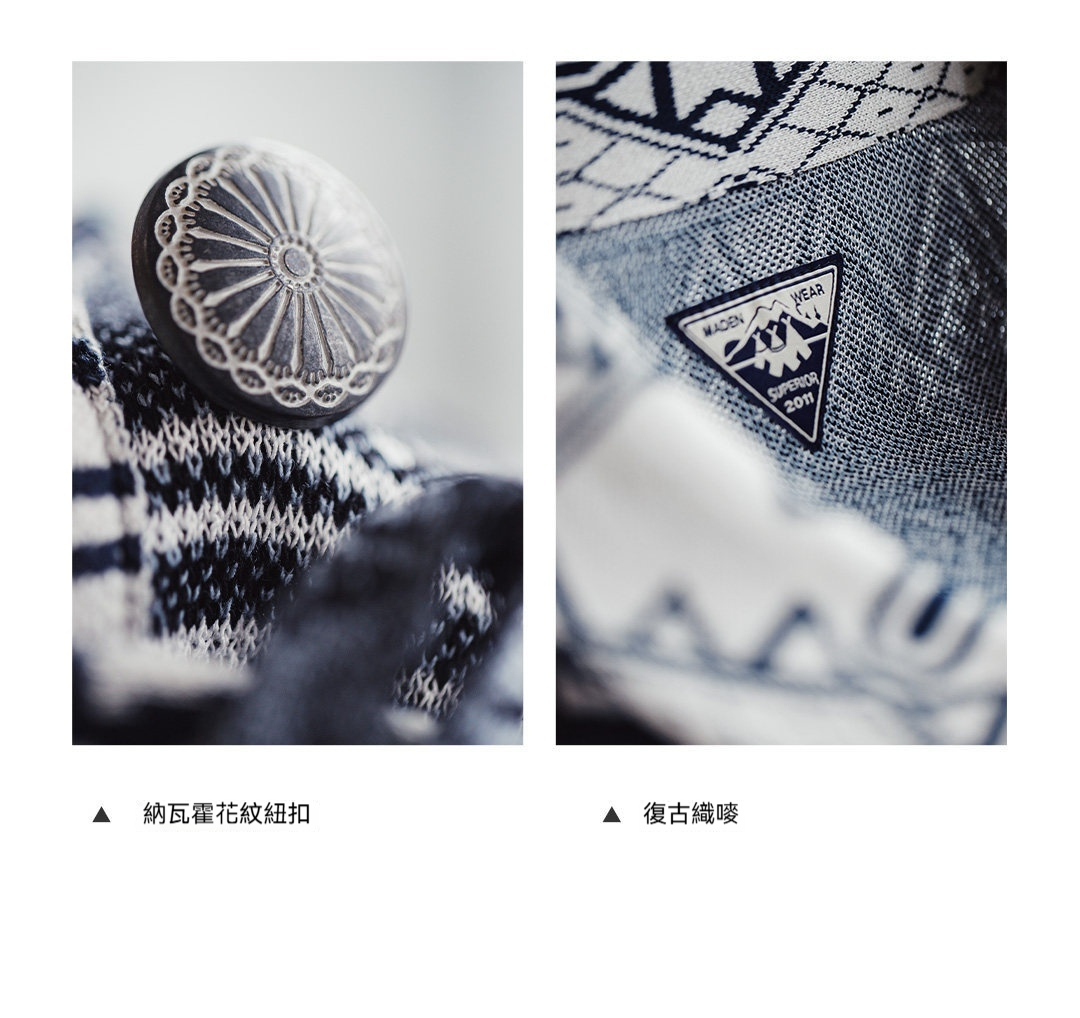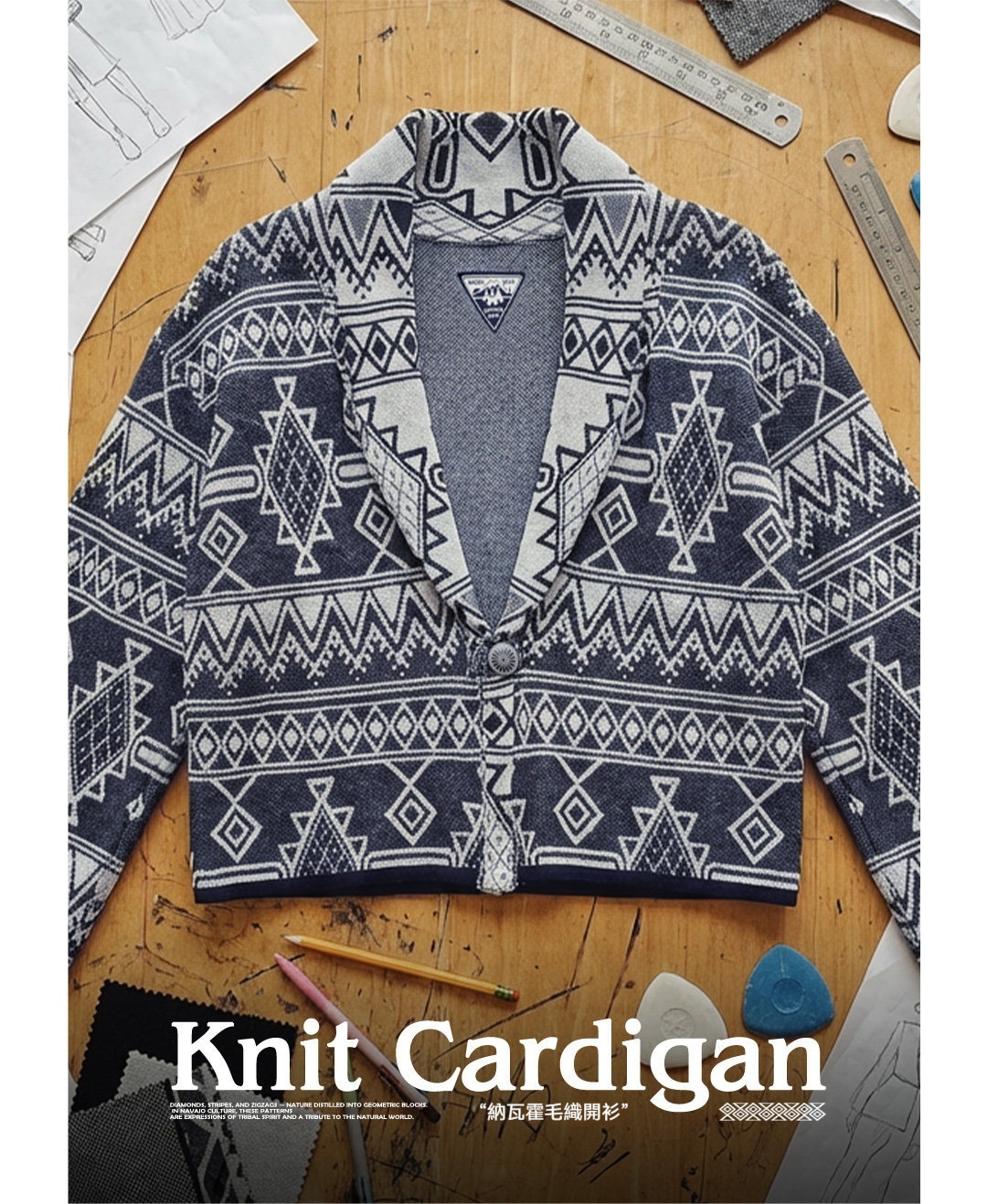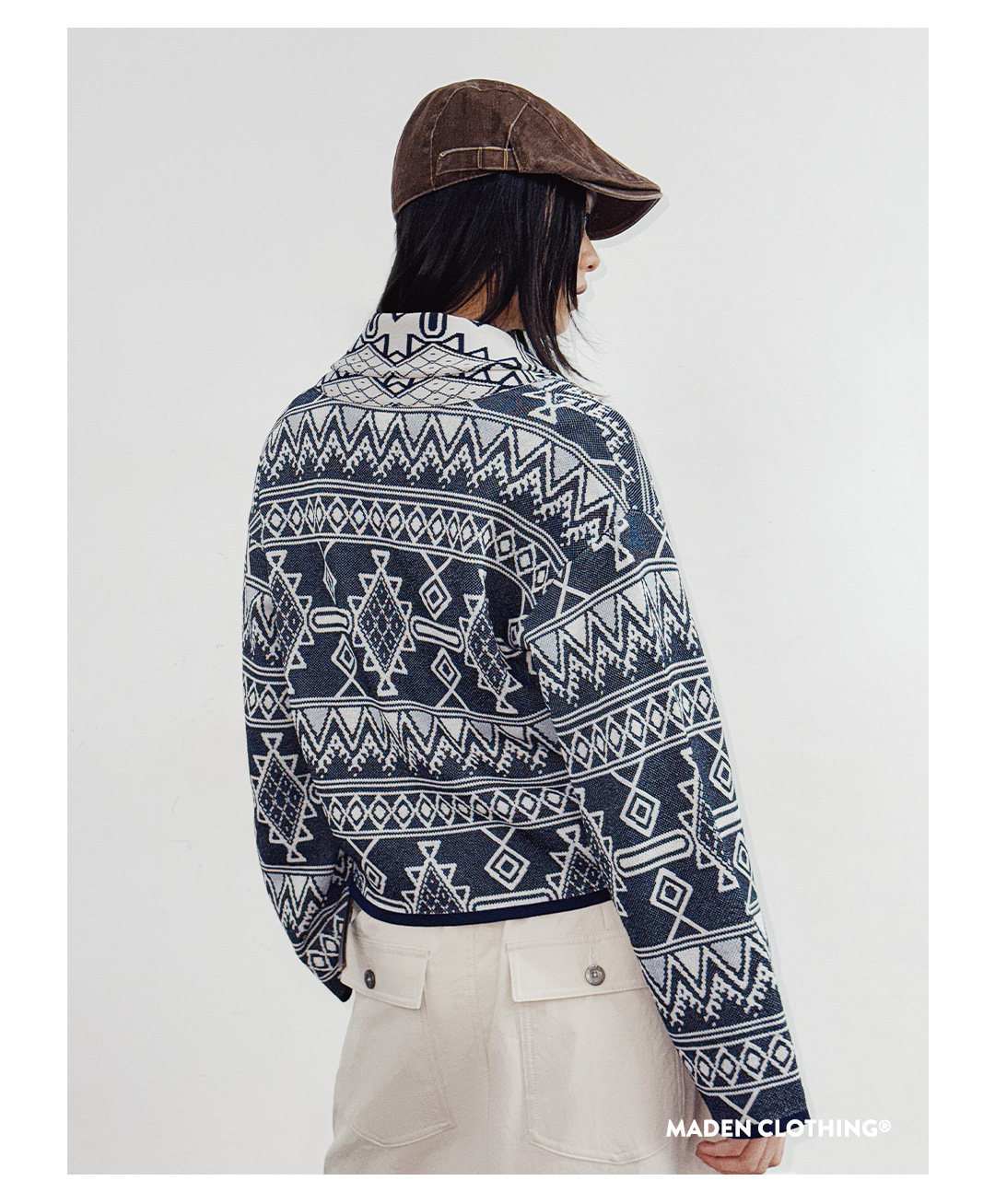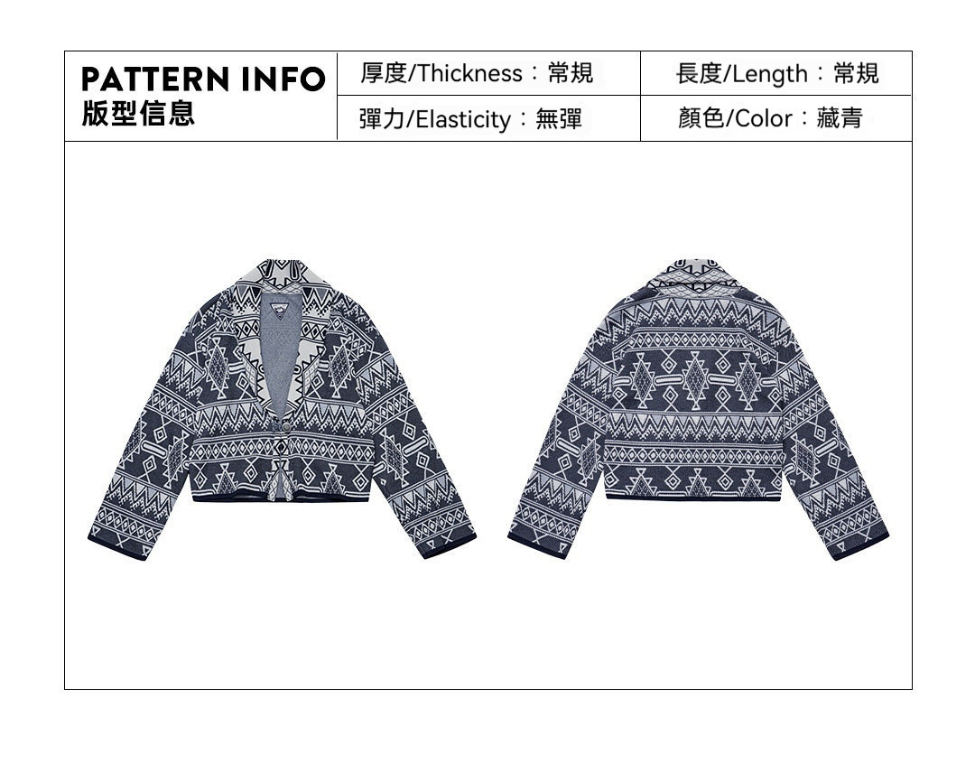 馬登女裝 復古納瓦霍西裝翻V領老錢風提花針織毛衣開衫薄短款外套春秋