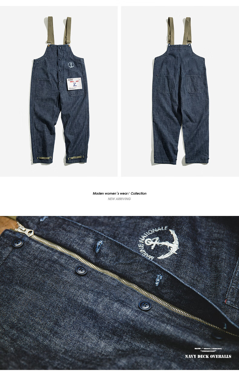 馬登女裝 美式復古重磅連體工裝褲休閒直筒闊腿長褲寬鬆牛仔背帶褲