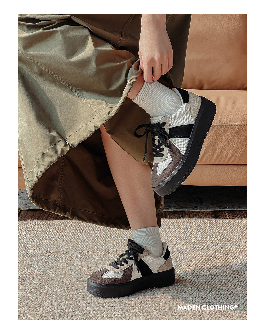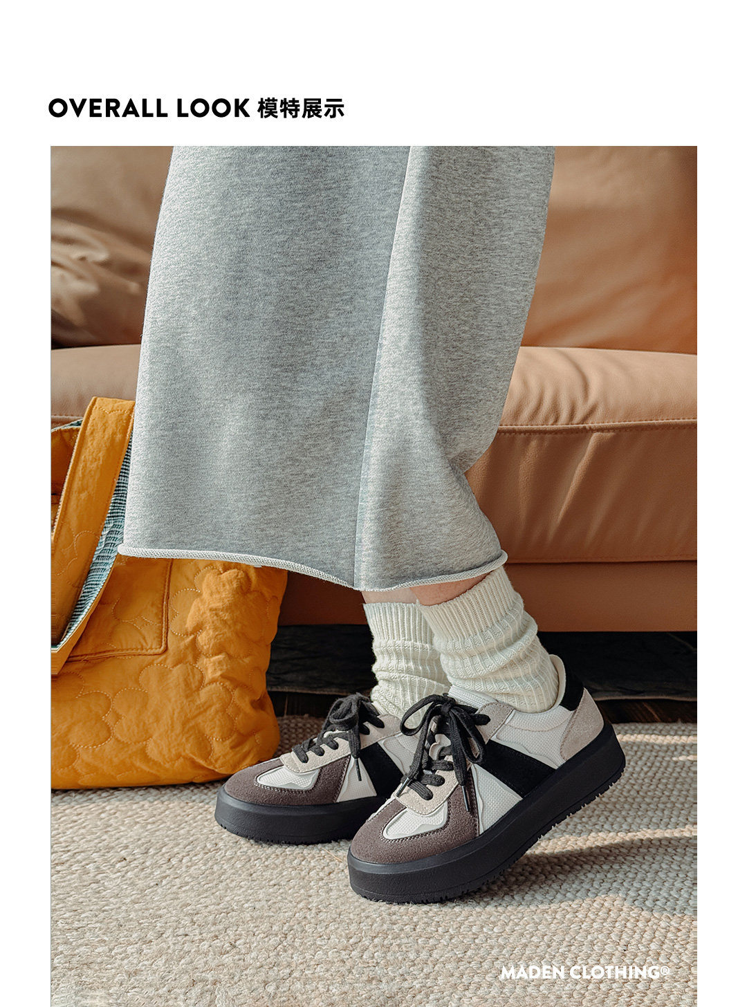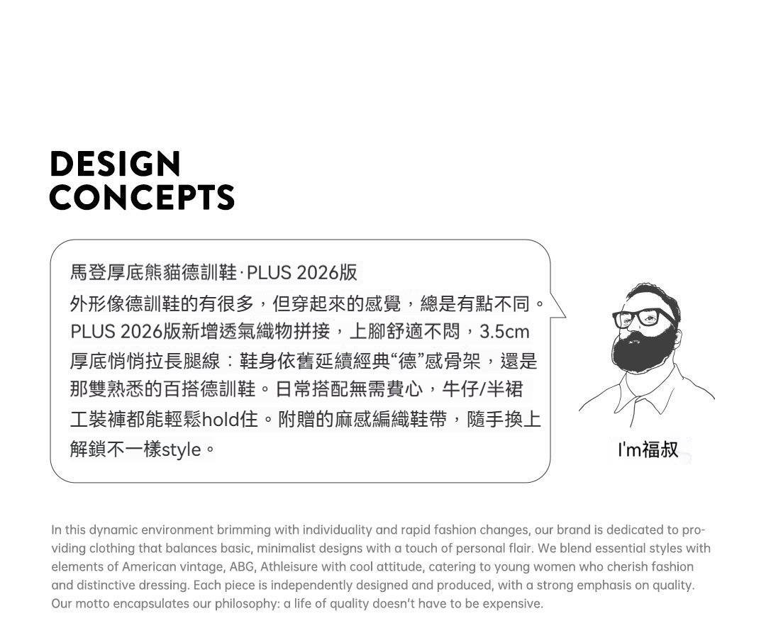 馬登女裝 黑色復古經典厚底增高貓熊德訓鞋休閒運動板鞋