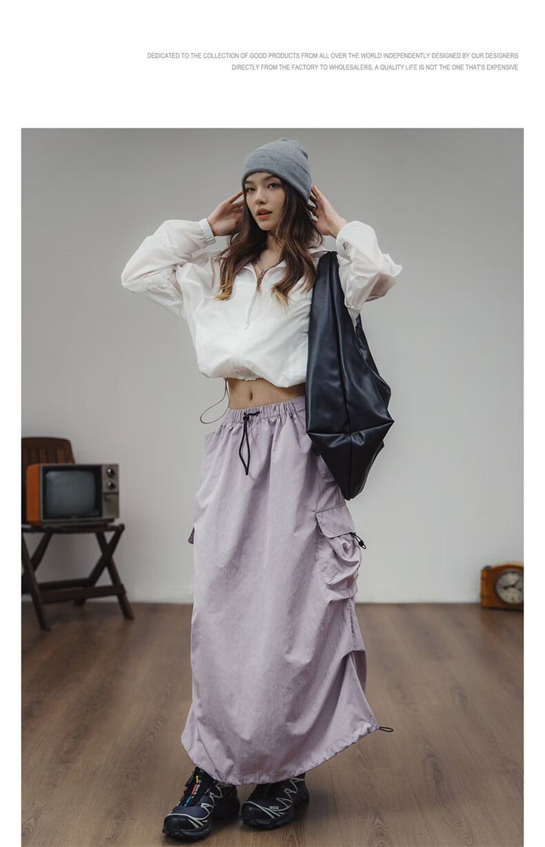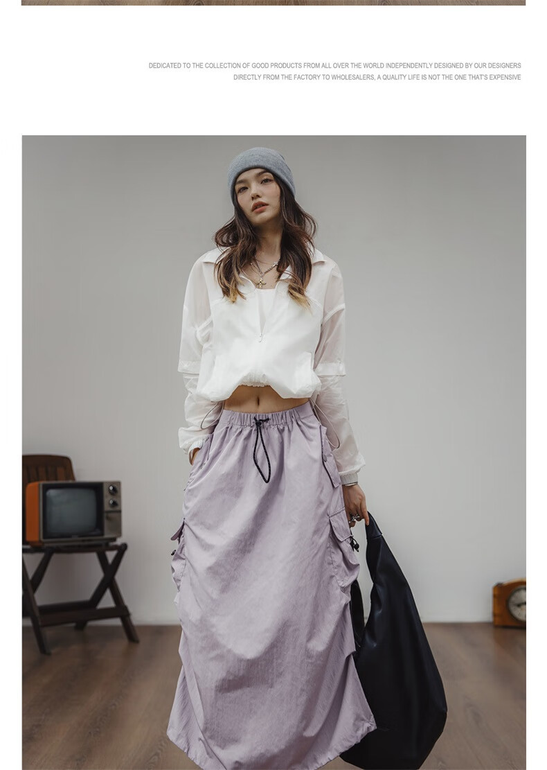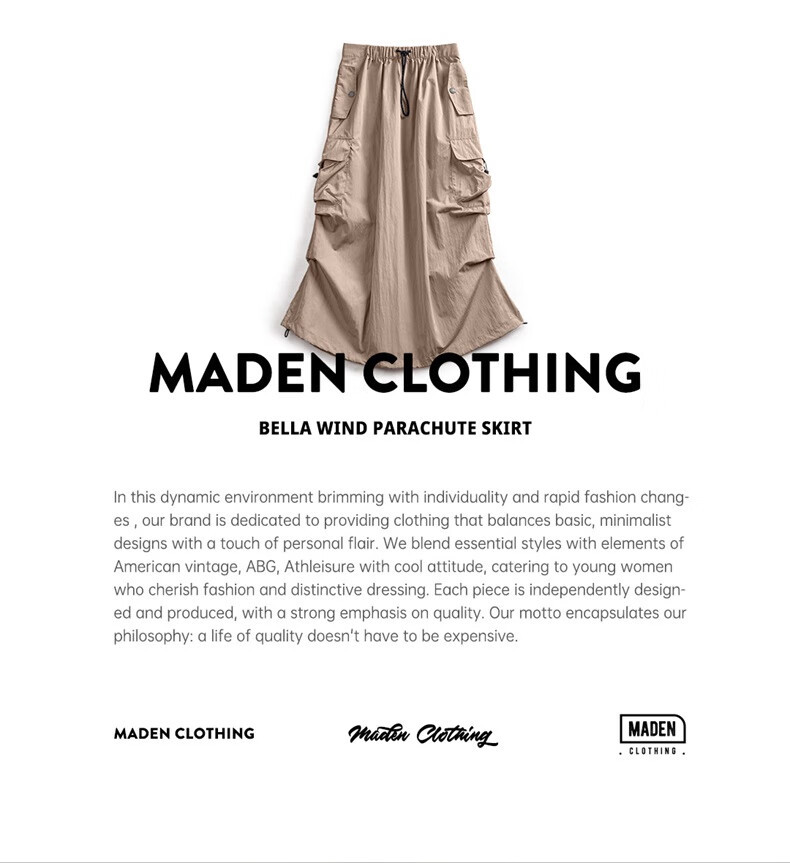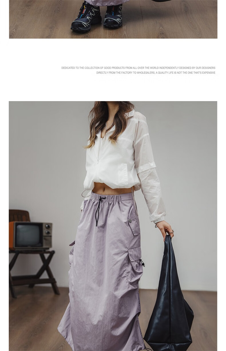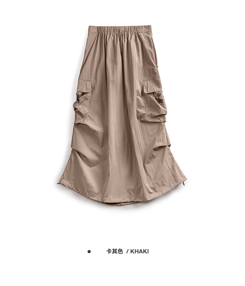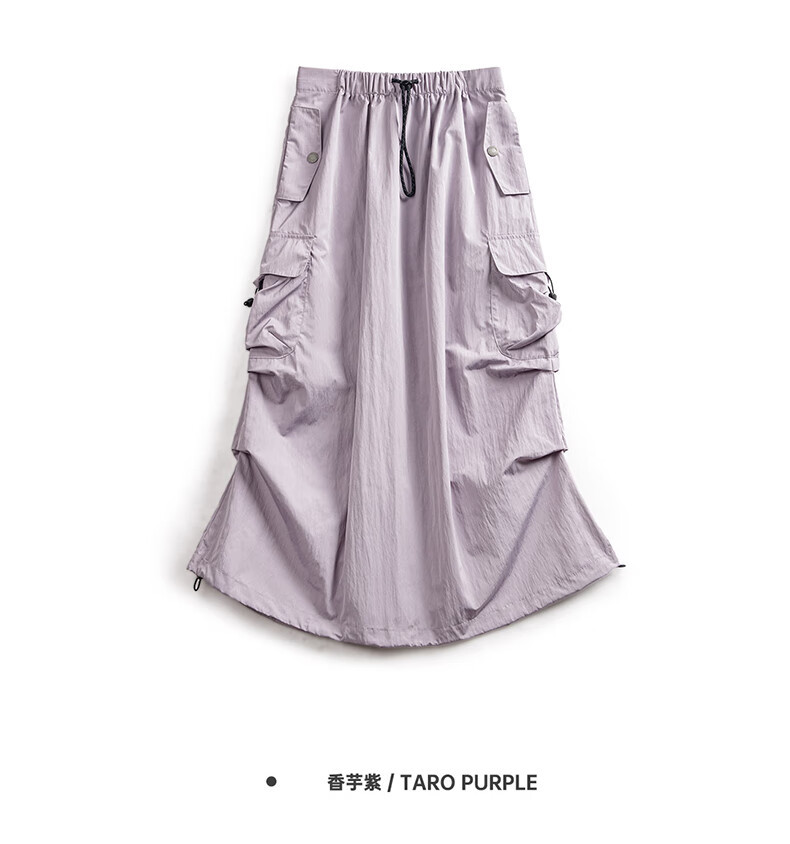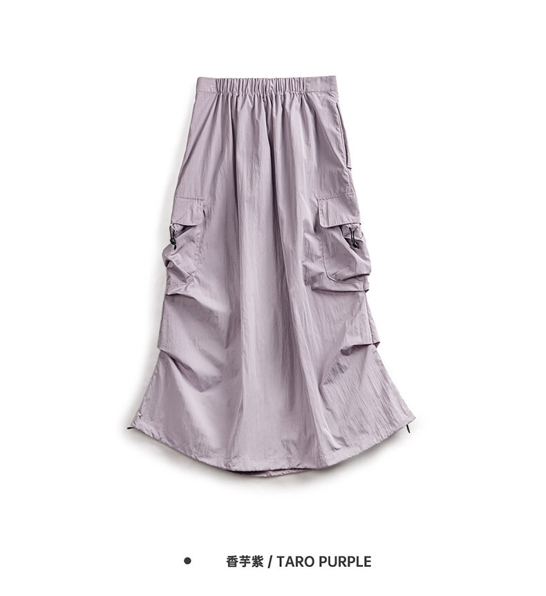 馬登女裝 復古工裝A字裙多口袋綁帶抽褶裙子顯瘦中腰半身長裙