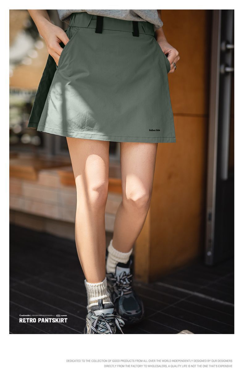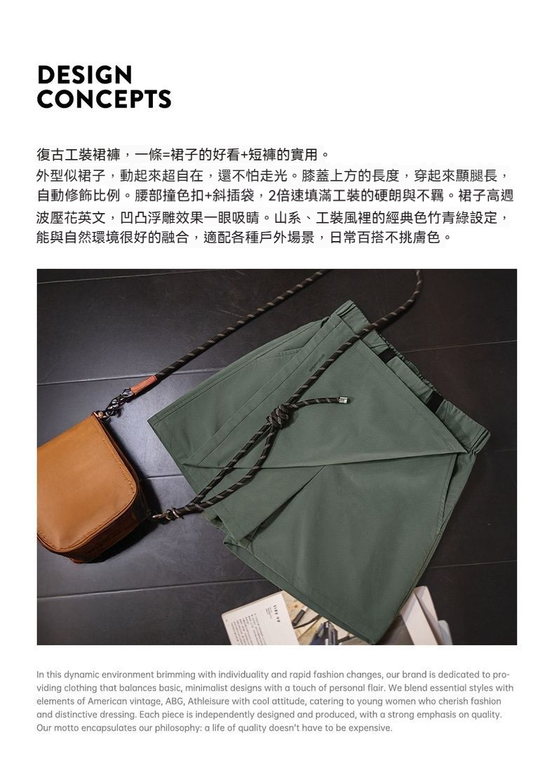 馬登女裝 夏日美式工裝假兩件短裙褲山系徒步不走光百搭鬆緊腰褲子女