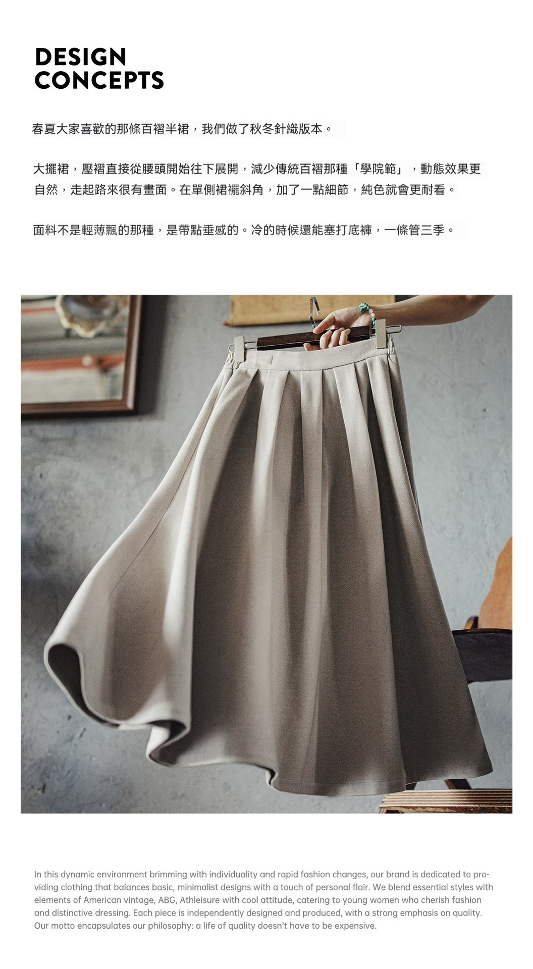 元素: 鬆緊腰, 百褶設計