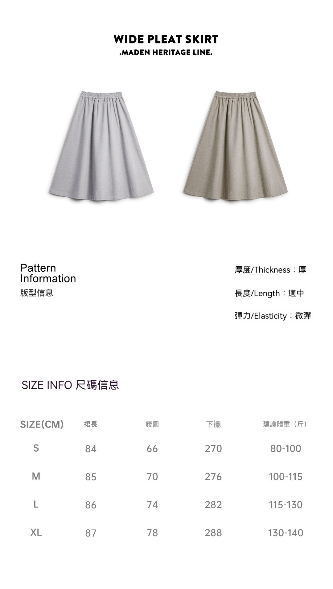 裙長: 半身長裙